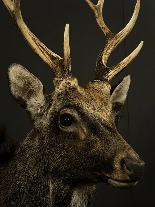 Ausgestopfter Kopf eines Sikahirsch