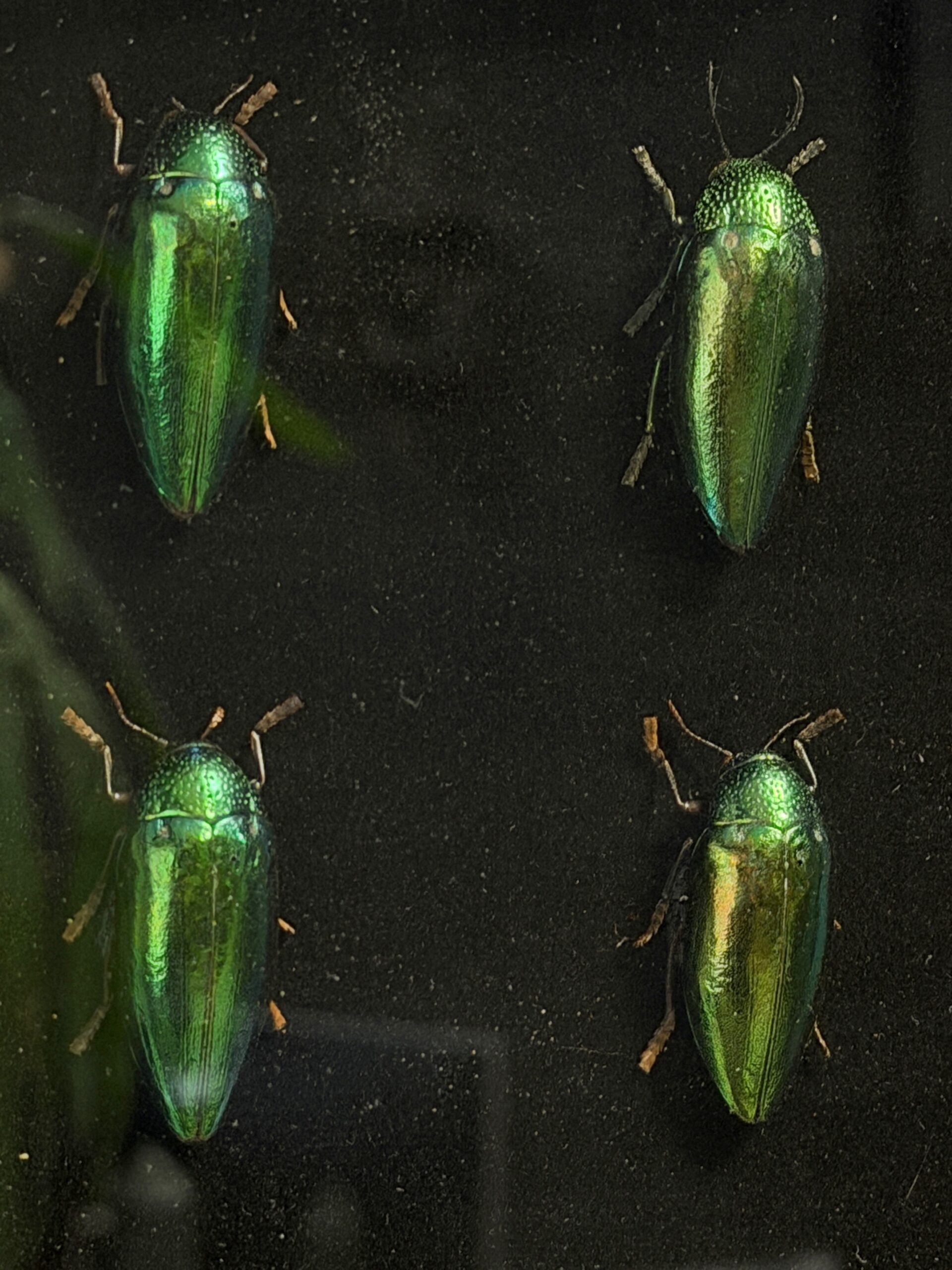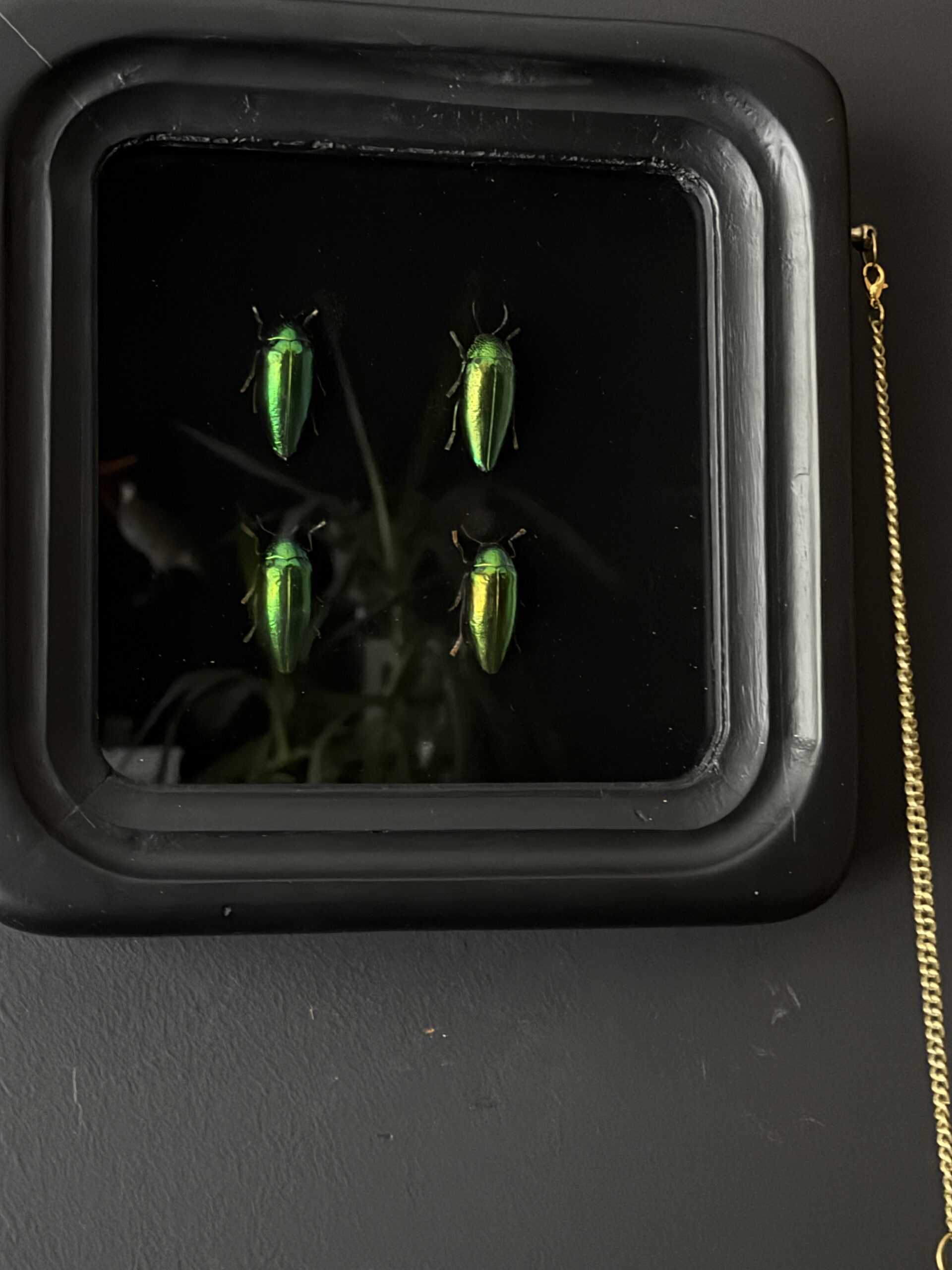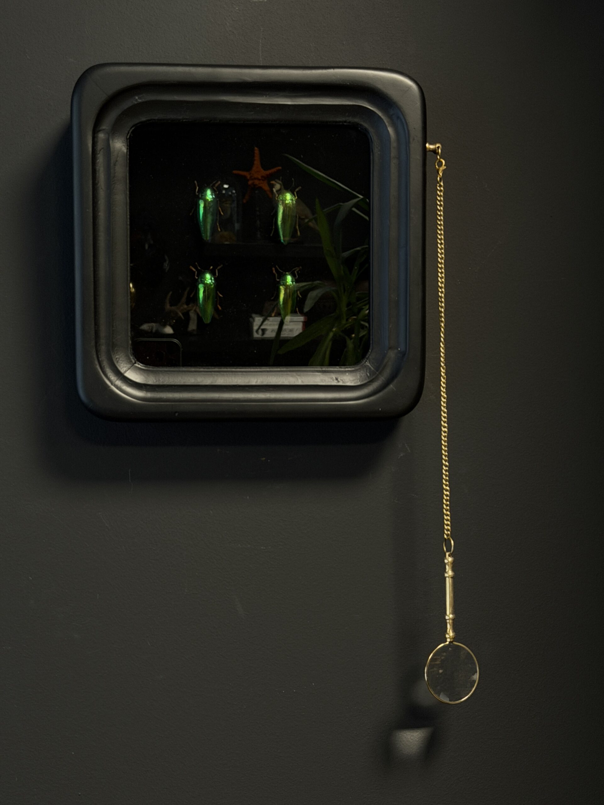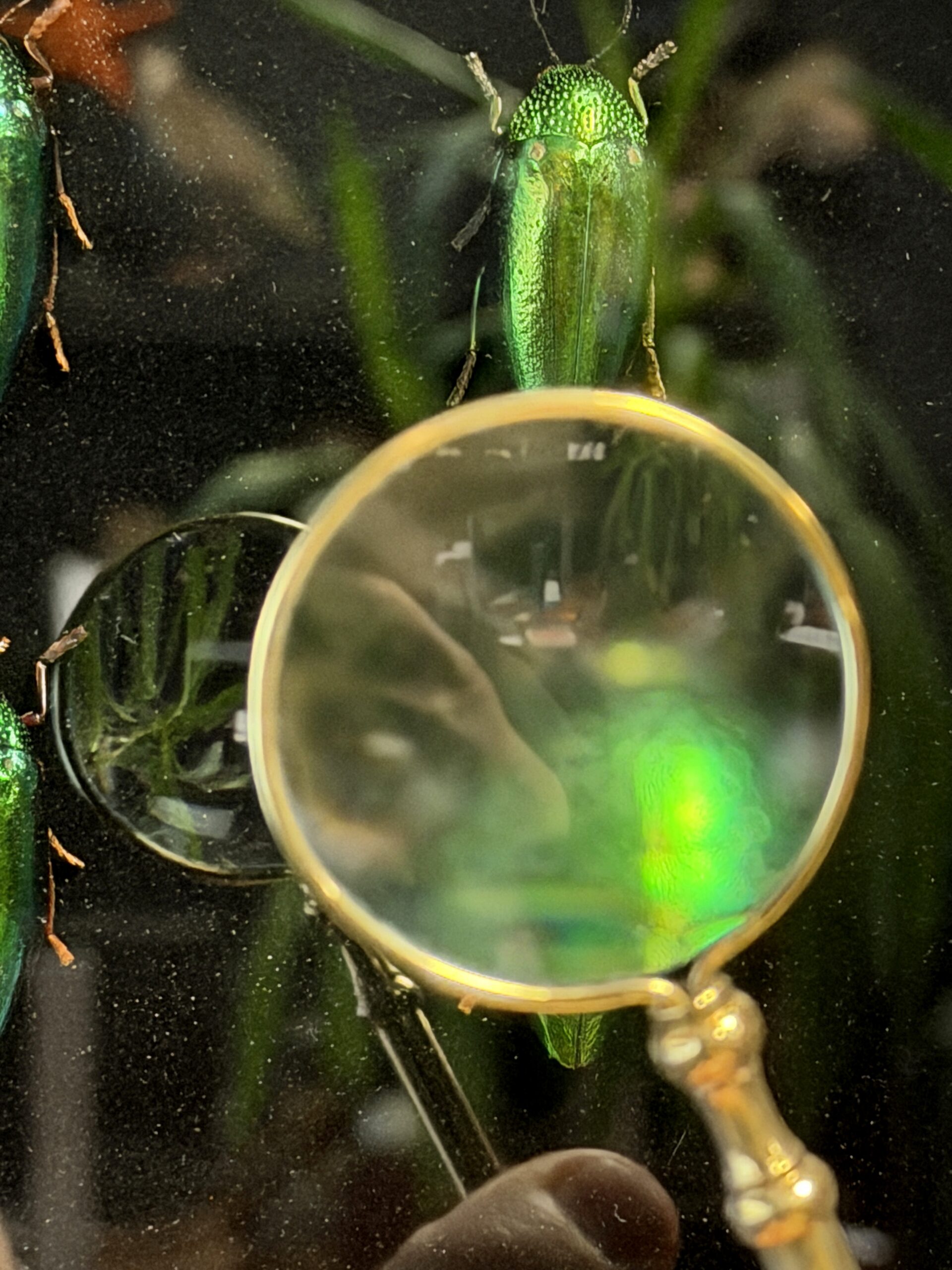 4 Buprestes im Beobachtungsrahmen mit Lupe