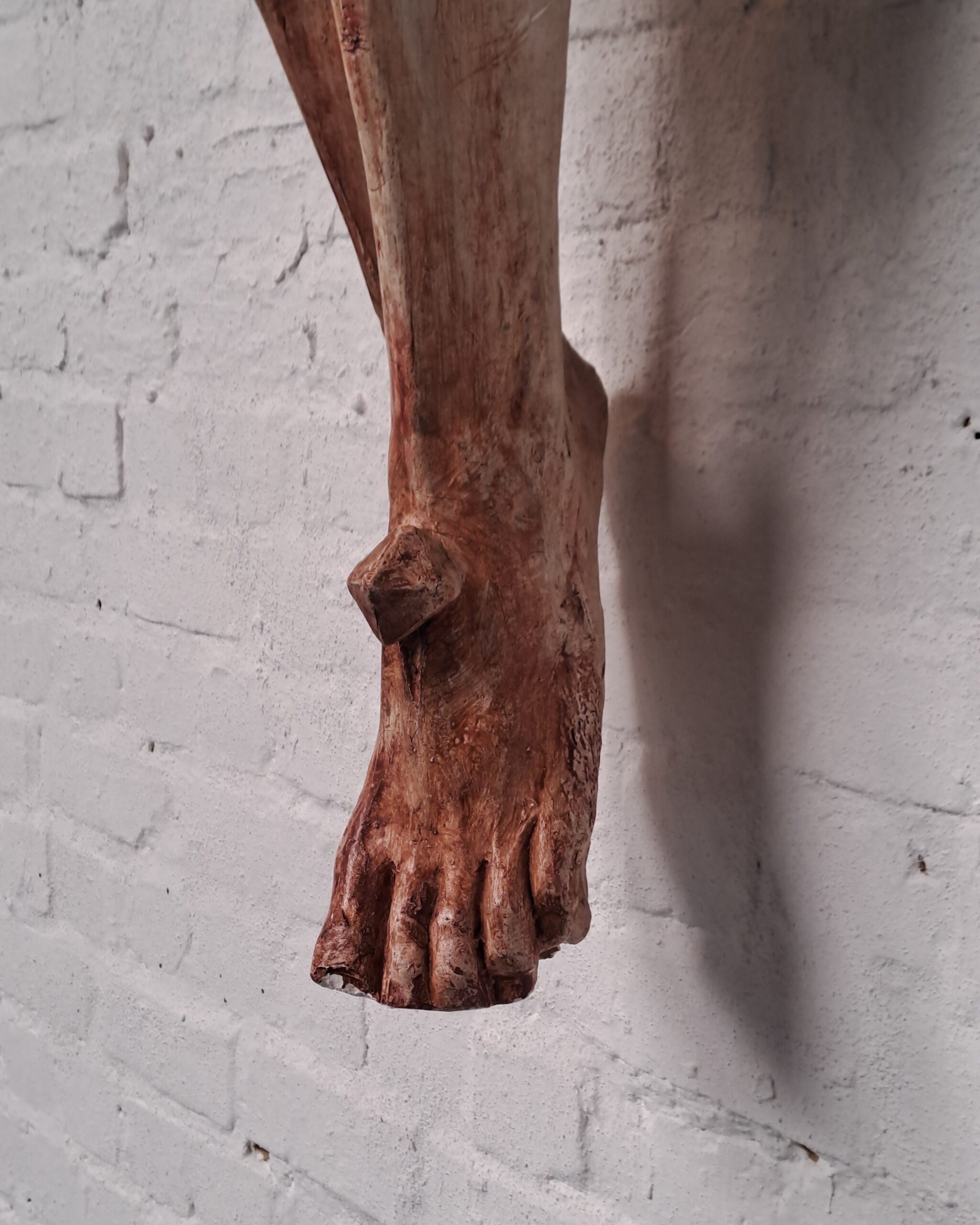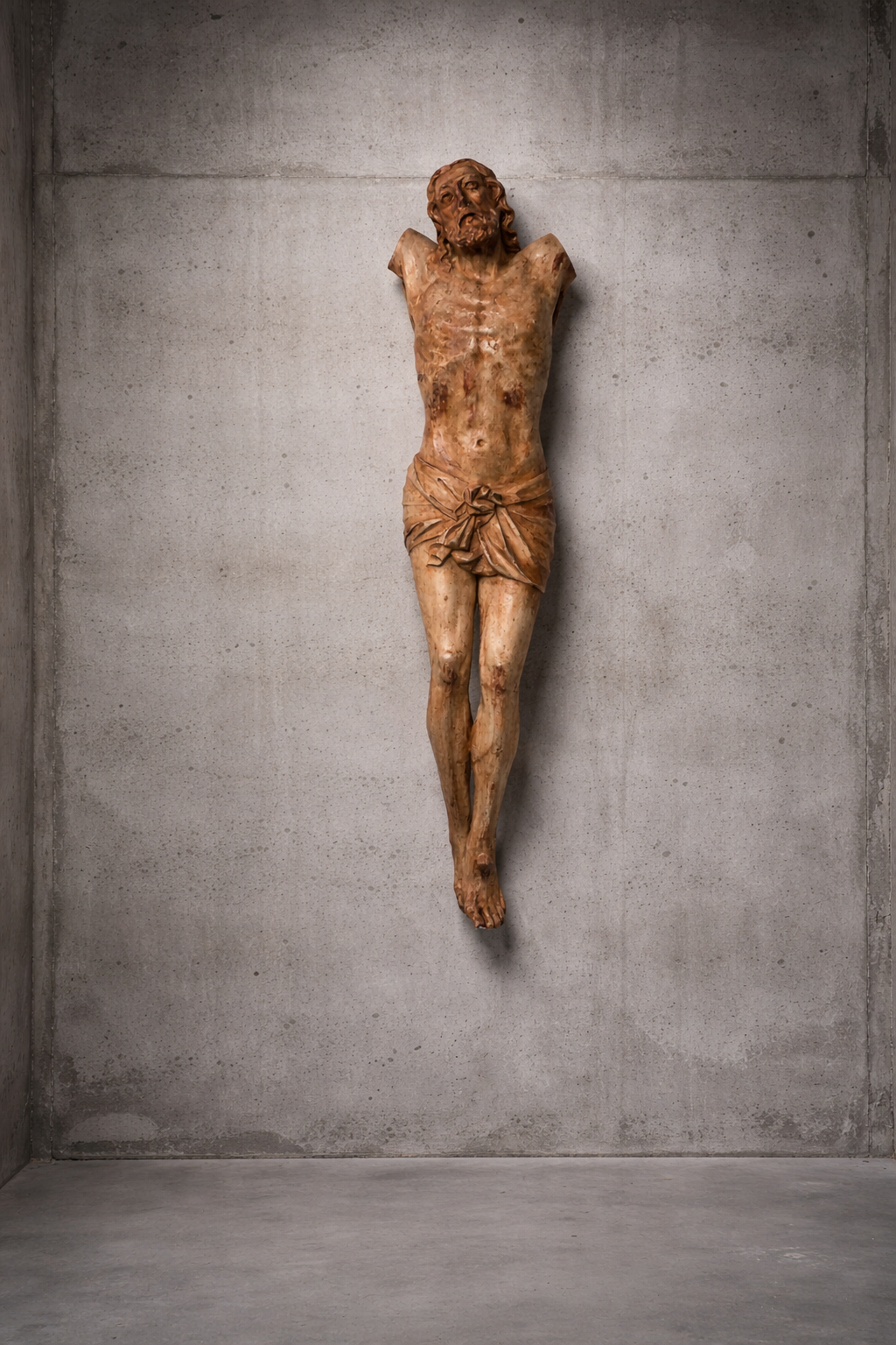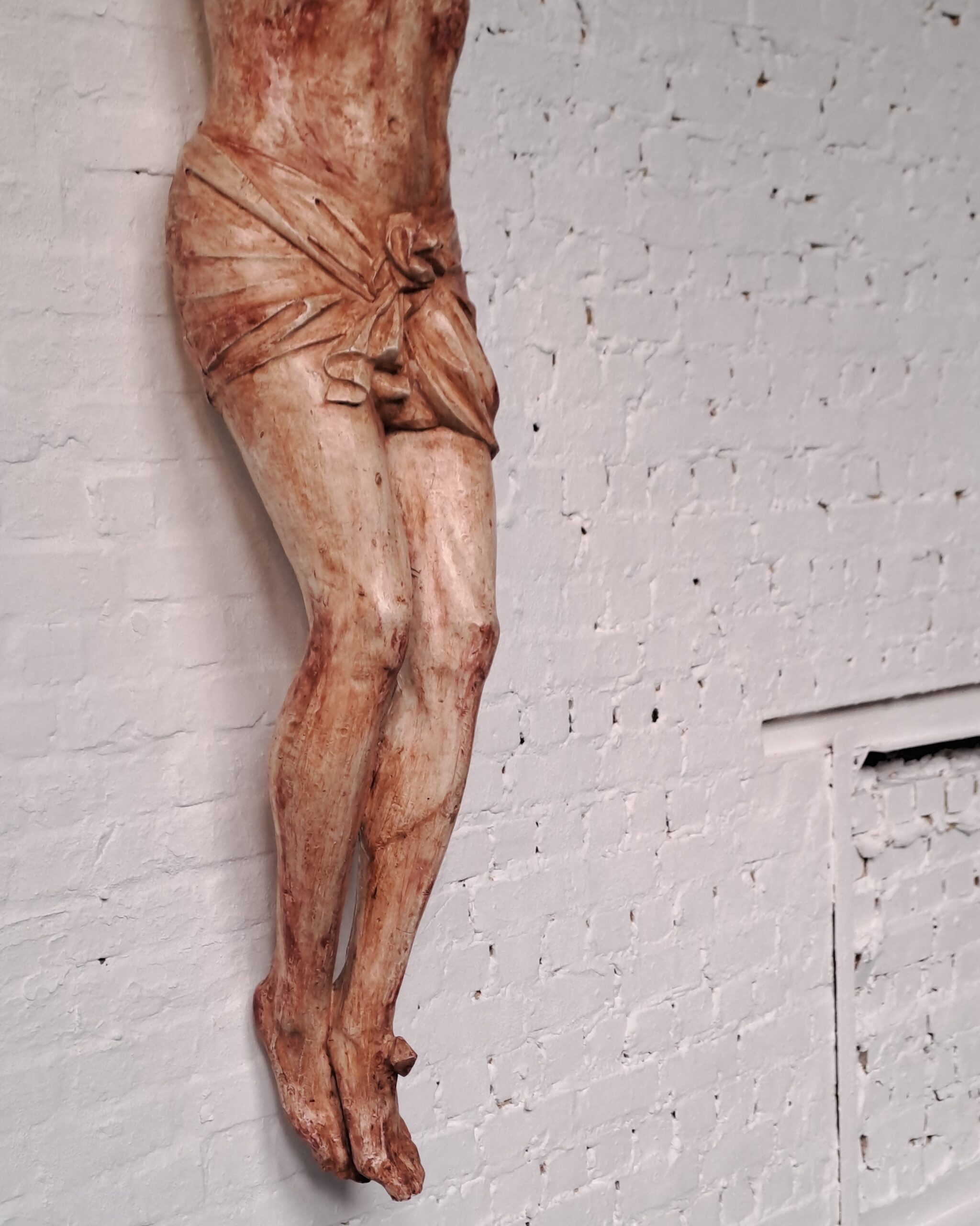 Außergewöhnlich großer Corpus Christi aus Gips und Jute, was auf eine traditionelle und frühere Herstellungstechnik hindeutet.
