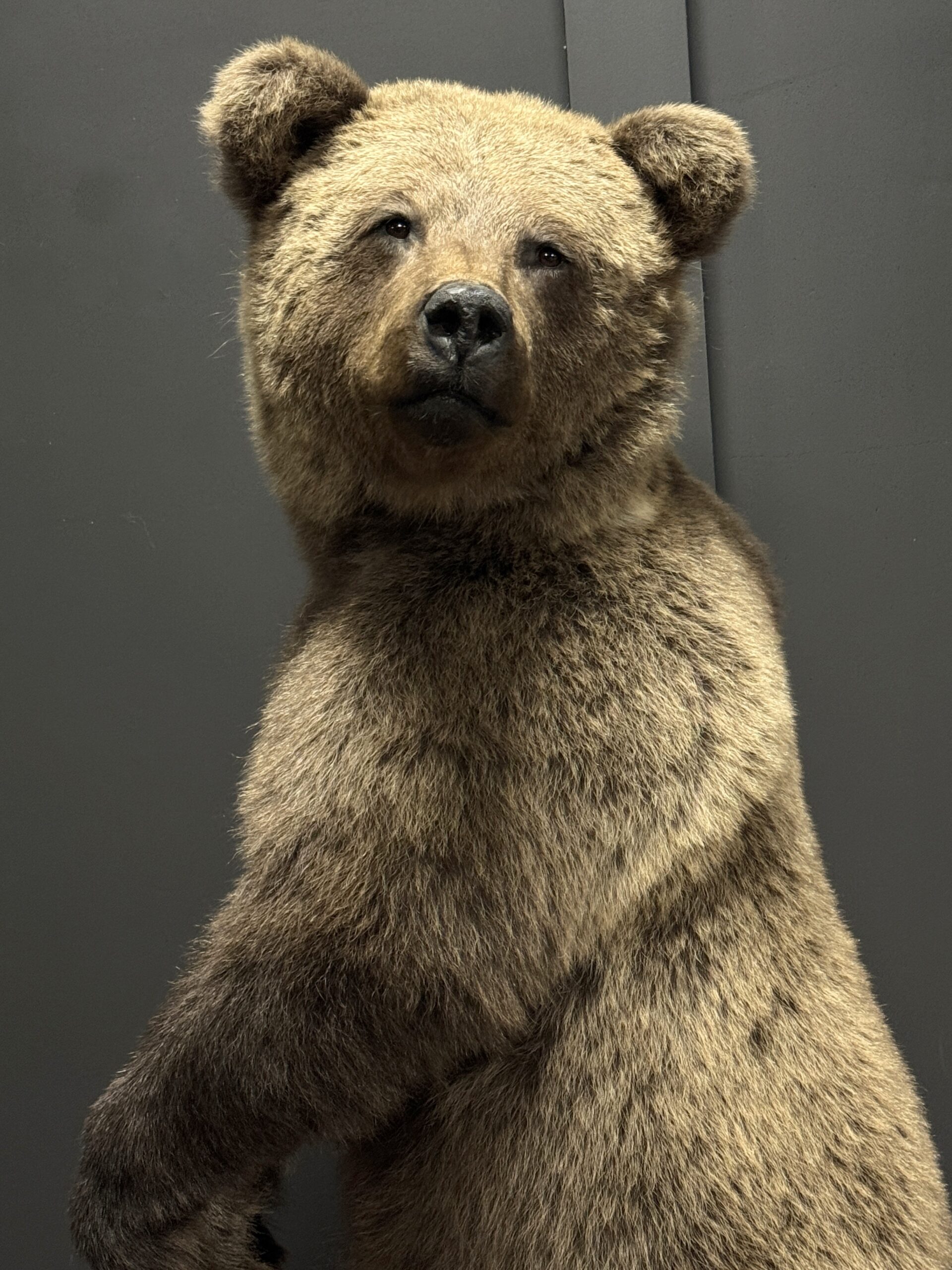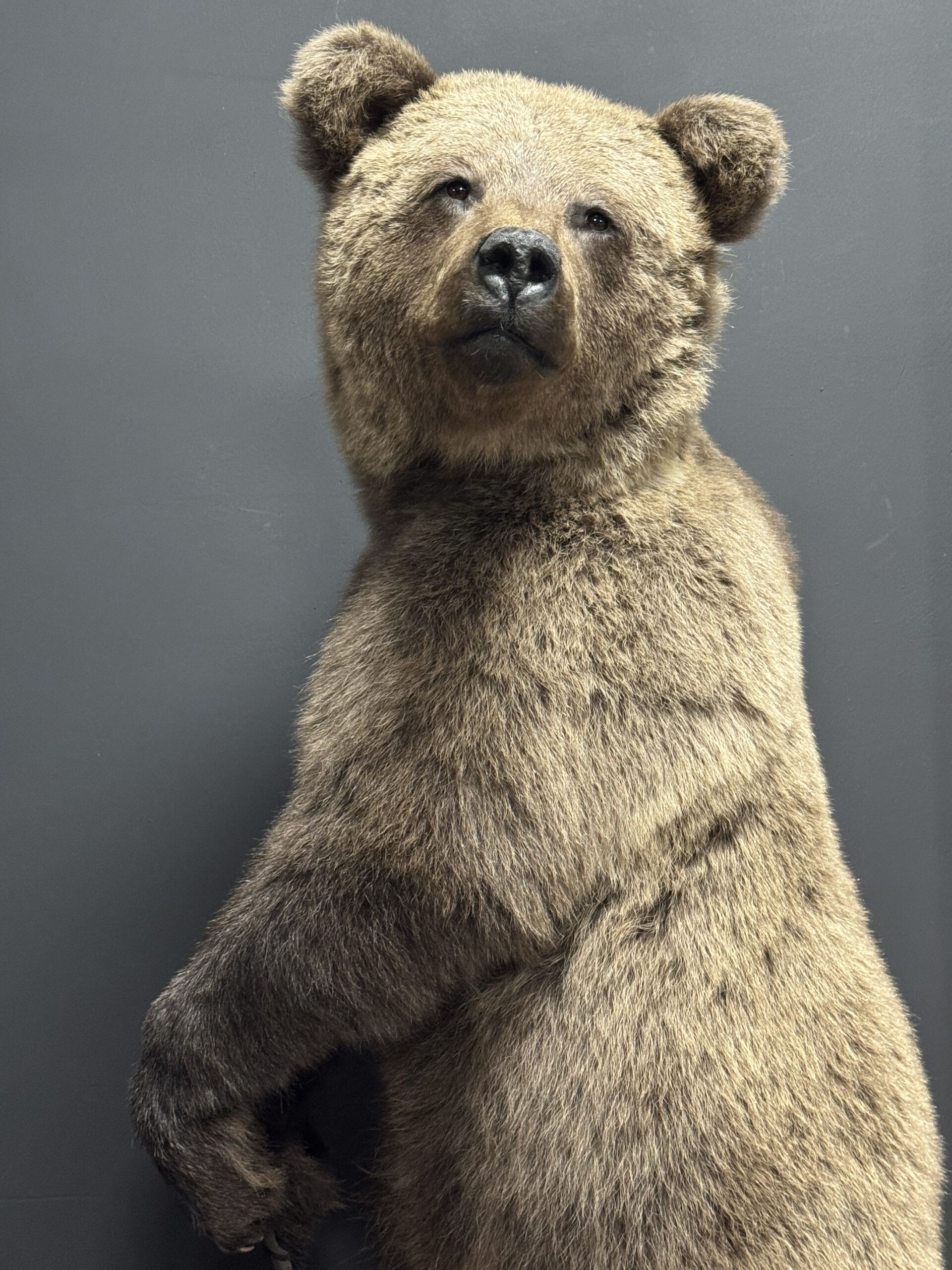 Der Bär hat ein beeindruckendes, natürliches Aussehen und ist in einer eleganten, anmutigen Pose präpariert. Mit Liebe zum Detail gefertigt, wodurch er äußerst realistisch und lebensecht wirkt.