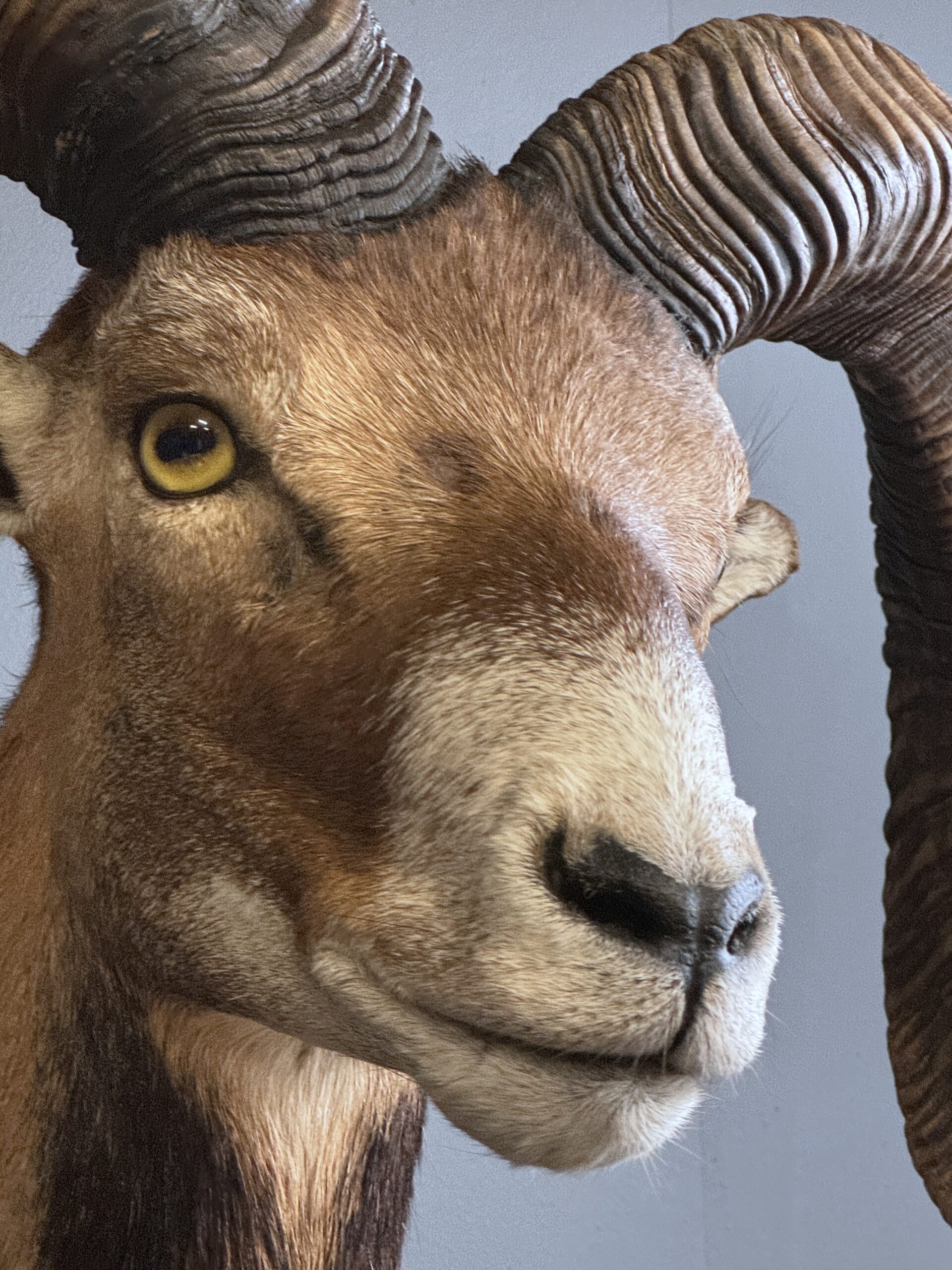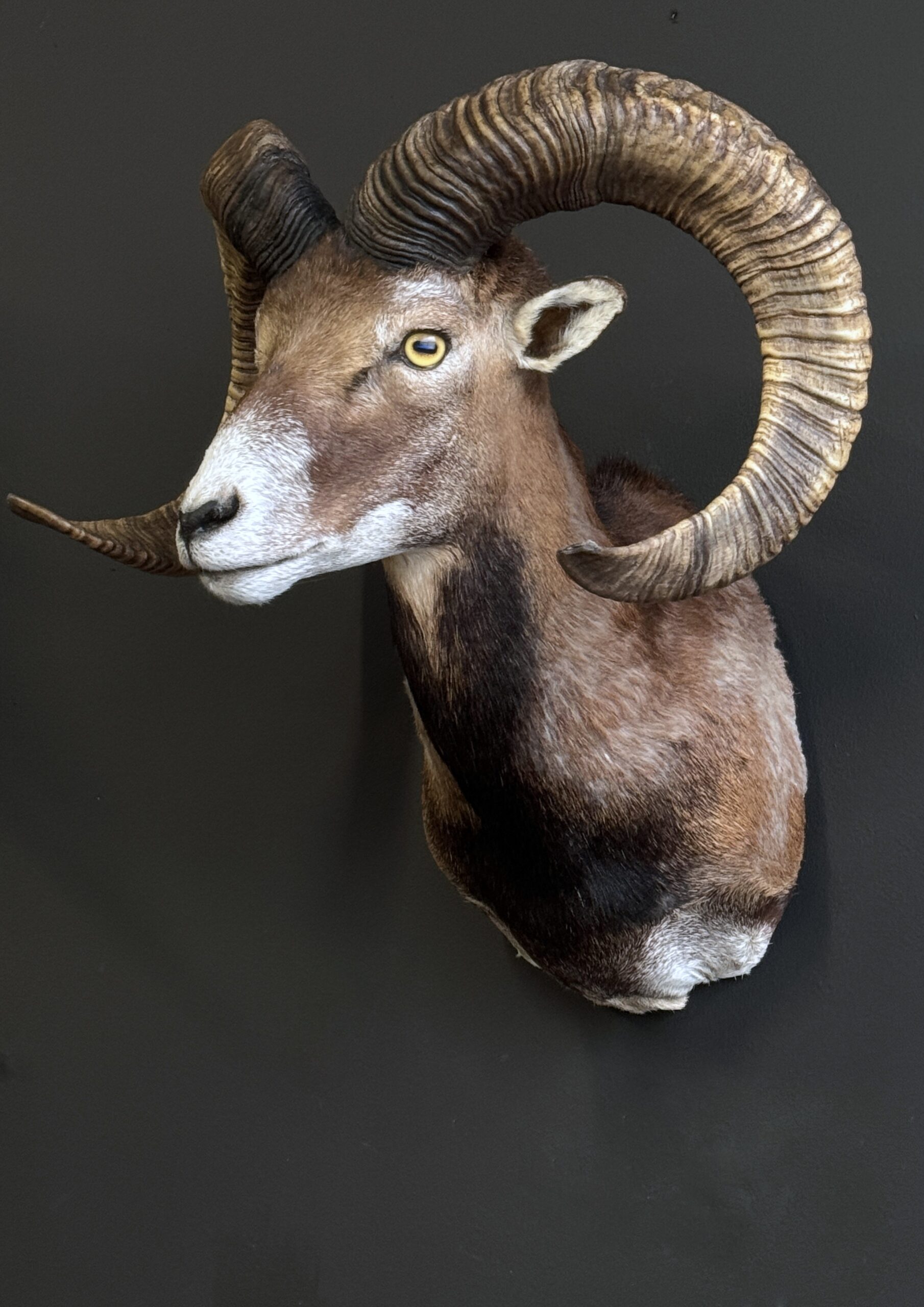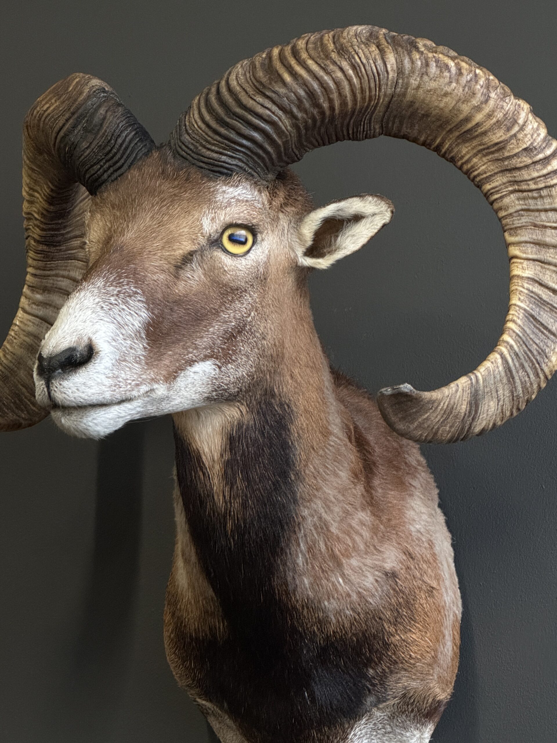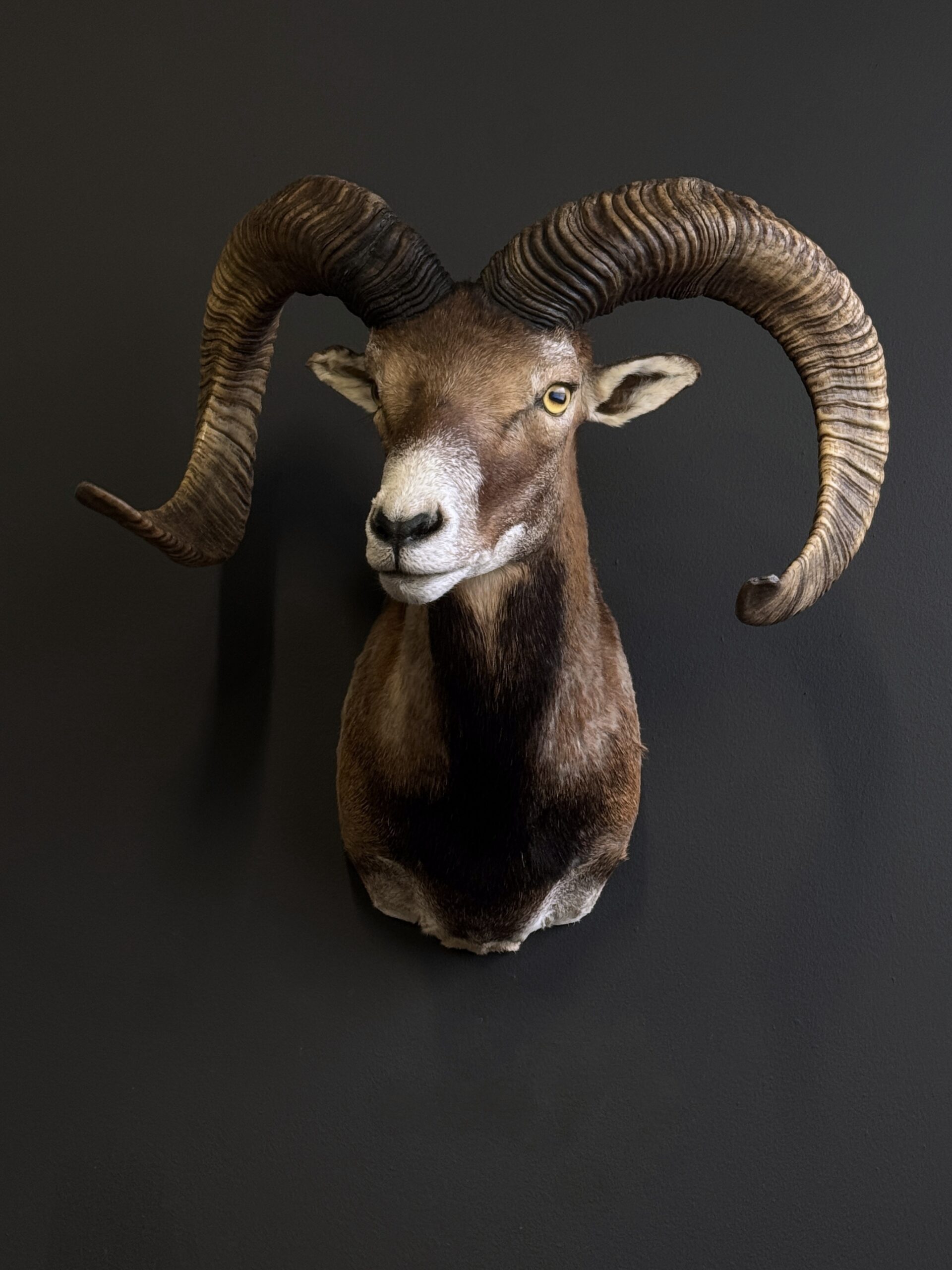 Dieser schöne ausgestopfte Kopf eines sehr großen Mufflons ist ein schöner Dekorationsgegenstand. Das Mufflon ist eine Art von Wildschaf, das für seine großen, lockigen Hörner bekannt ist. Dieses ausgestopfte Mufflon wurde sorgfältig und mit viel Liebe zum Detail hergestellt, damit es realistisch aussieht.