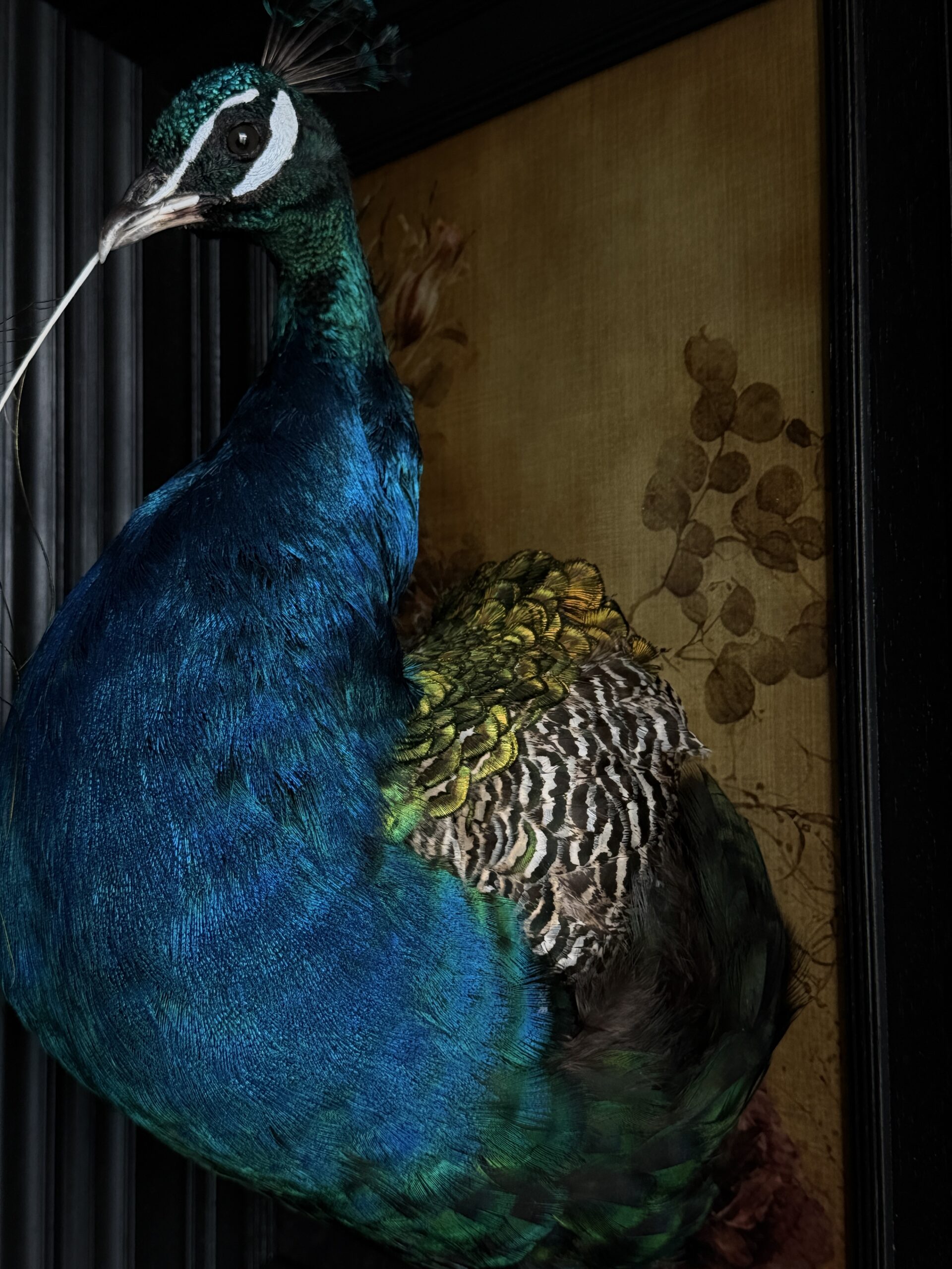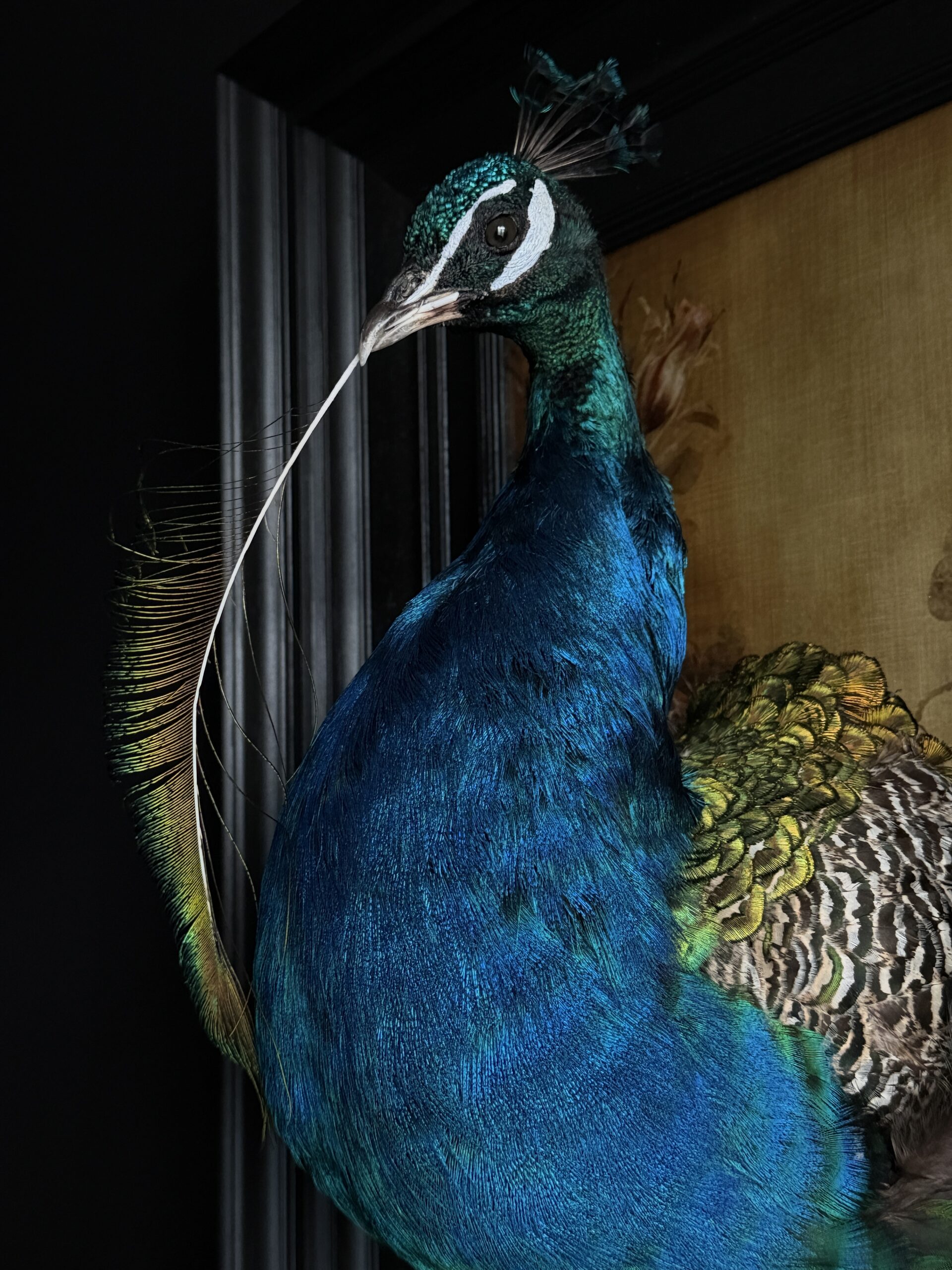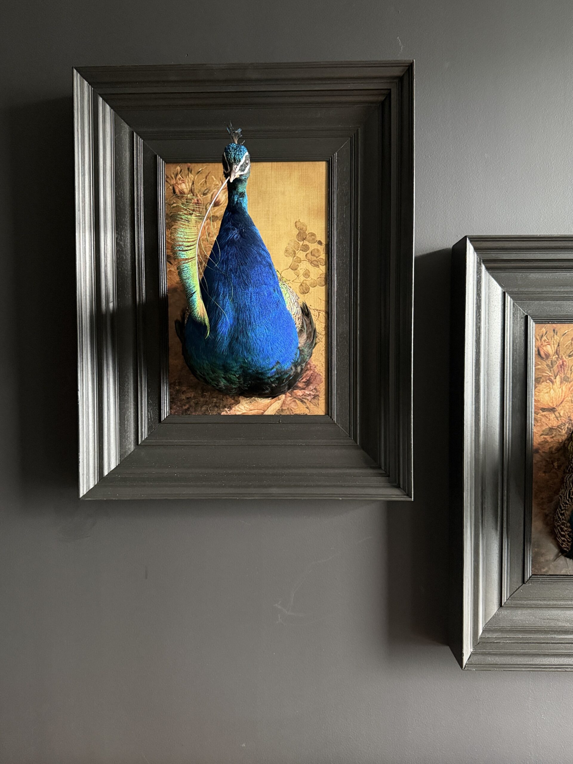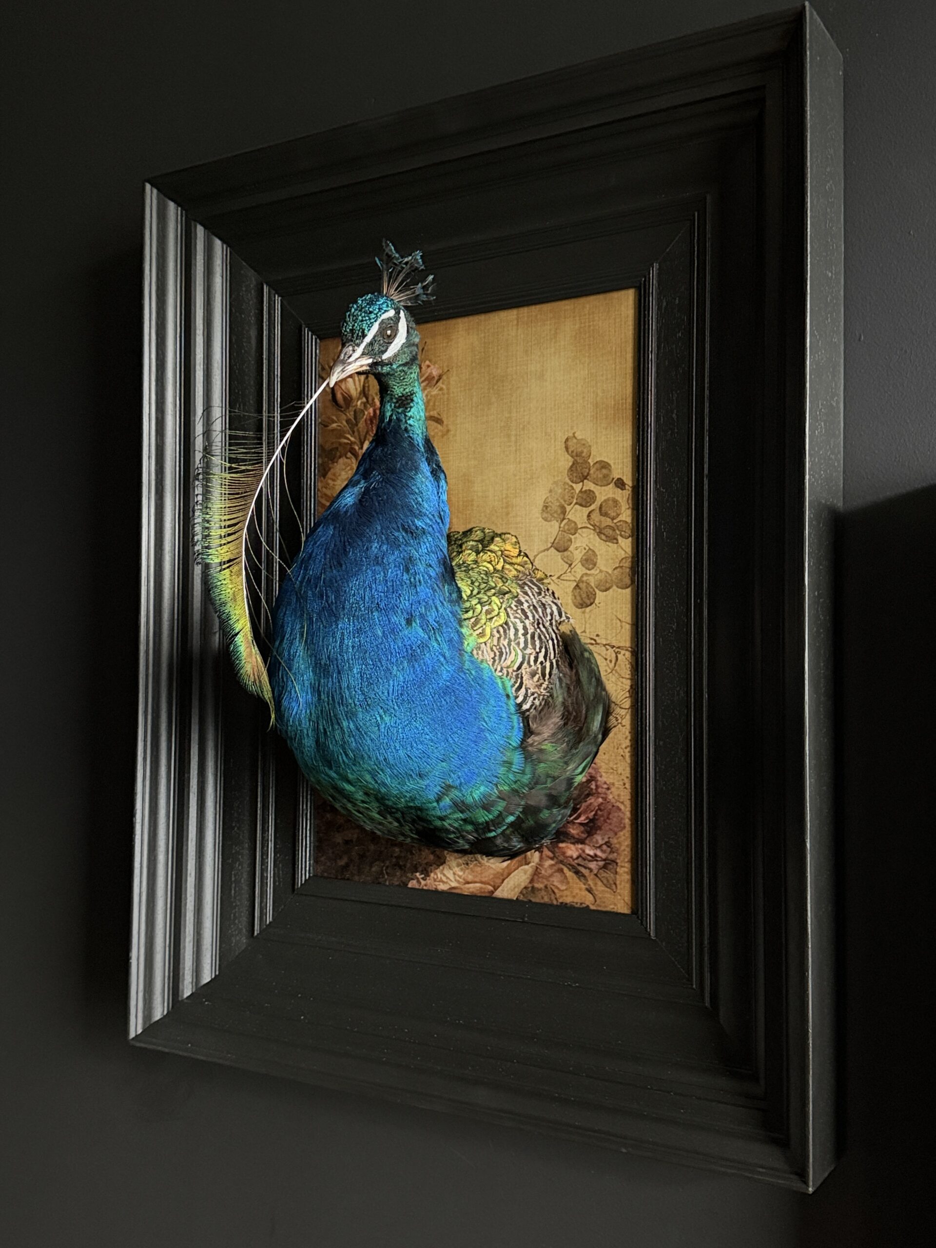 Ausgestopftes Pfauen kunstwerk
