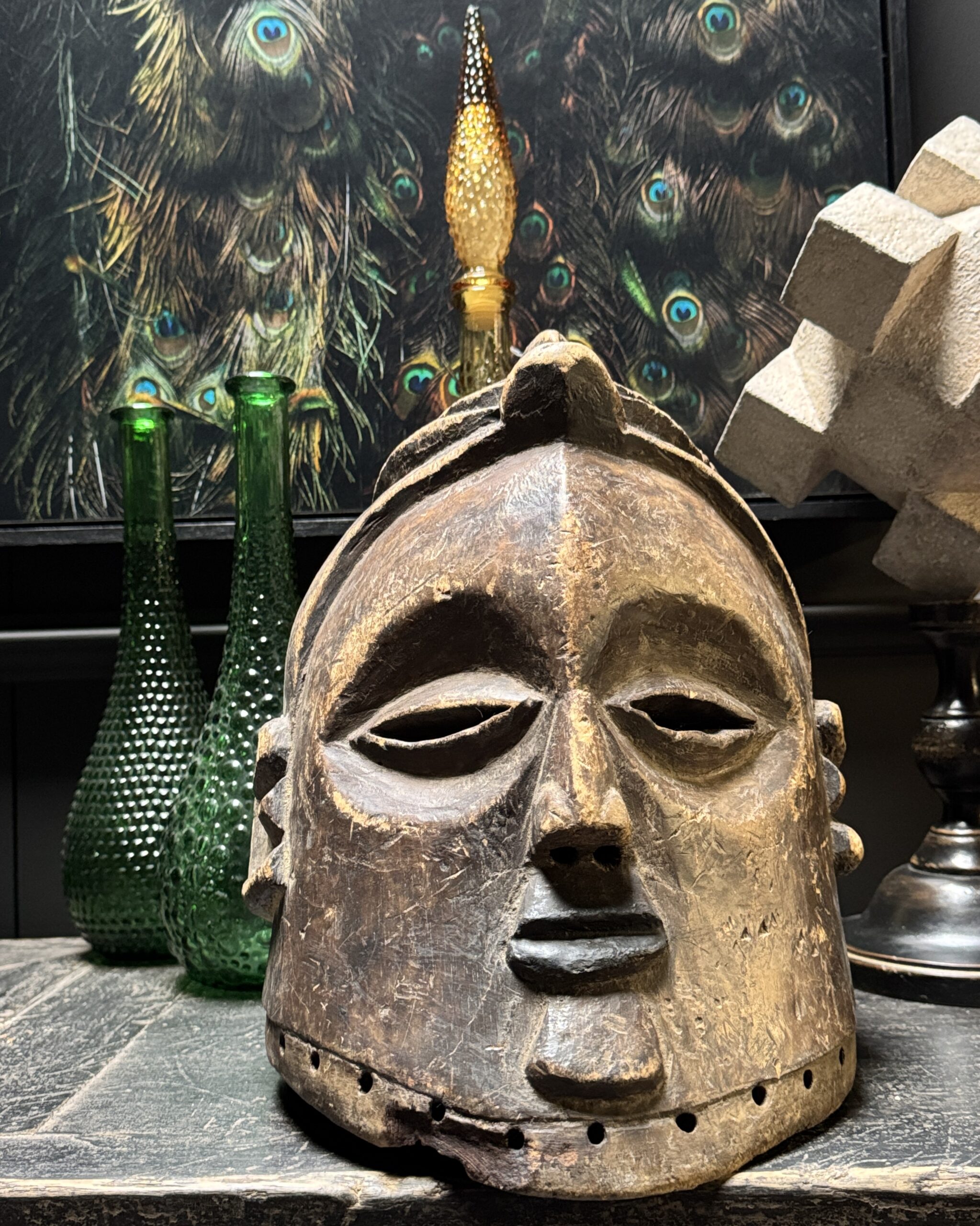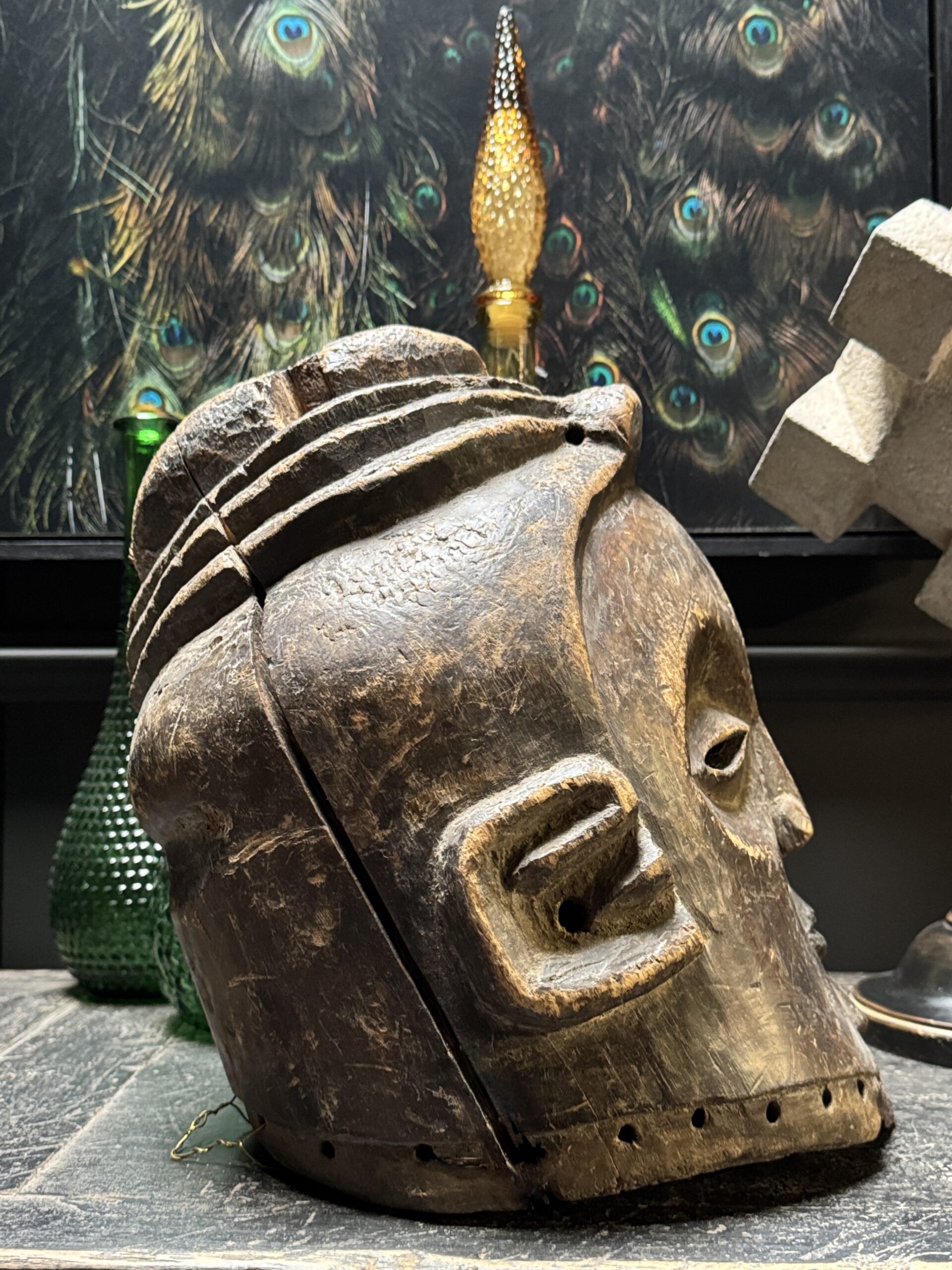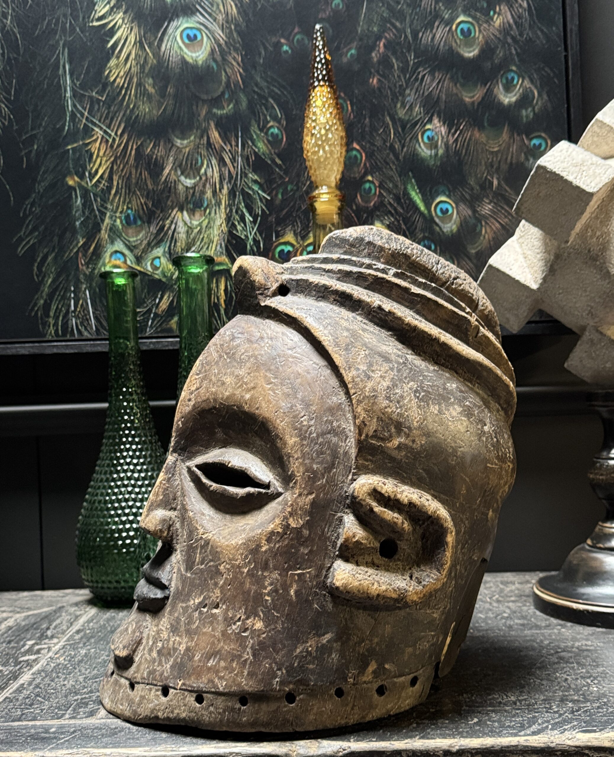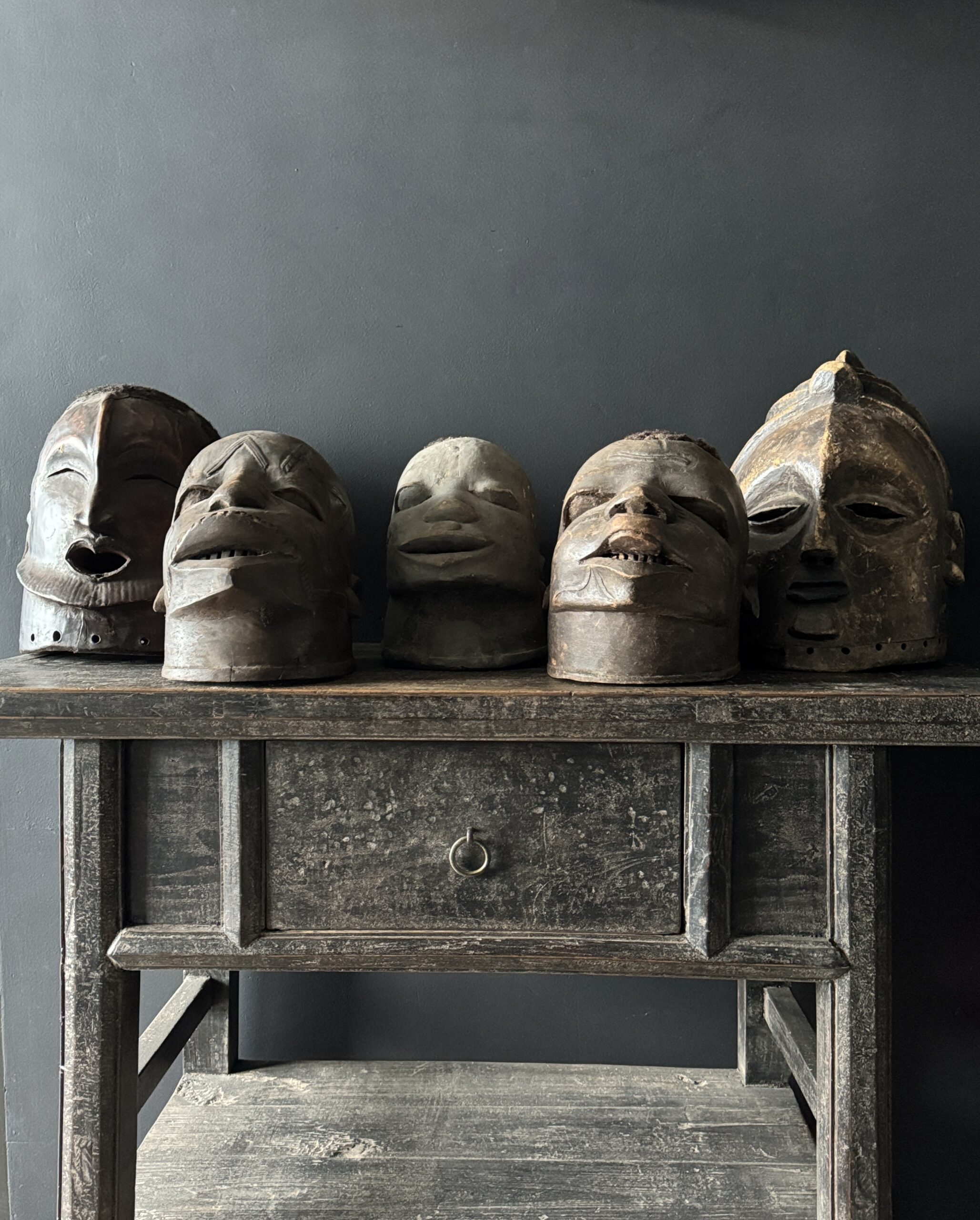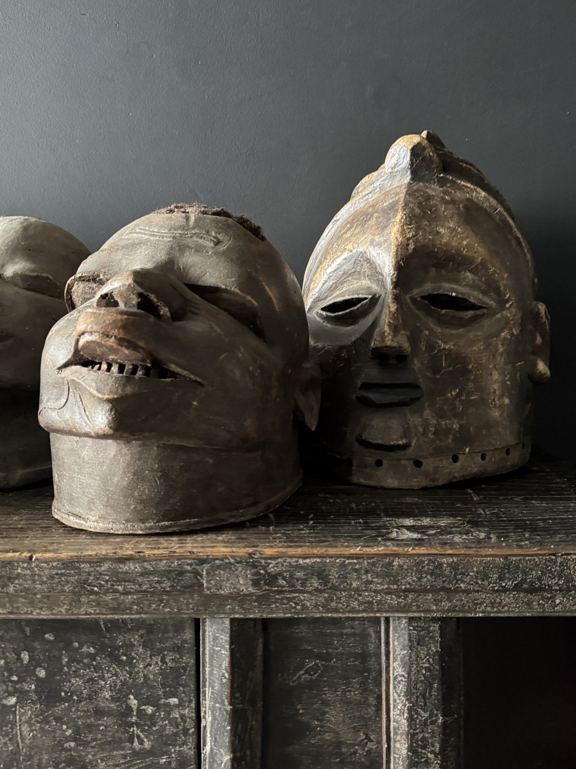 Diese antike afrikanische Maske ist nicht nur ein Kunstwerk, sondern auch ein bedeutendes Stück Geschichte und Kultur. Mit ihren handgeschnitzten Formen, der verwitterten Patina und dem ausdrucksstarken Gesichtsausdruck bringt sie Charakter und Authentizität in jedes Interieur. Dank der natürlichen Materialien und der warmen Farbtöne passt eine solche Maske sowohl in moderne als auch in klassische Wohnräume. Auf einem Sideboard, Wandregal oder als Blickfang an der Wand