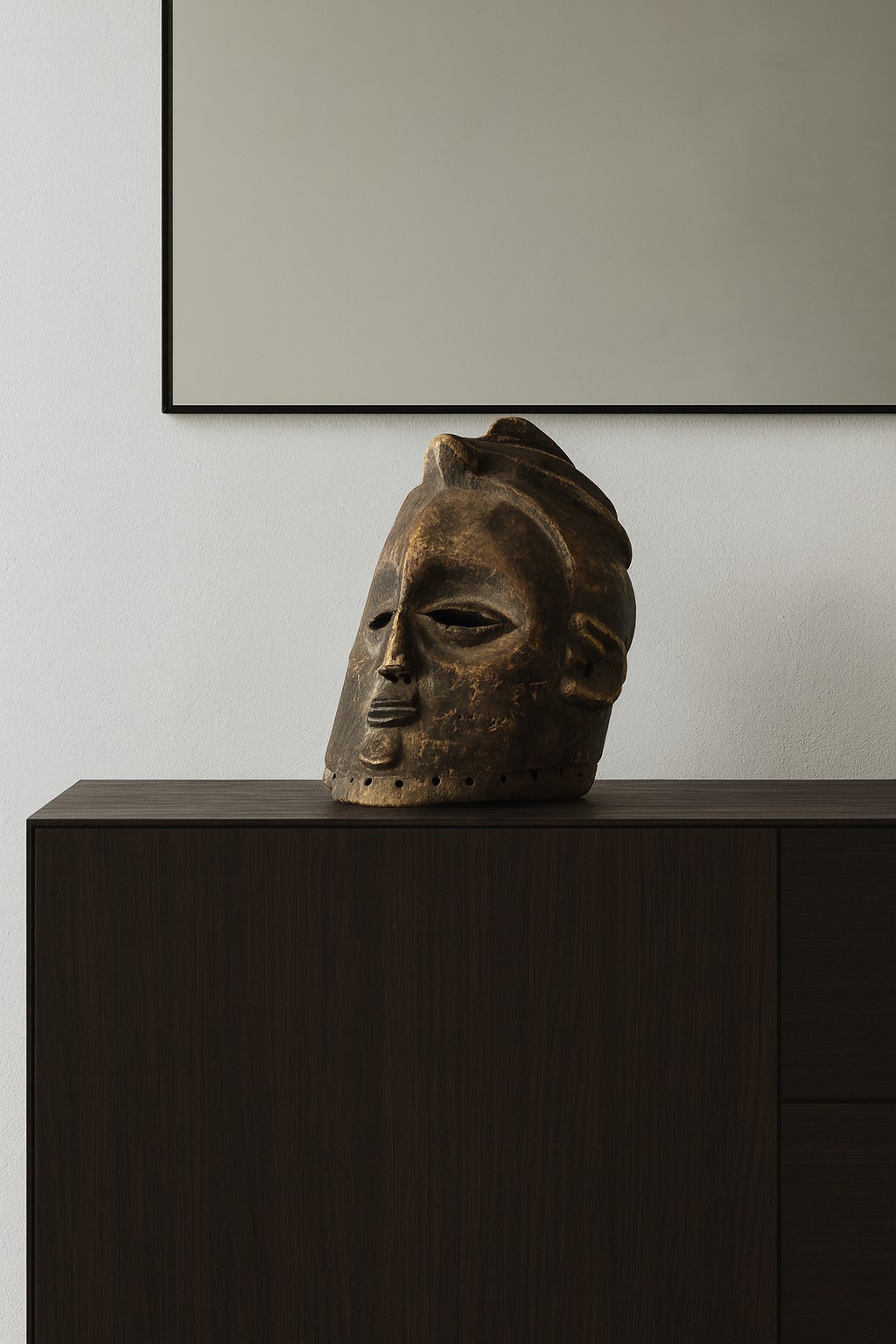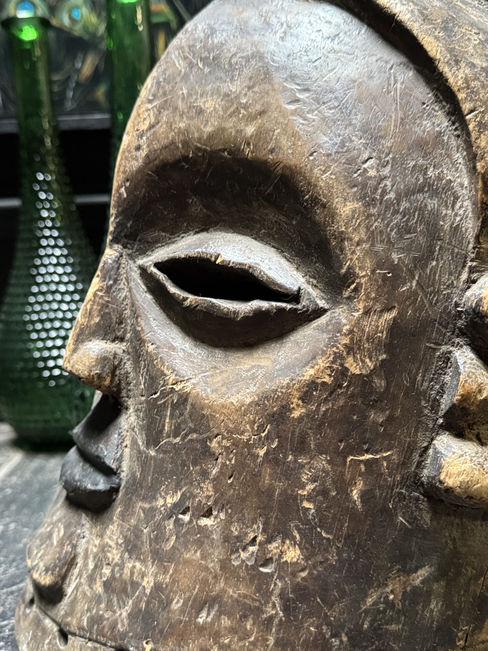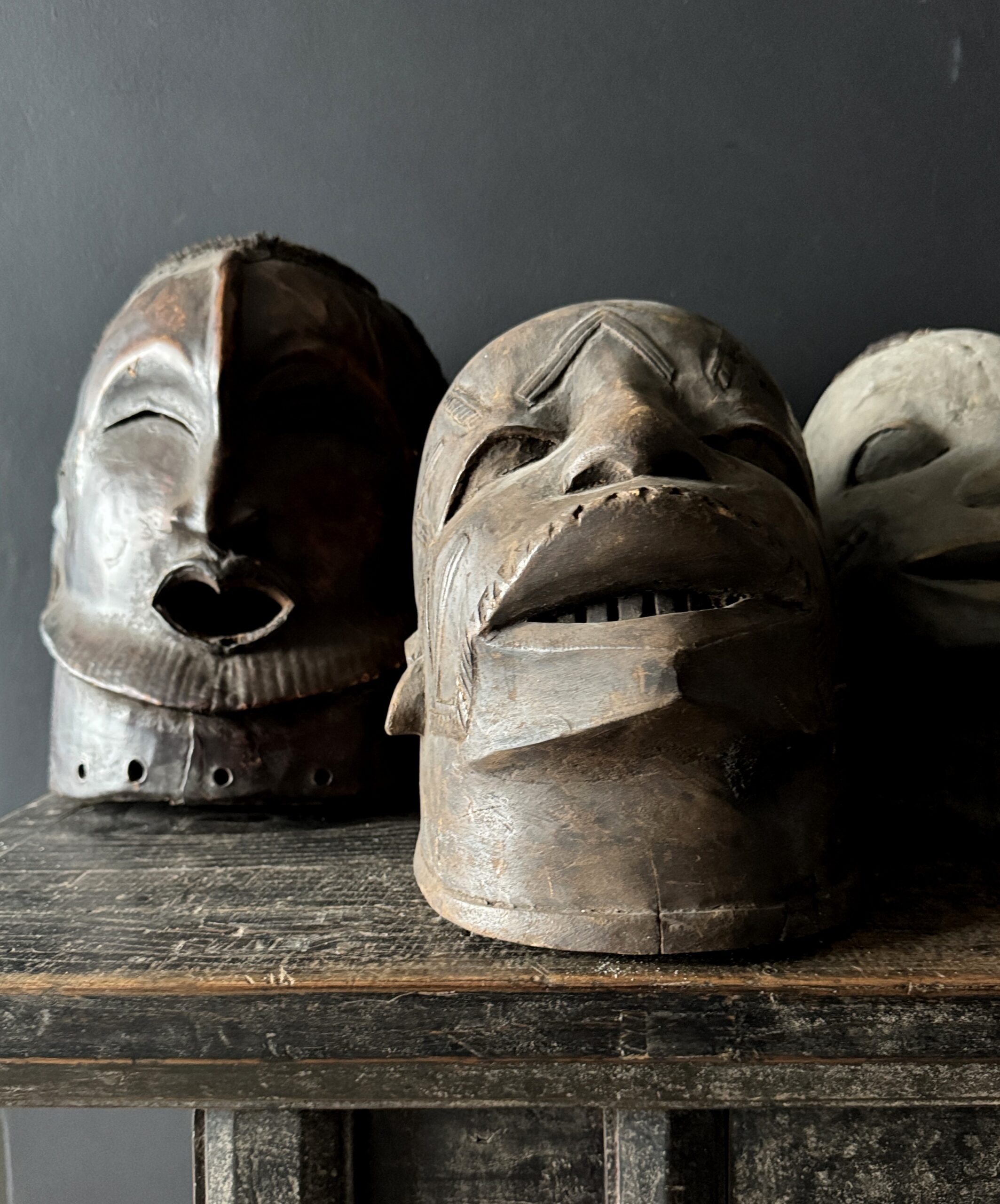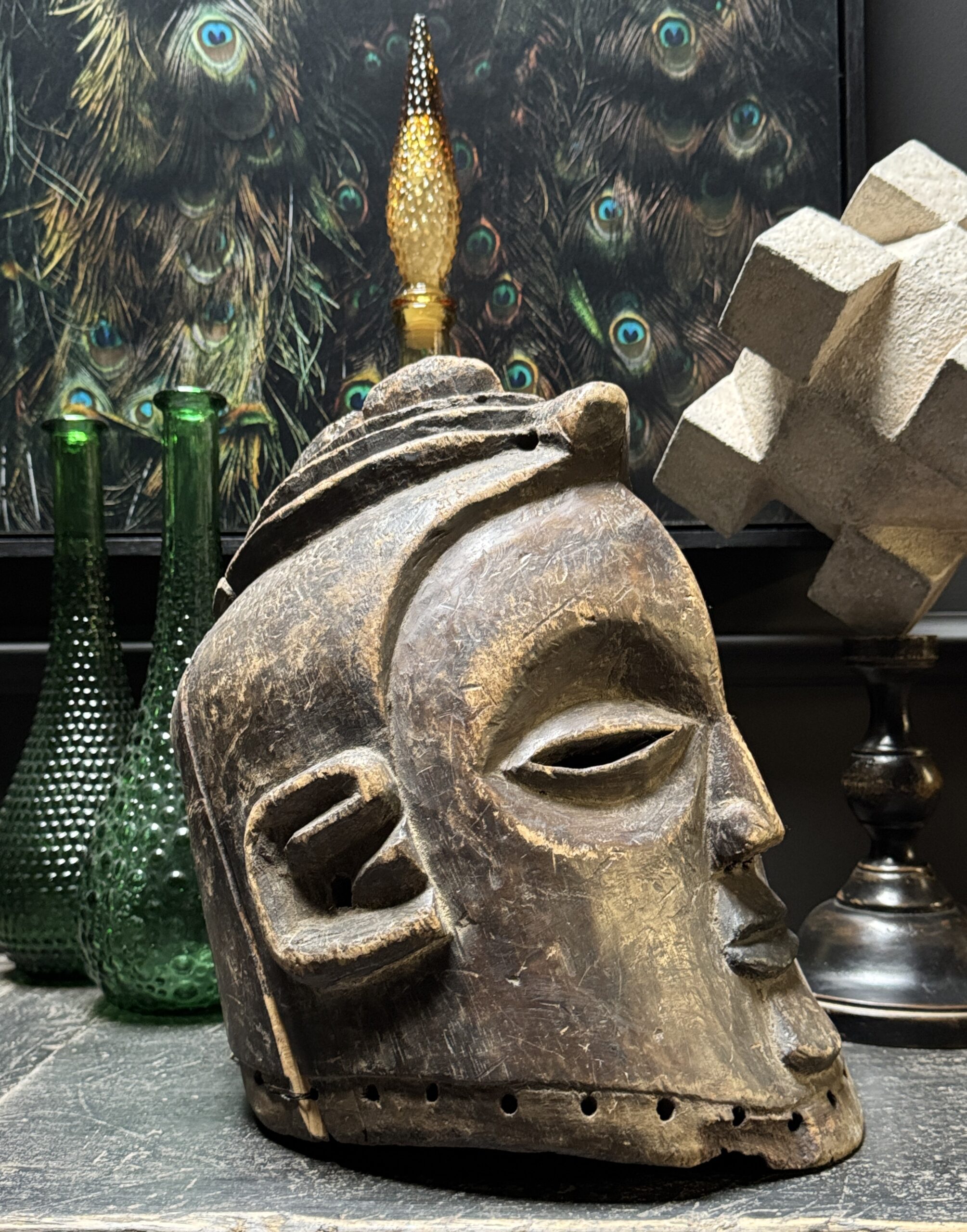 Diese antike afrikanische Maske ist nicht nur ein Kunstwerk, sondern auch ein bedeutendes Stück Geschichte und Kultur. Mit ihren handgeschnitzten Formen, der verwitterten Patina und dem ausdrucksstarken Gesichtsausdruck bringt sie Charakter und Authentizität in jedes Interieur. Dank der natürlichen Materialien und der warmen Farbtöne passt eine solche Maske sowohl in moderne als auch in klassische Wohnräume. Auf einem Sideboard, Wandregal oder als Blickfang an der Wand