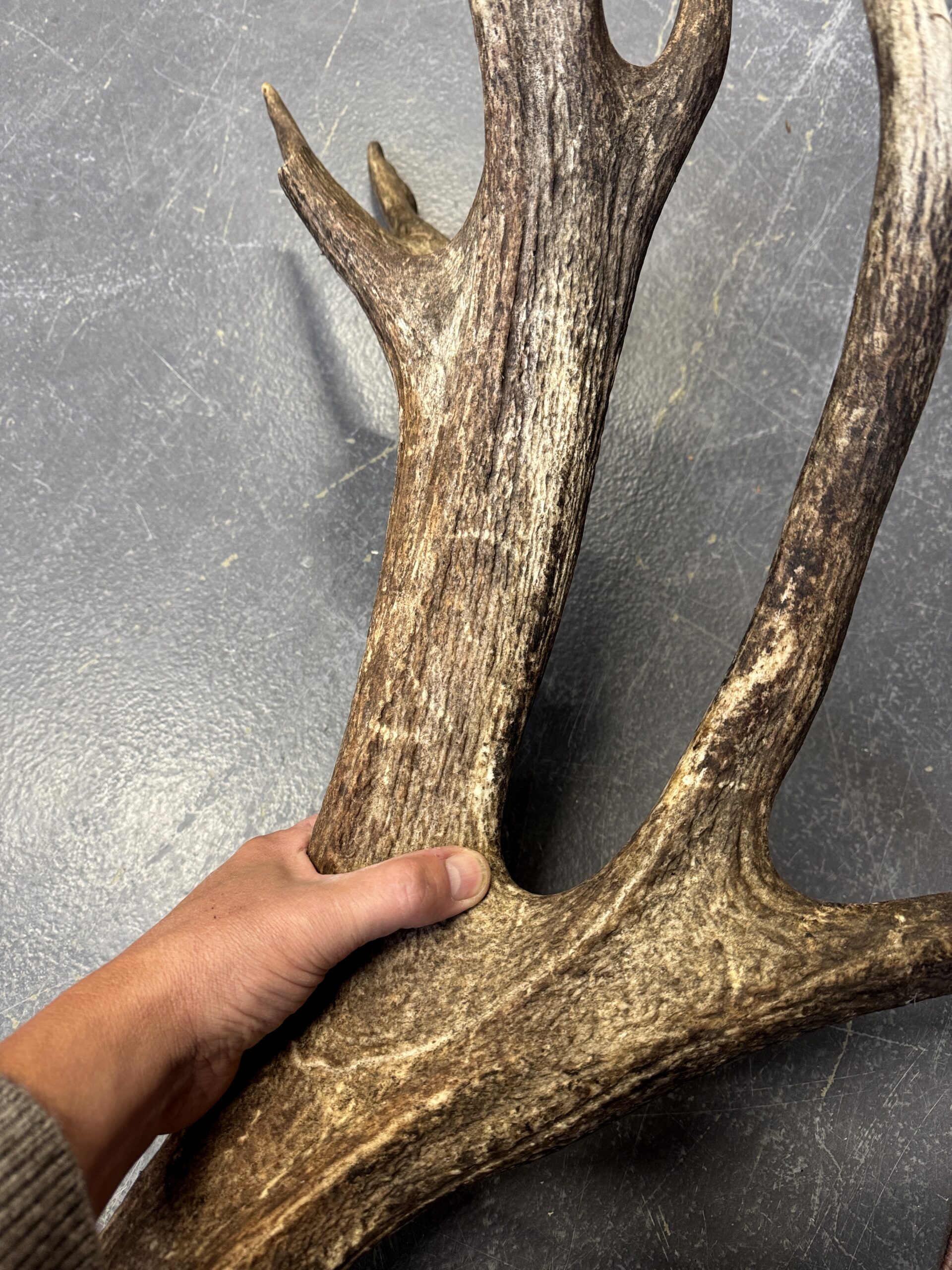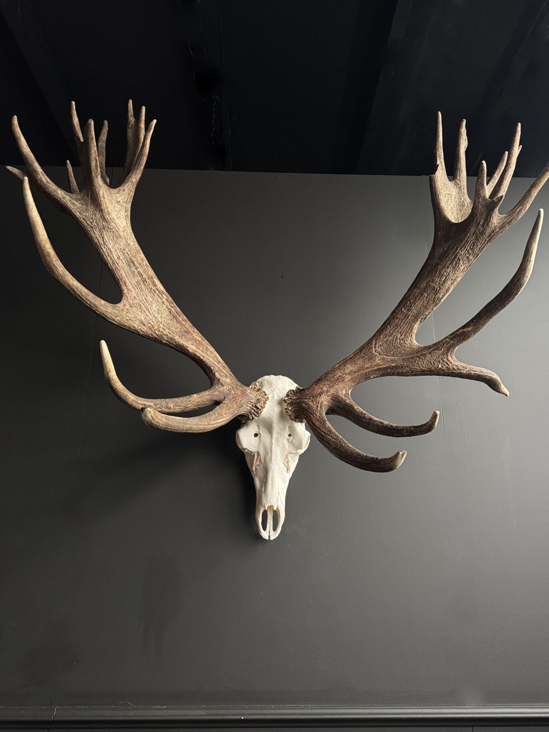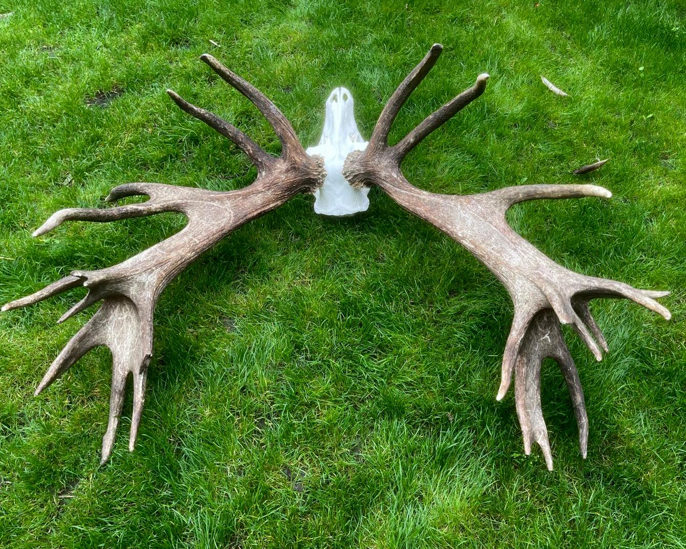 Enorm schweres und großes Rothirschgeweih. Das Geweih dieses Rothirsches zeichnet sich durch sein außergewöhnlich hohes Gewicht und seine beeindruckende Größe aus. Seine robuste Struktur und die breiten Verzweigungen lassen auf eine starke körperliche Entwicklung schließen. Diese Kombination aus Masse und Größe macht das Geweih zu einem besonderen und unverwechselbaren Merkmal innerhalb der Art. Ein wunderschöner Blickfang, wenn Sie auf der Suche nach einem besonderen Geweih sind. Es handelt sich um ein 26-Enden-Geweih mit einem Gewicht von 11,4 kg.