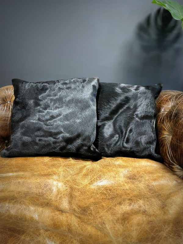 Set aus handgefertigten Kuhfellkissen. Hochwertige Kissen aus hochwertigem Rindsleder. Die Kissen werden mit Füllung geliefert und haben einen Reißverschluss auf der Rückseite.