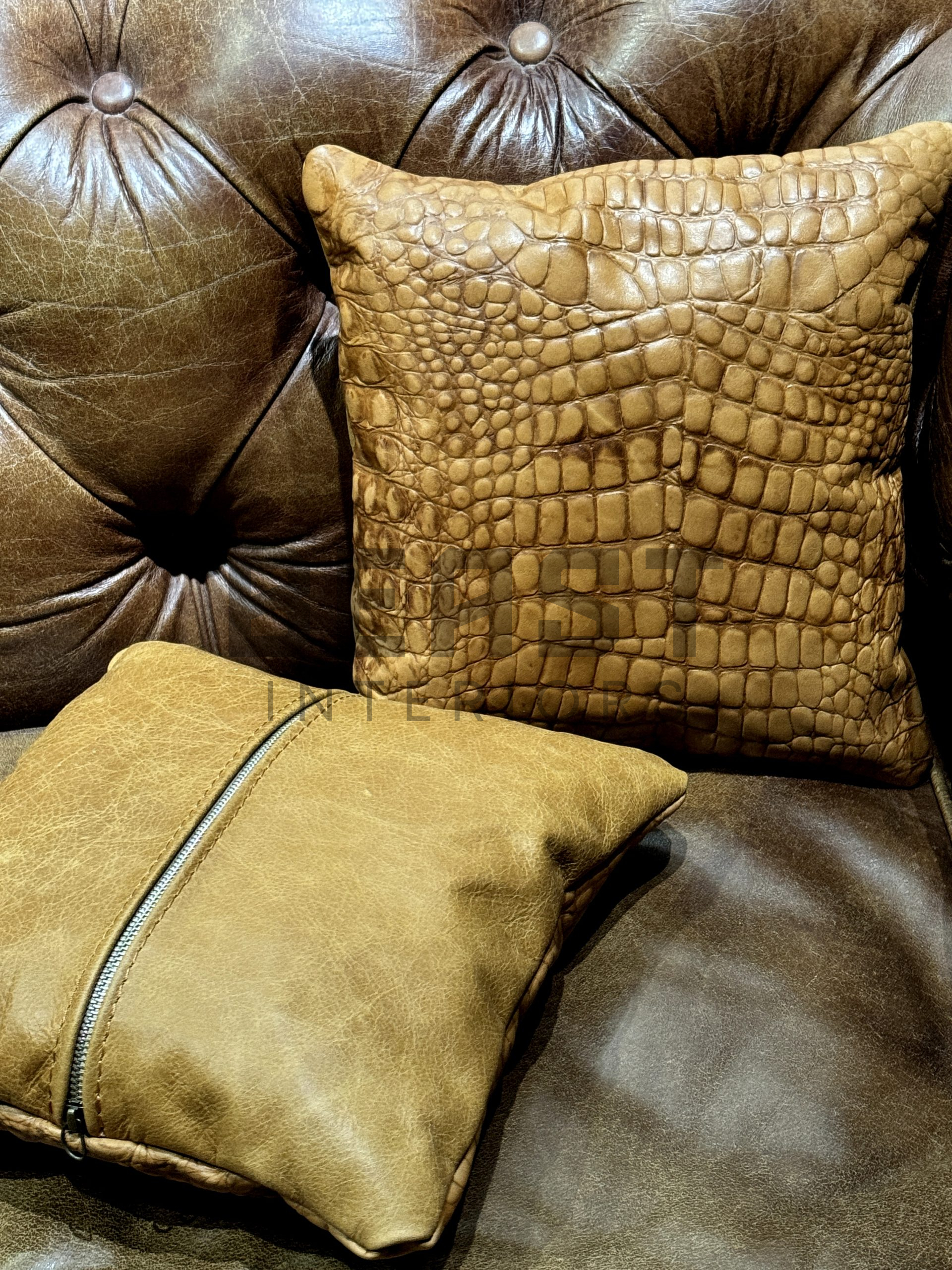 Set aus handgefertigten Kissen aus Krokodillederimitat. Hochwertige Kissen aus schönem Leder mit Krokodilprägung. Die Kissen kommen mit Füllung und haben einen Reißverschluss auf der Rückseite.