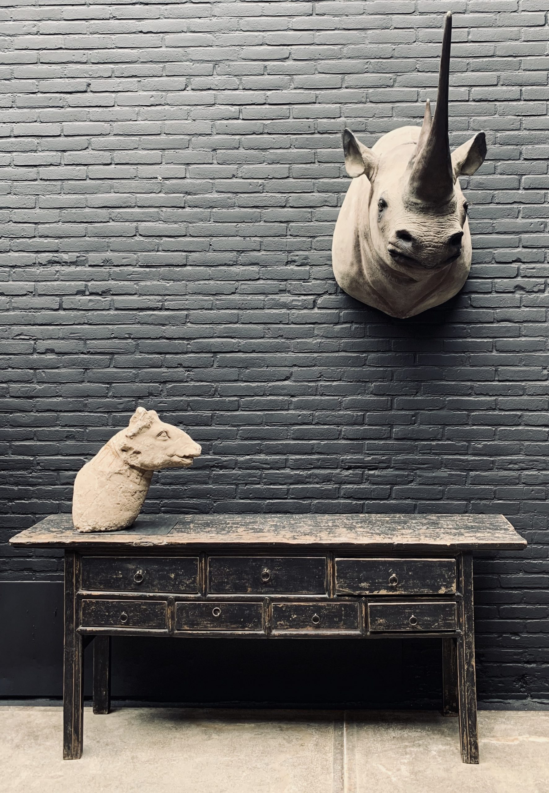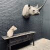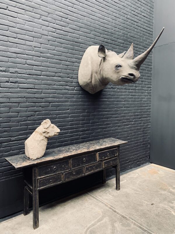 Replik eines echten schwarzen Nashorns. Diese Replik ist nicht von der Realität zu unterscheiden und jedes Detail ist vorhanden. Ein echter Hingucker ...