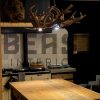 For 1 of our customers we made 2 beautiful antler lamps to decorate his wooden chalet. The large circle antler lamp is equipped with led lights which gives a beautiful effect.