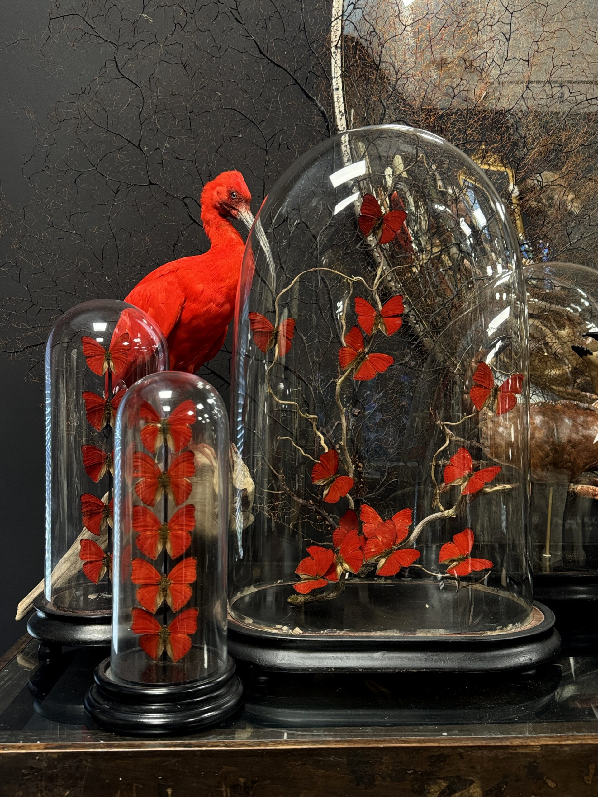 Antique oval dome with beautiful red butterflies (Cymothoe Sangaris) mounted on a natural branch. BEAST interiors can make bellarms in various shapes and with a filling of your choice. Ask about the possibilities.