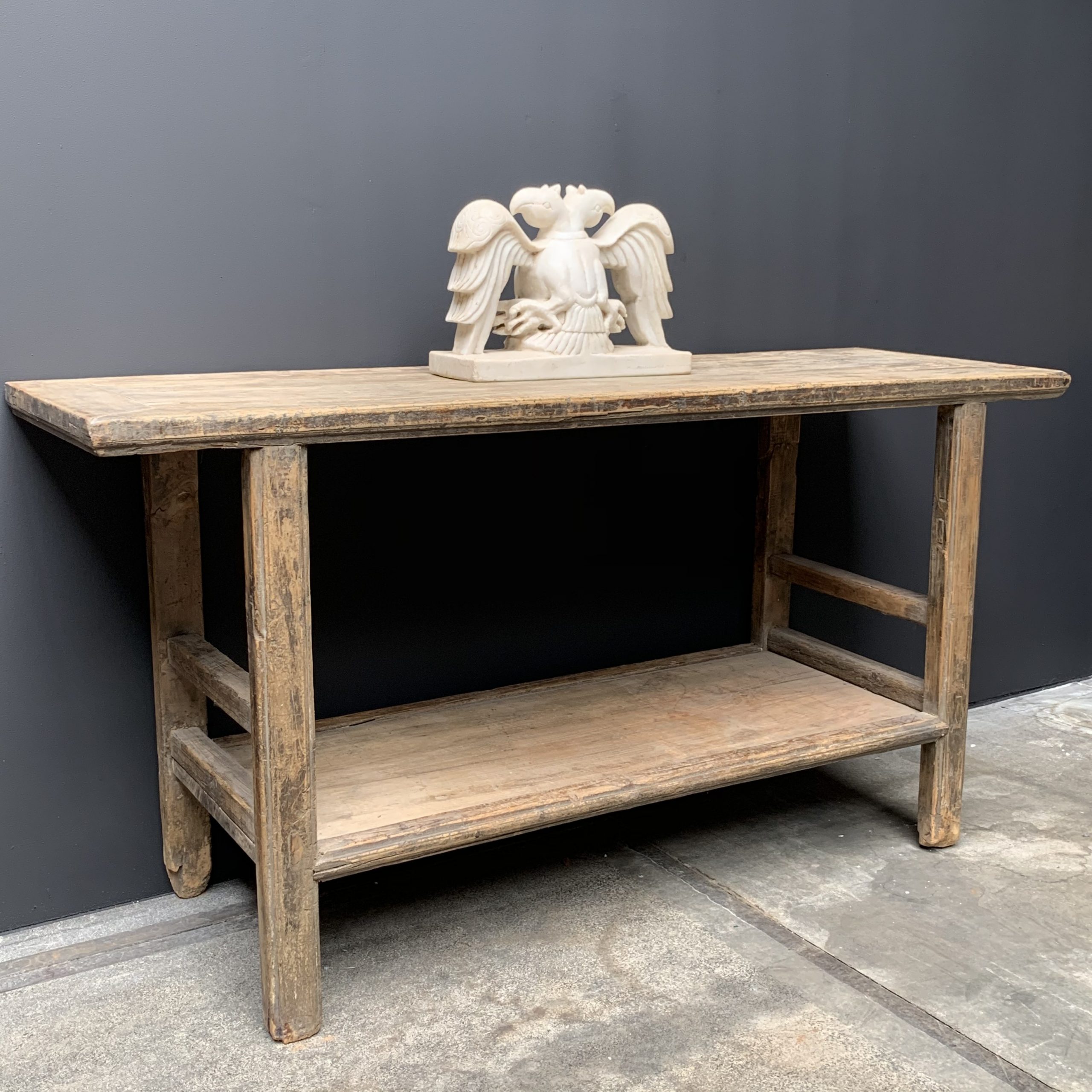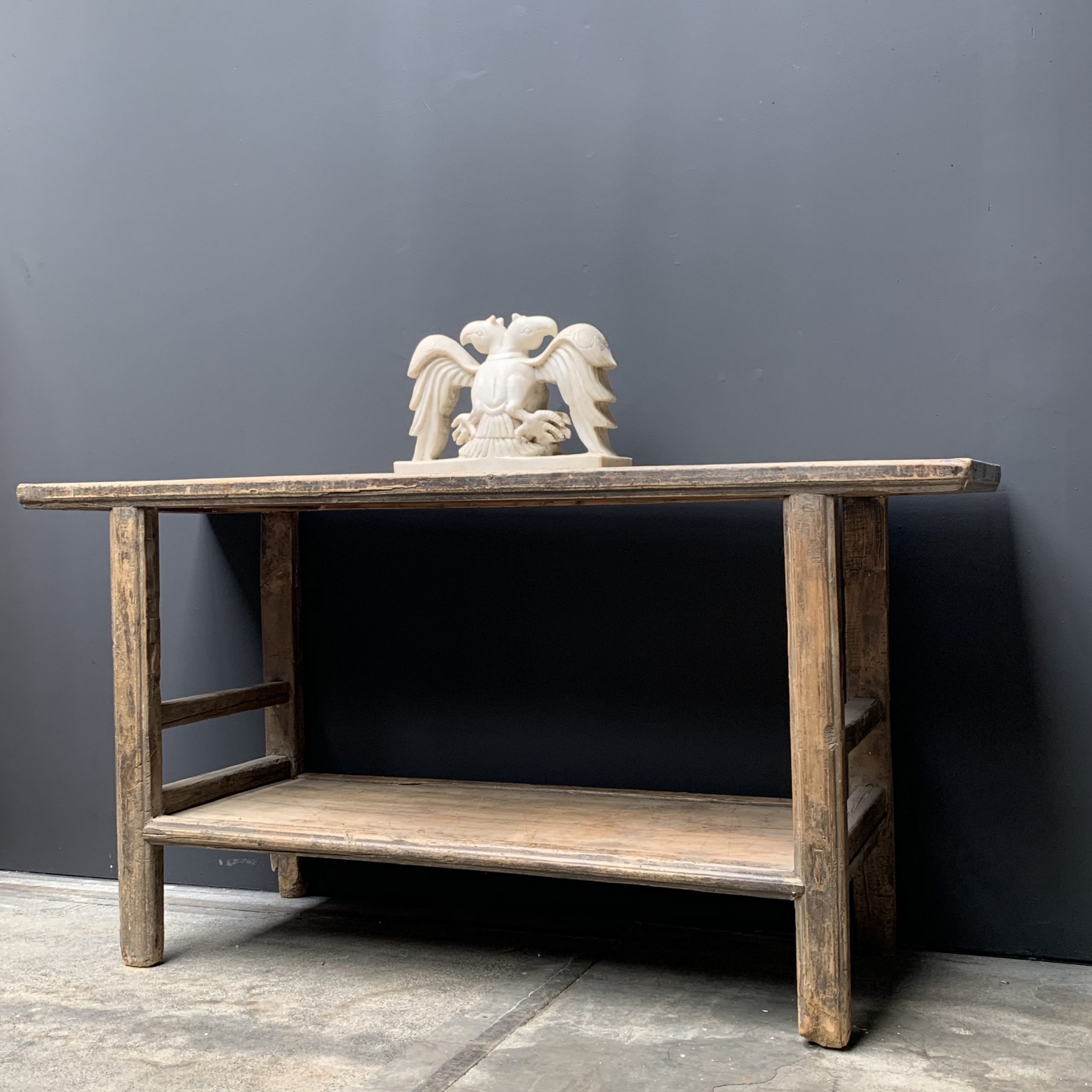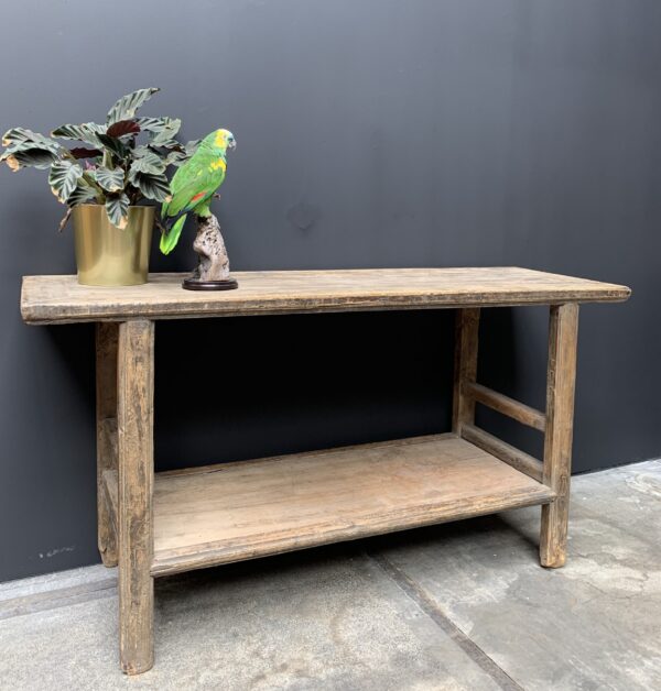 Antique wooden wall table with bottom table. The wall table is in perfect condition and has a beautiful lived-in appearance and a beautiful patina. The furniture is in stock and can therefore be delivered quickly.