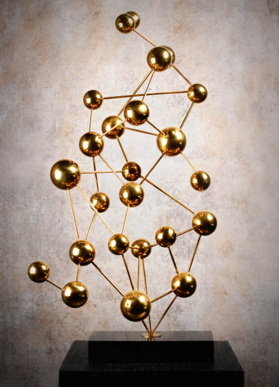 Beautiful contemporary sculpture in the theme of the canopy ! Beautiful gold bronze patina and black marble.