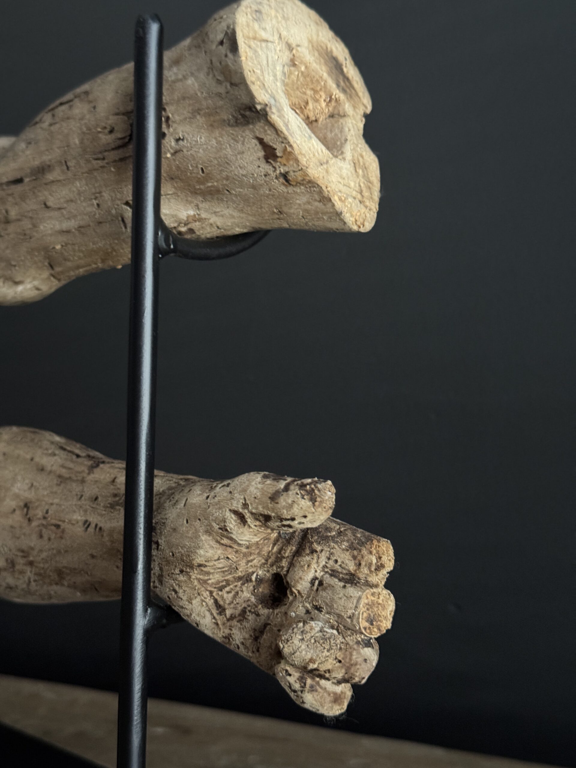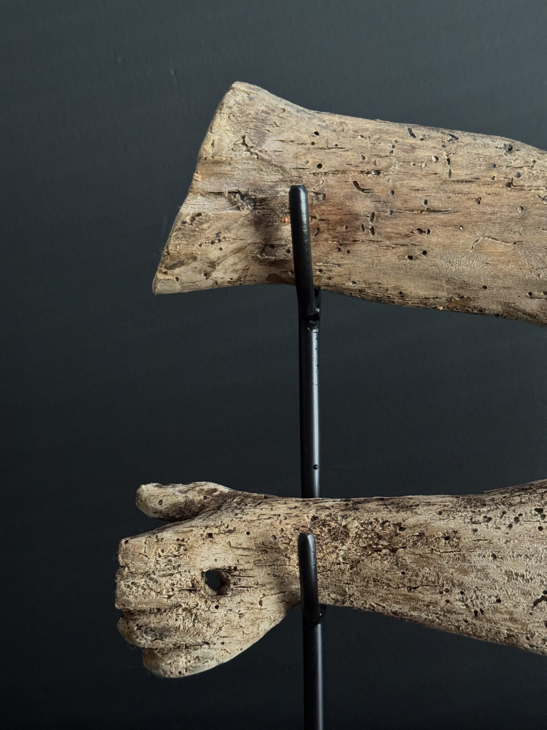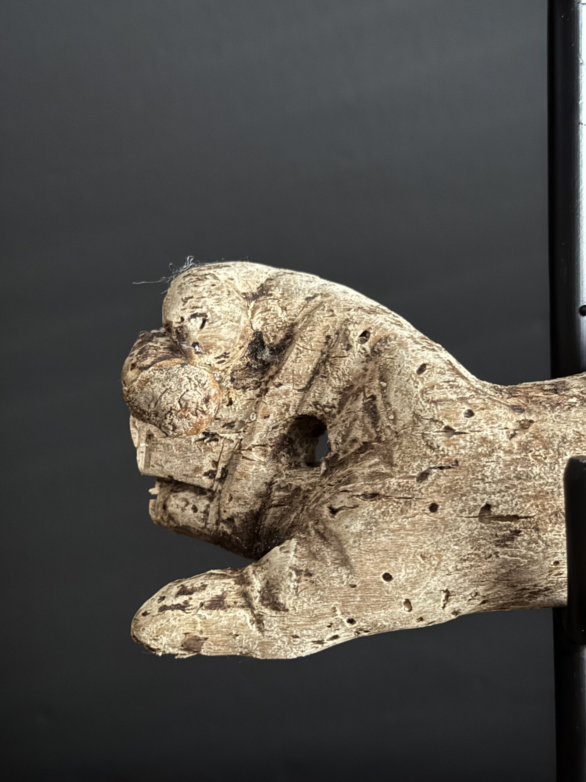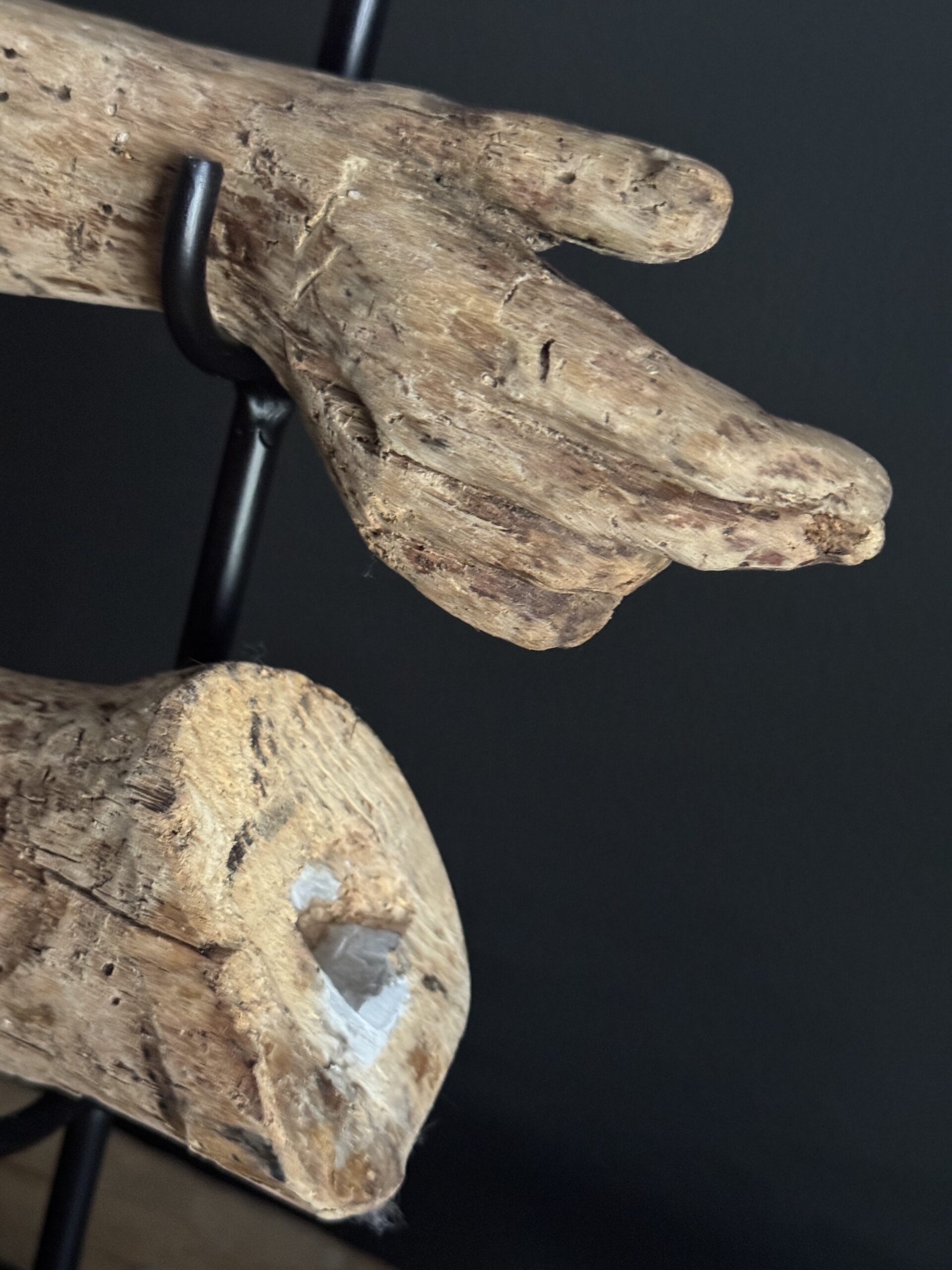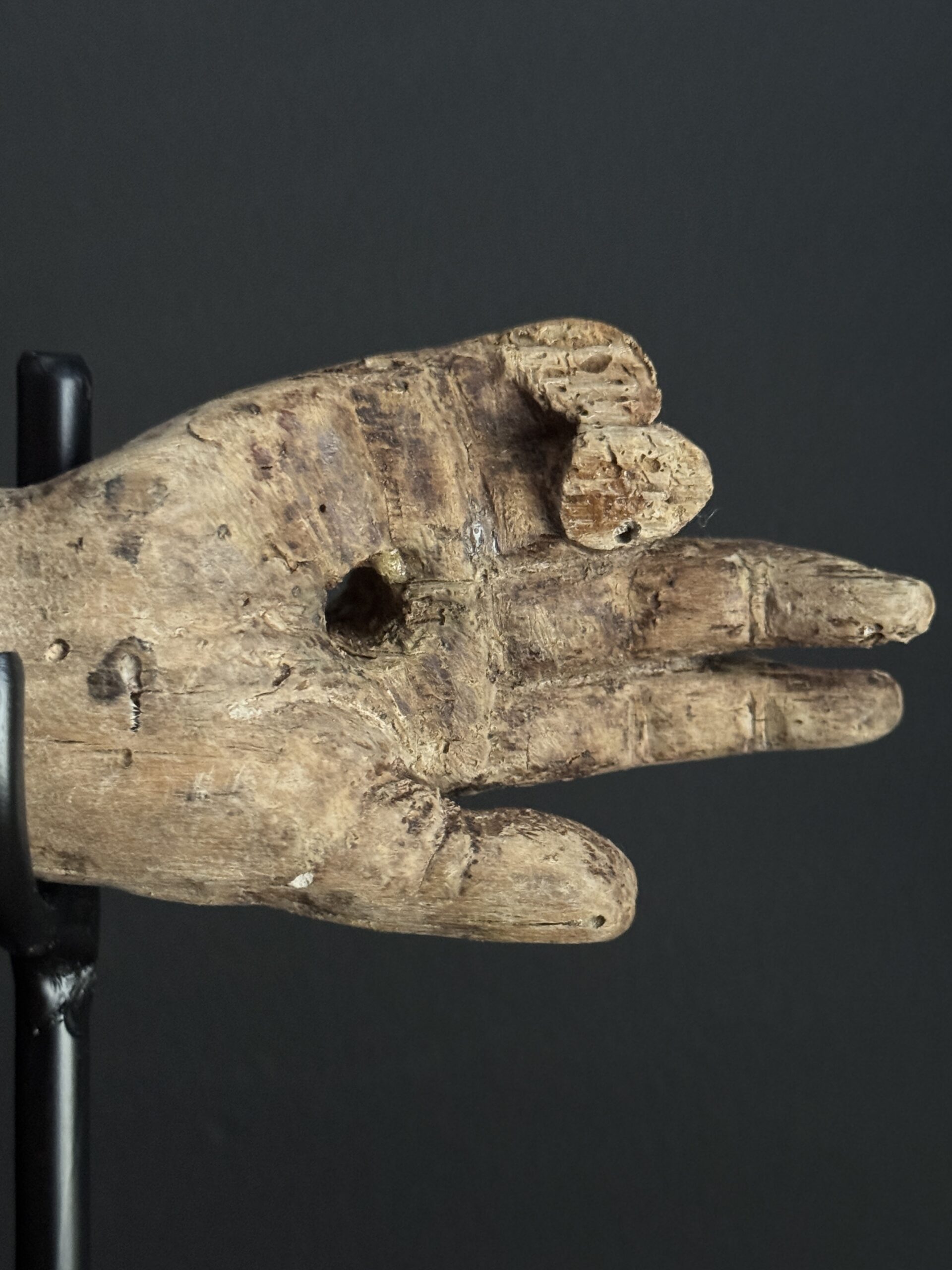 These two decorative wooden arms from the 17th century are true eye-catchers full of character and history. With their beautiful patina and refined design, they tell a story from a bygone era. Presented on a custom-made support, the unique details stand out even more, making them a stylish and authentic accent in any interior.