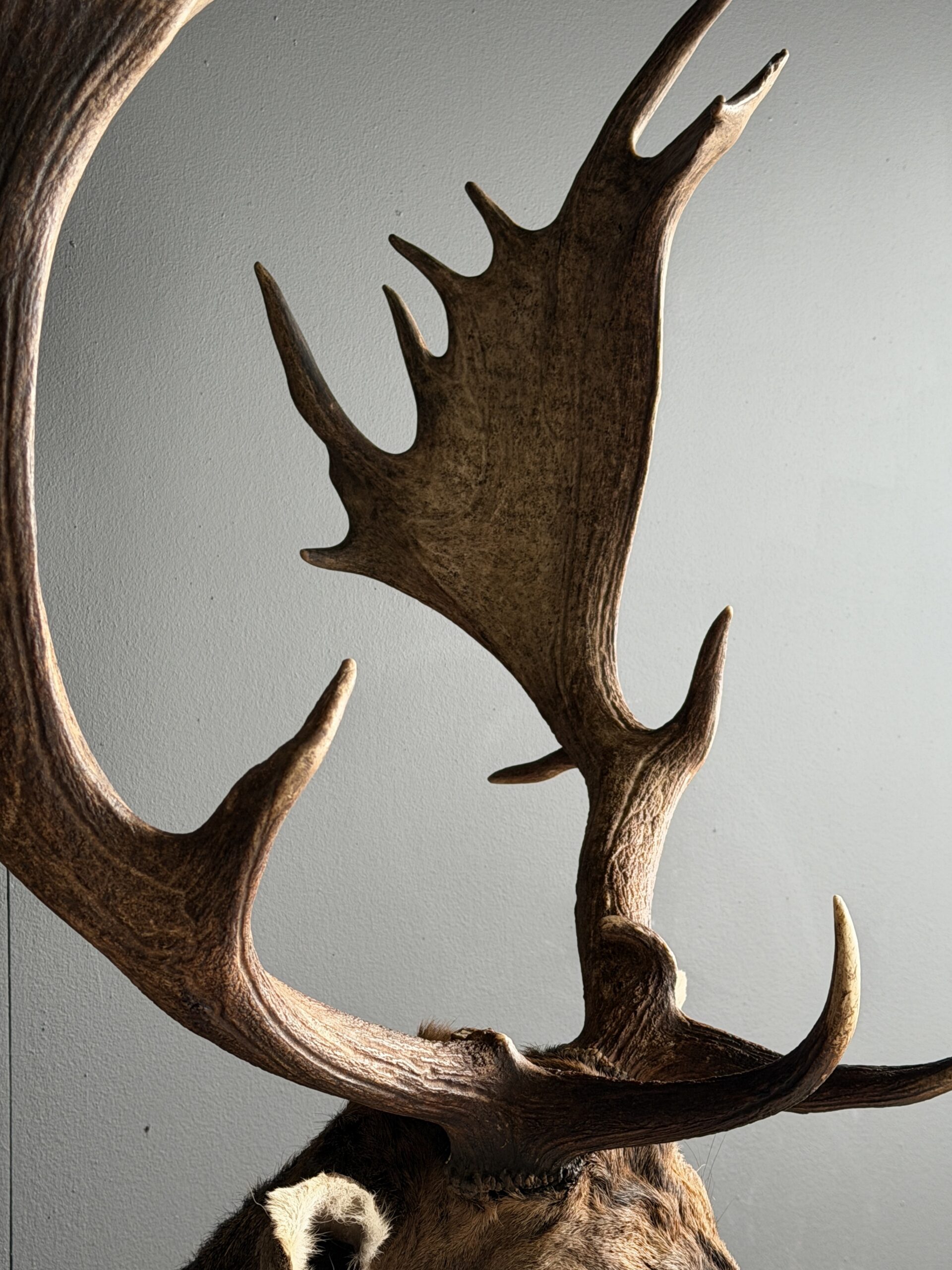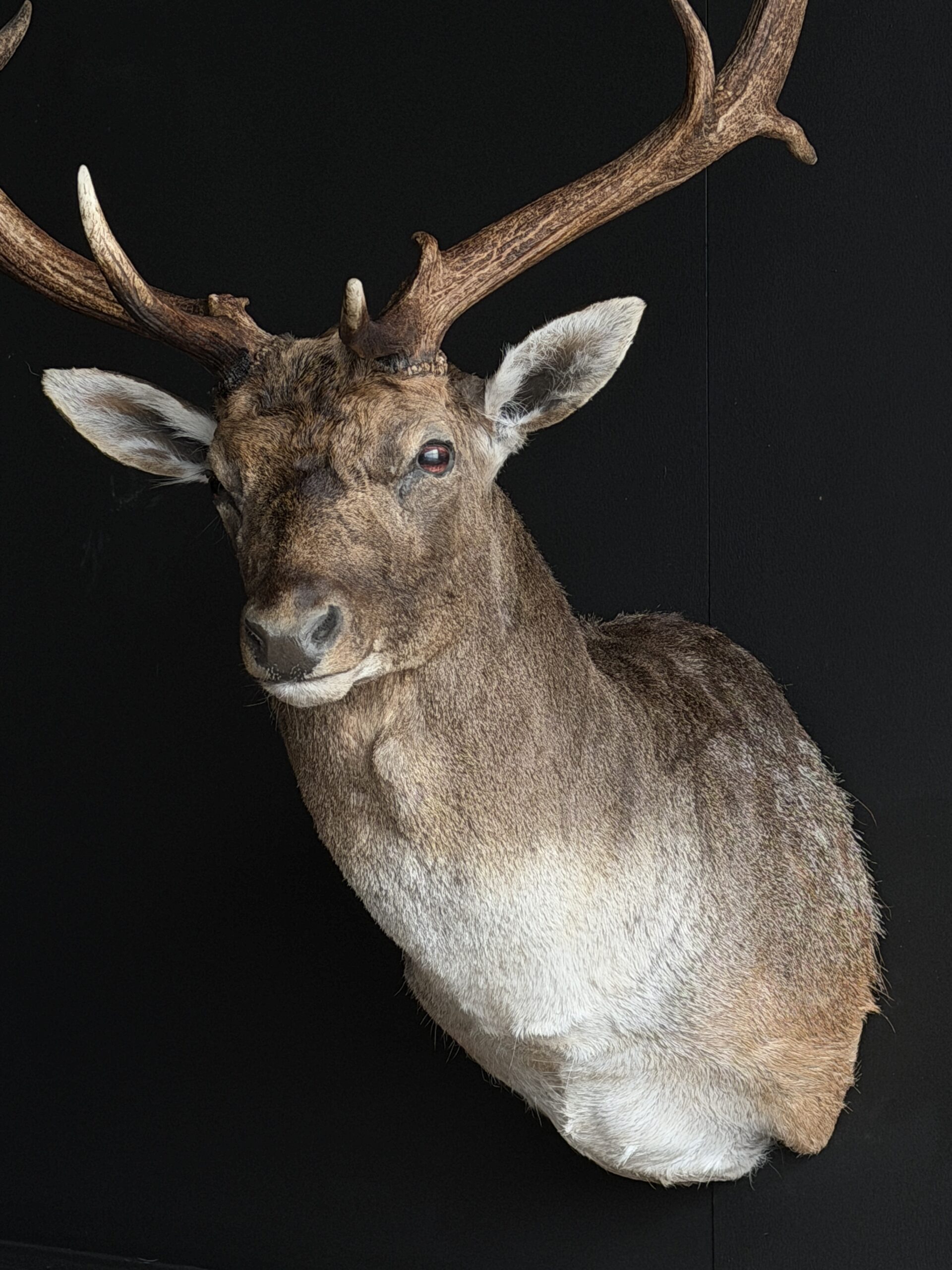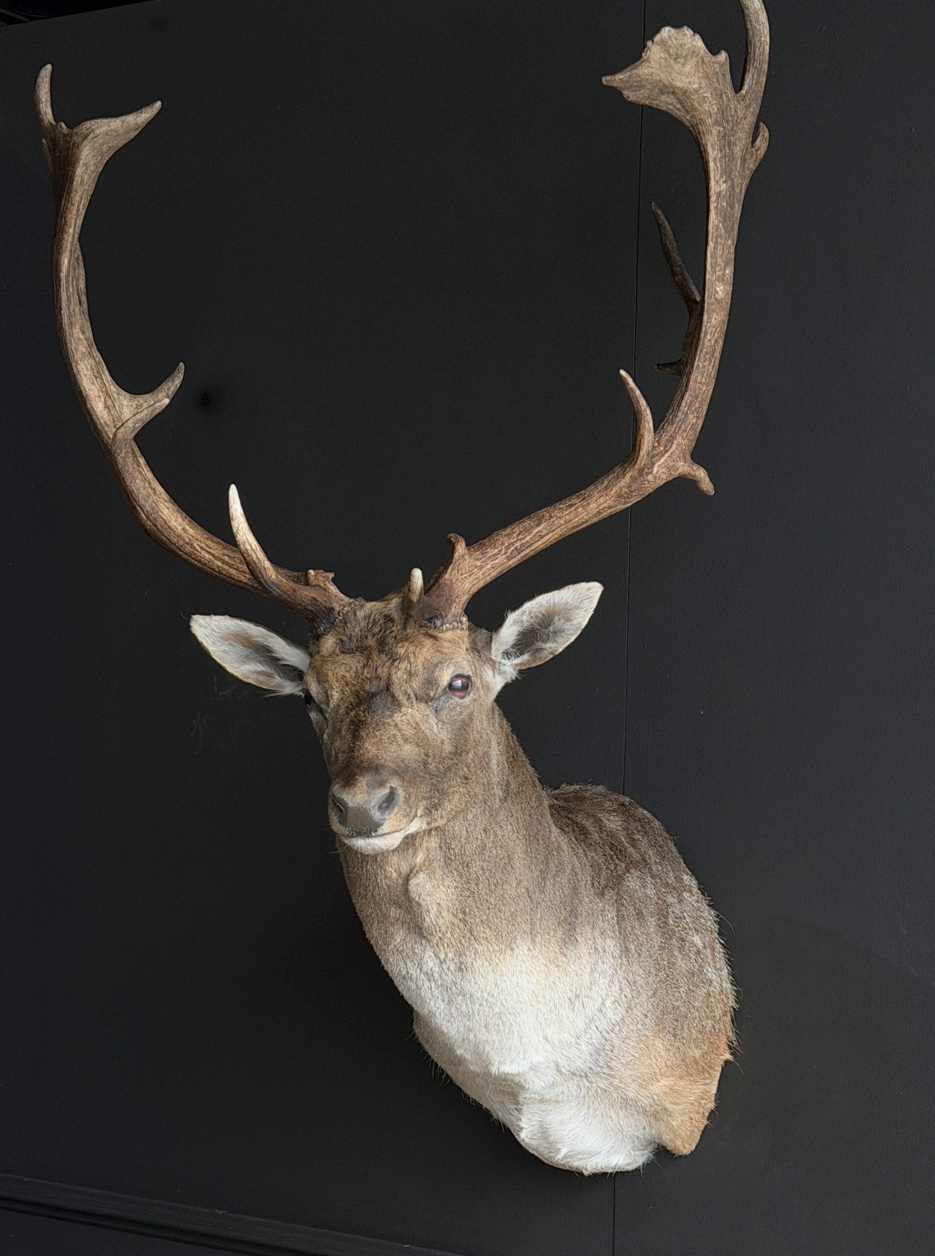 New mounted head of a fallow deer. This beautiful fallow deer is mounted in twisted pose with the antlers nicely visible. The deer has been set up with great attention to detail which makes it a beautiful piece.
