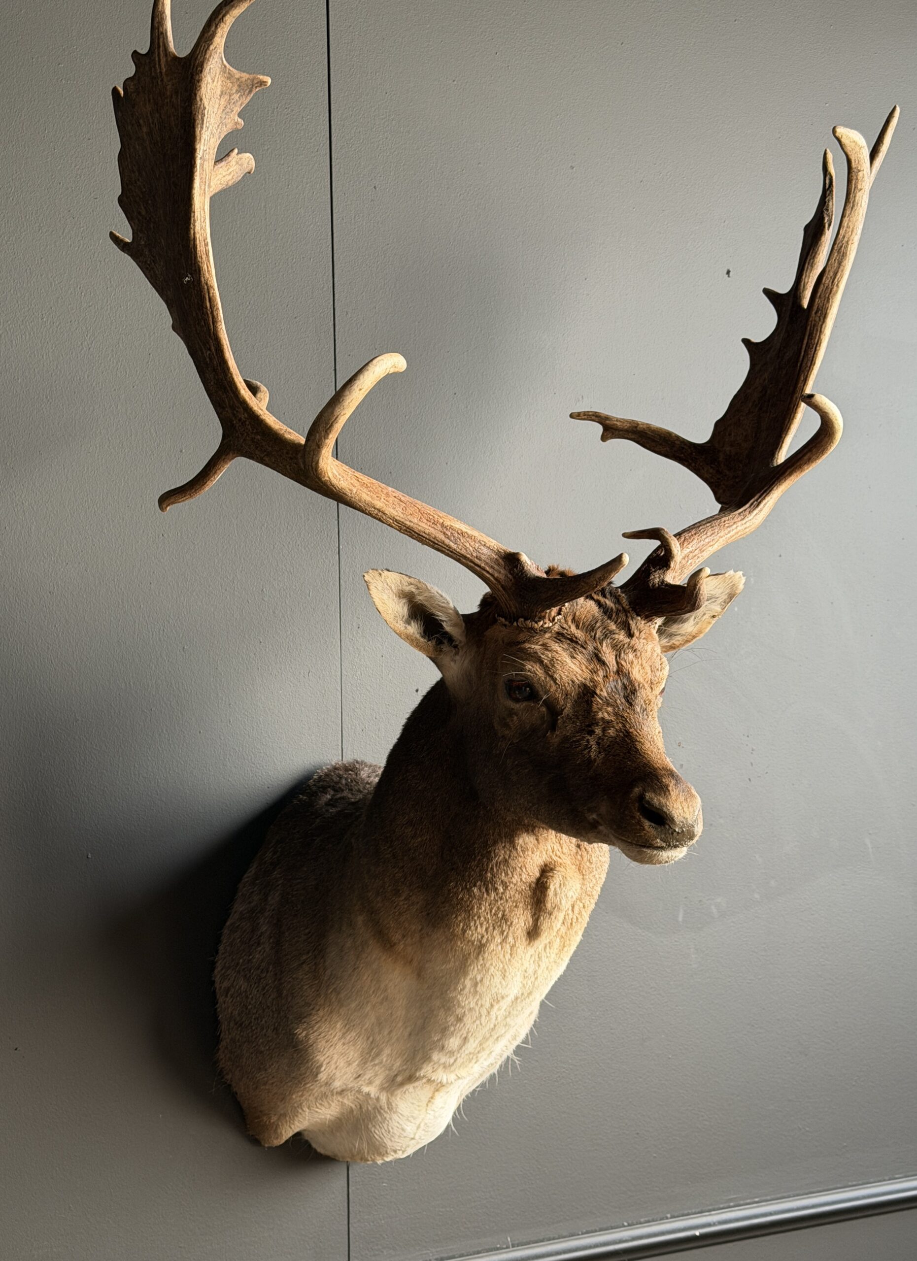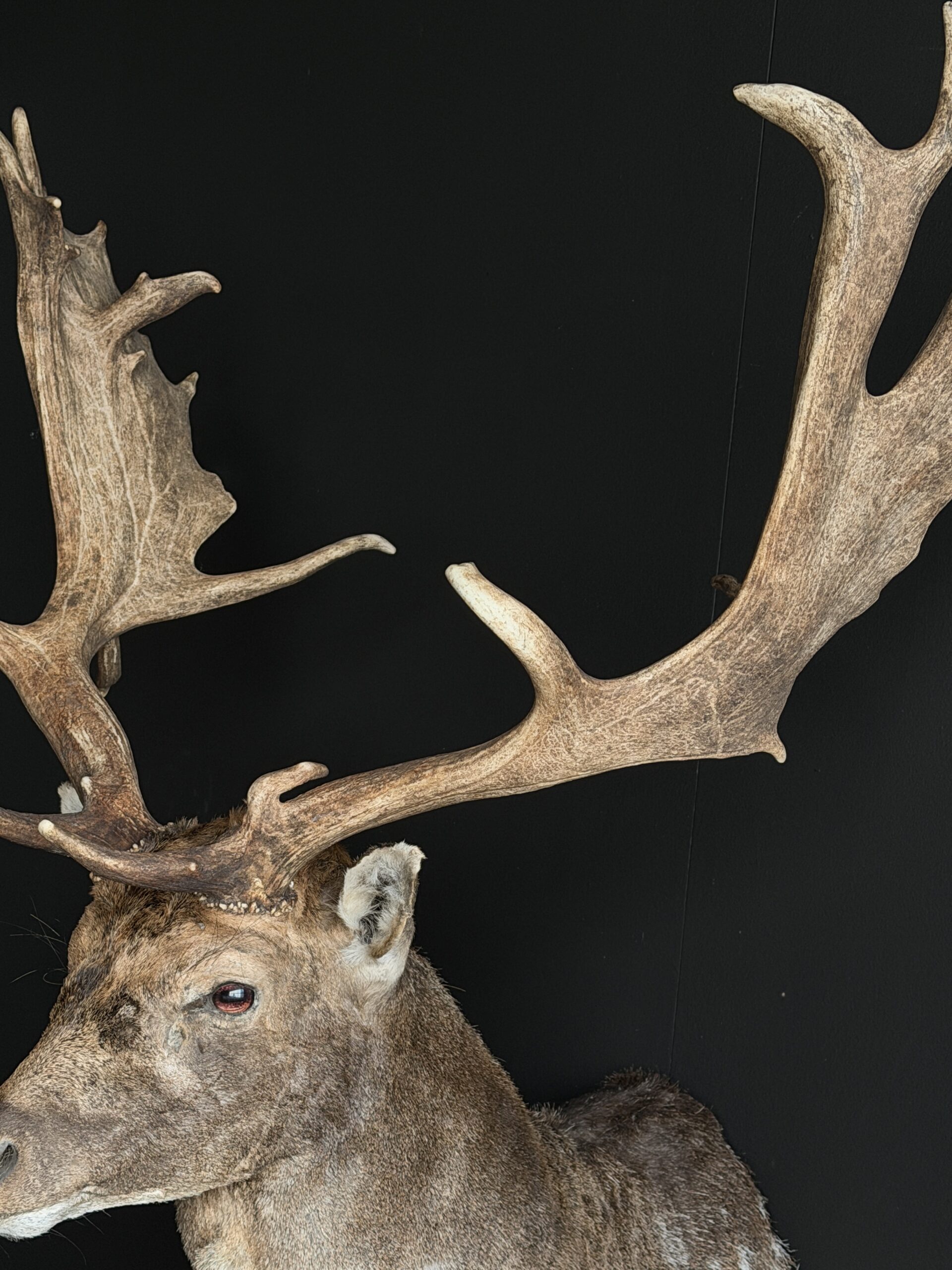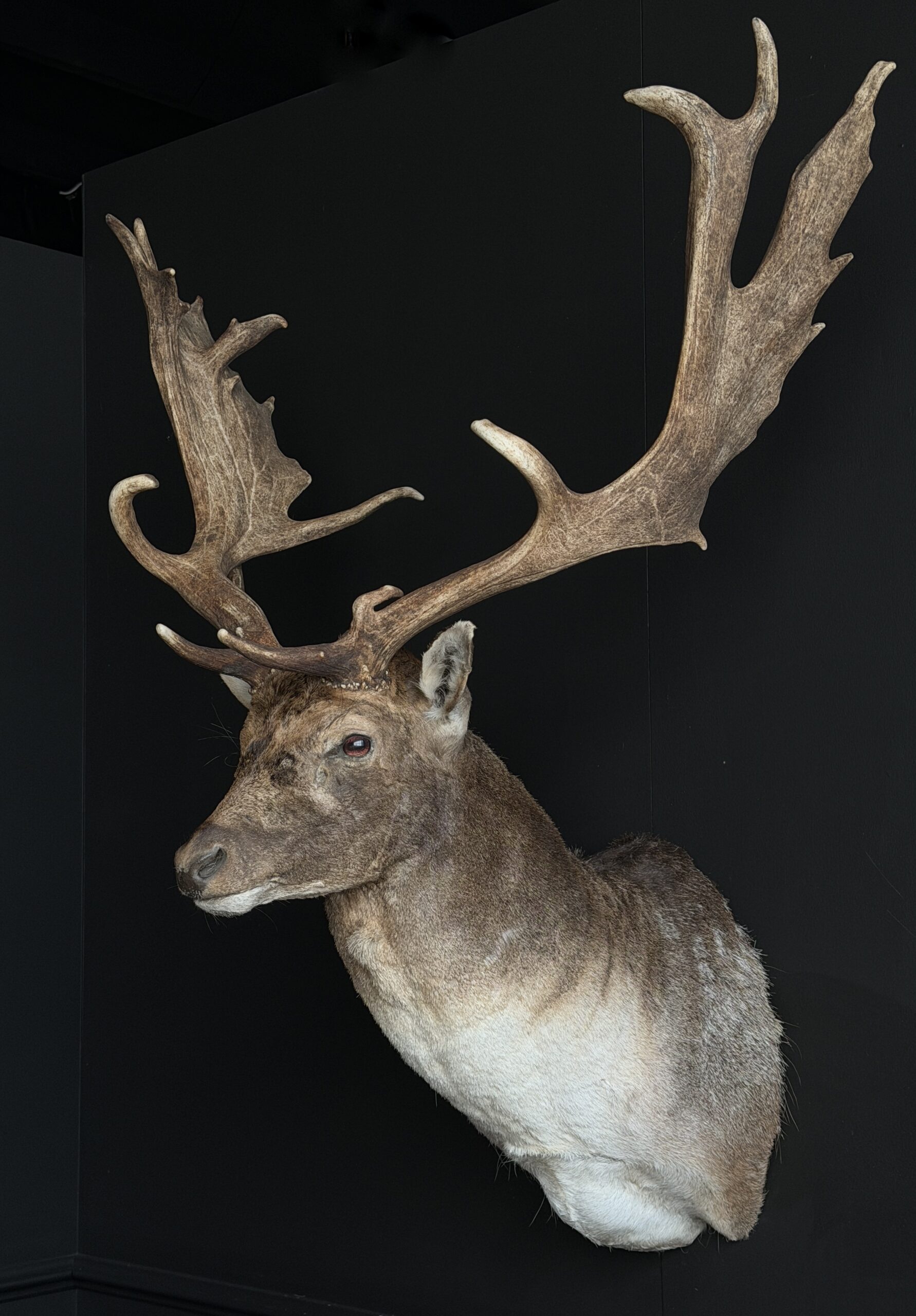 New mounted head of a big fallow deer. This beautiful fallow deer is mounted in twisted pose with the antlers nicely visible. The deer has been set up with great attention to detail which makes it a beautiful piece.