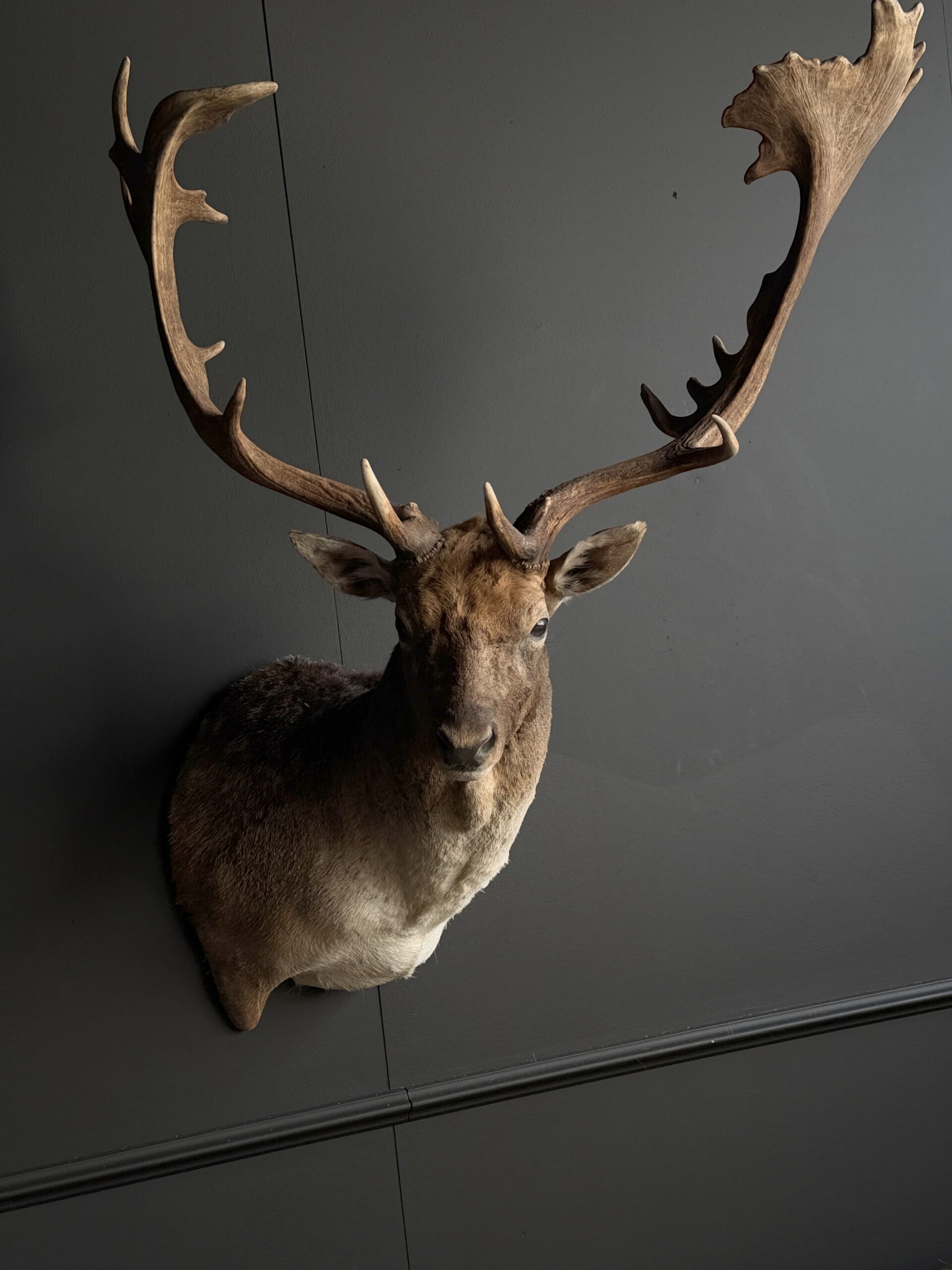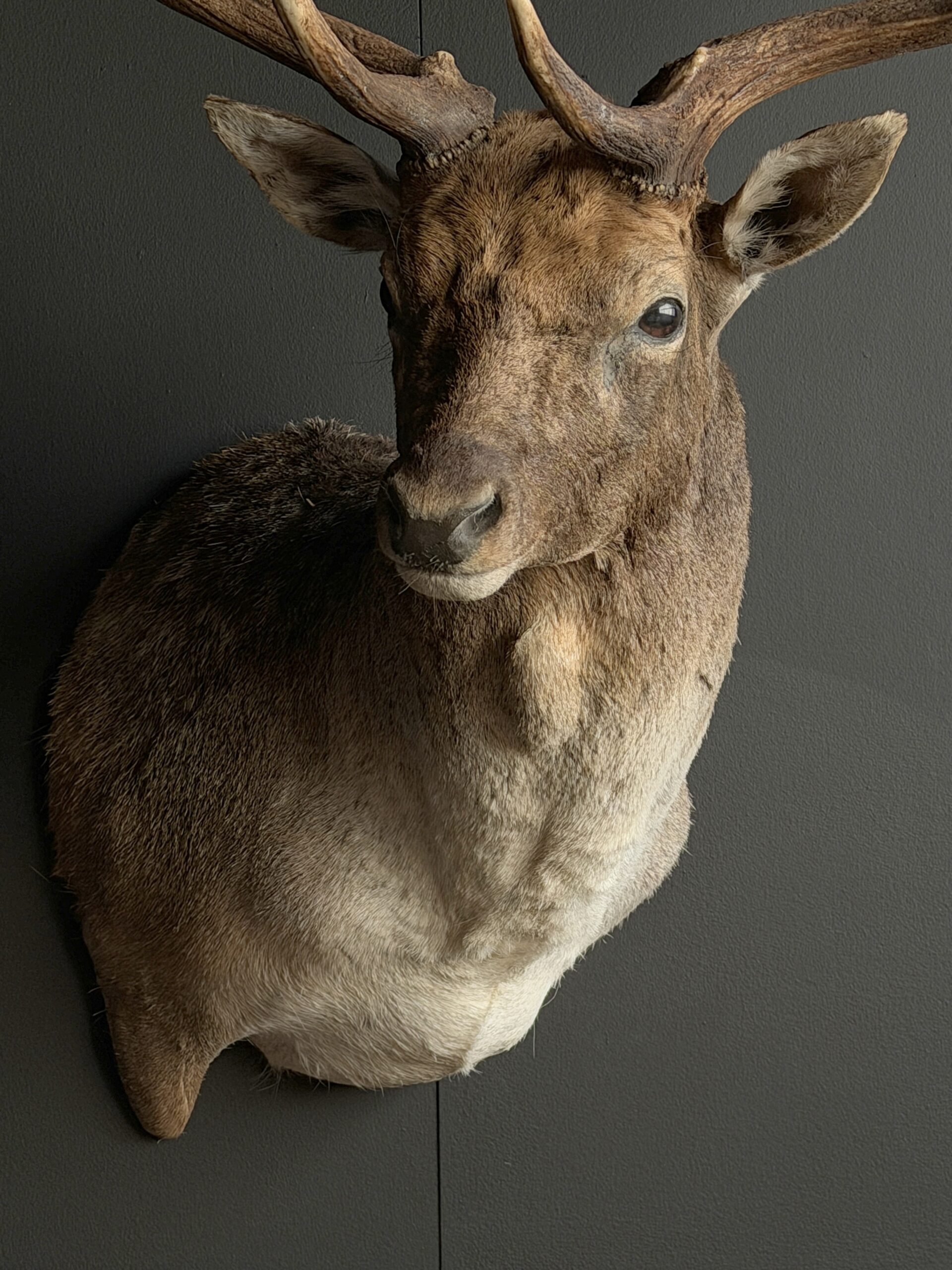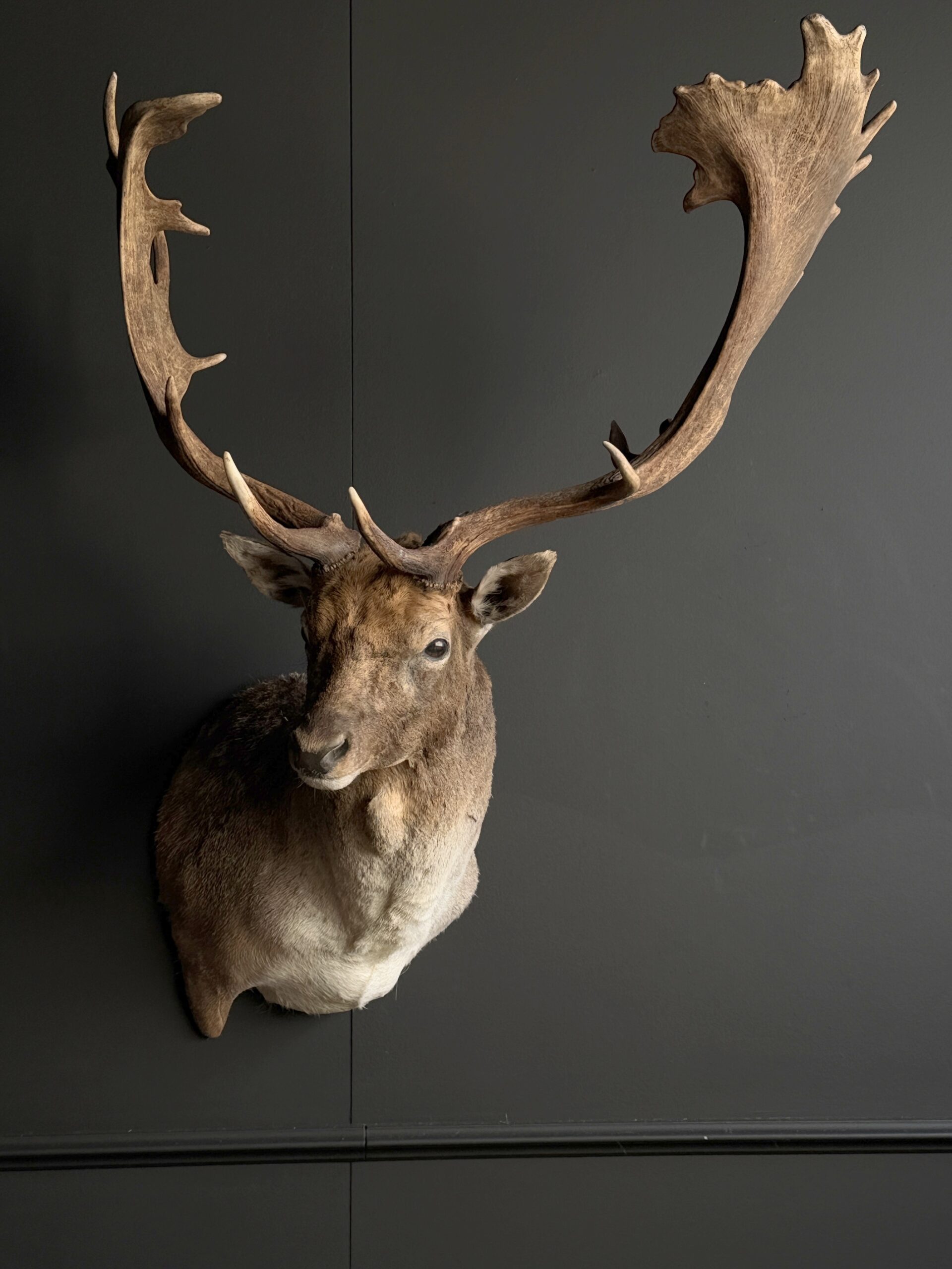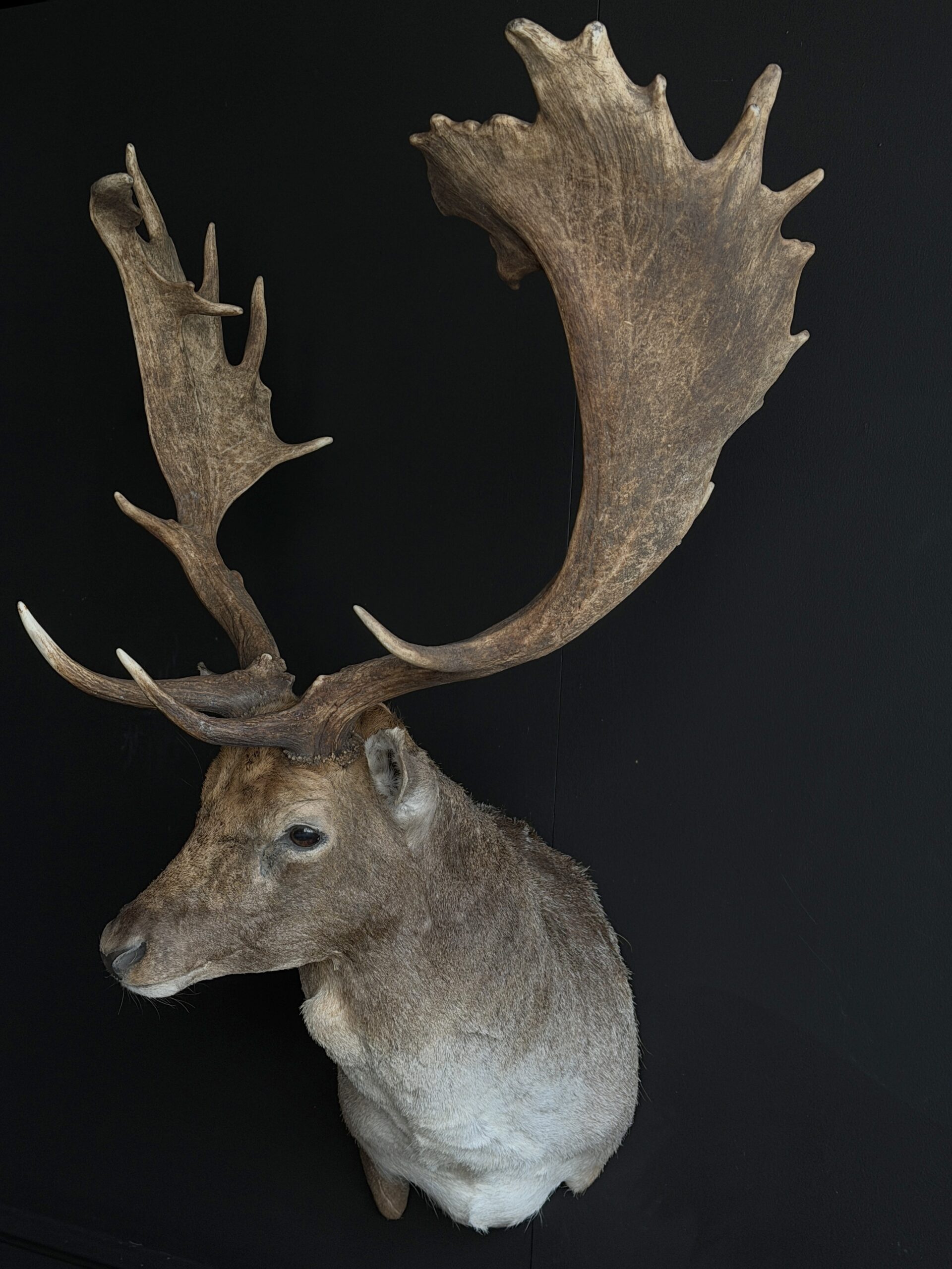 New mounted head of a big fallow deer. This beautiful fallow deer is mounted in twisted pose with the antlers nicely visible. The deer has been set up with great attention to detail which makes it a beautiful piece.