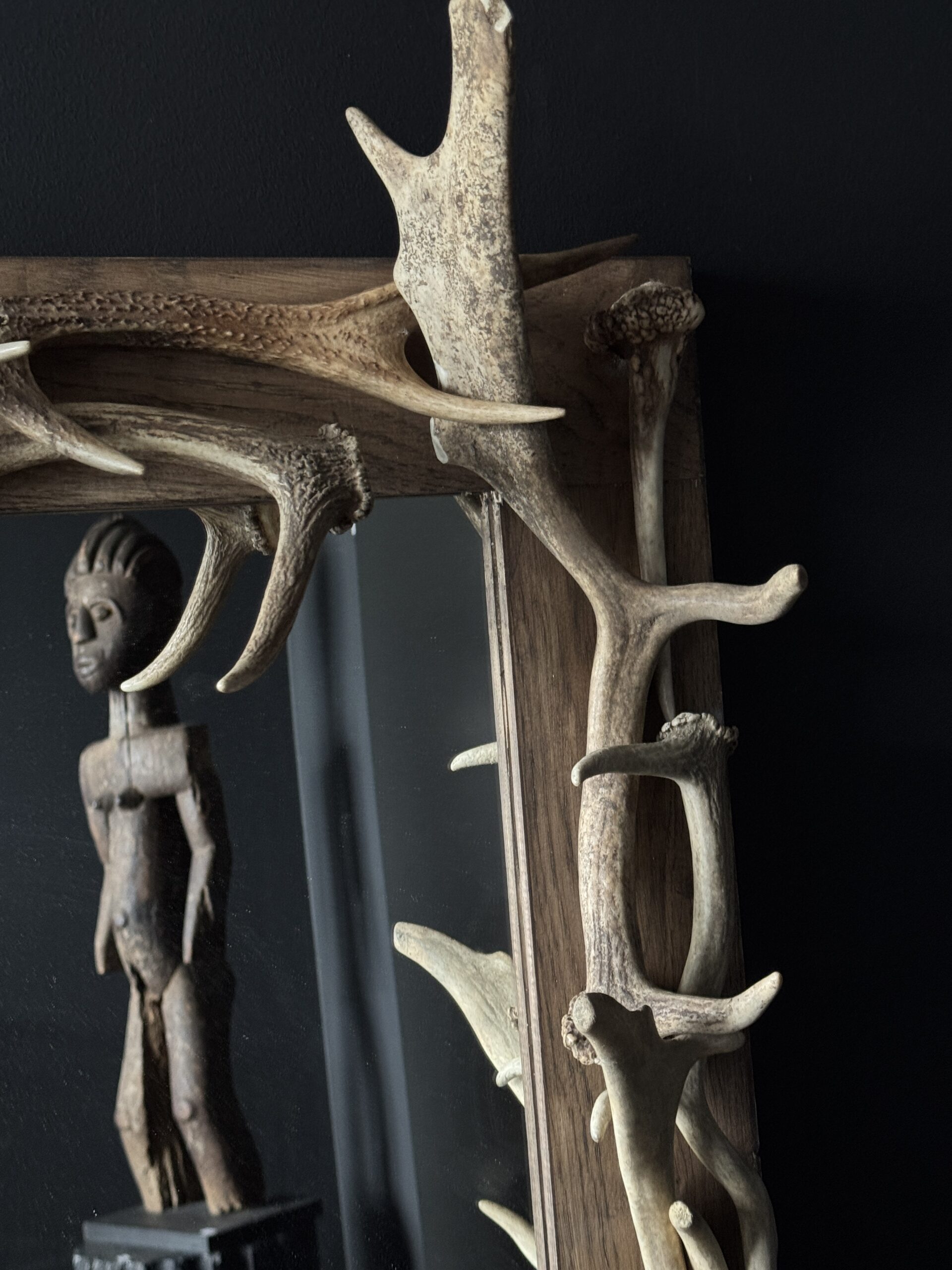 A high-quality antler mirror is a unique piece of craftsmanship that combines the natural beauty of antlers with functionality. Made from real antlers, each mirror exudes a rustic and authentic look, leaving the characteristic shapes and textures of the antlers clearly visible.
