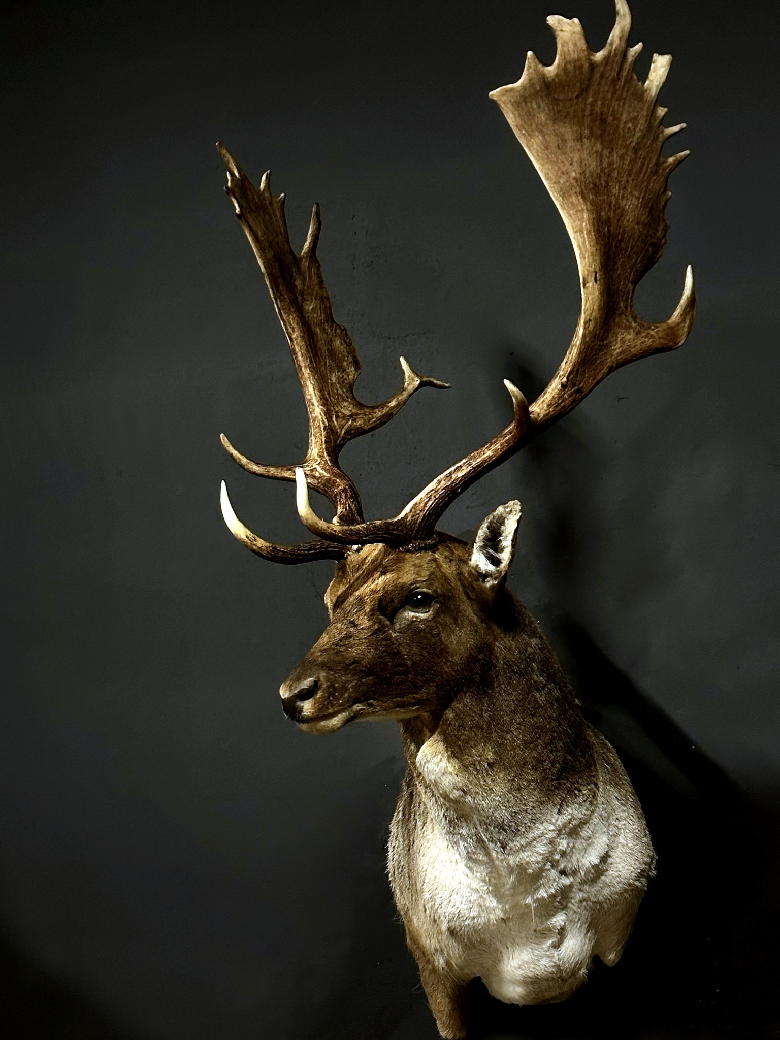 New stuffed head of a fallow deer. This beautiful fallow deer is mounted in pose where the capital antlers are nicely visible. A real asset to your interior.