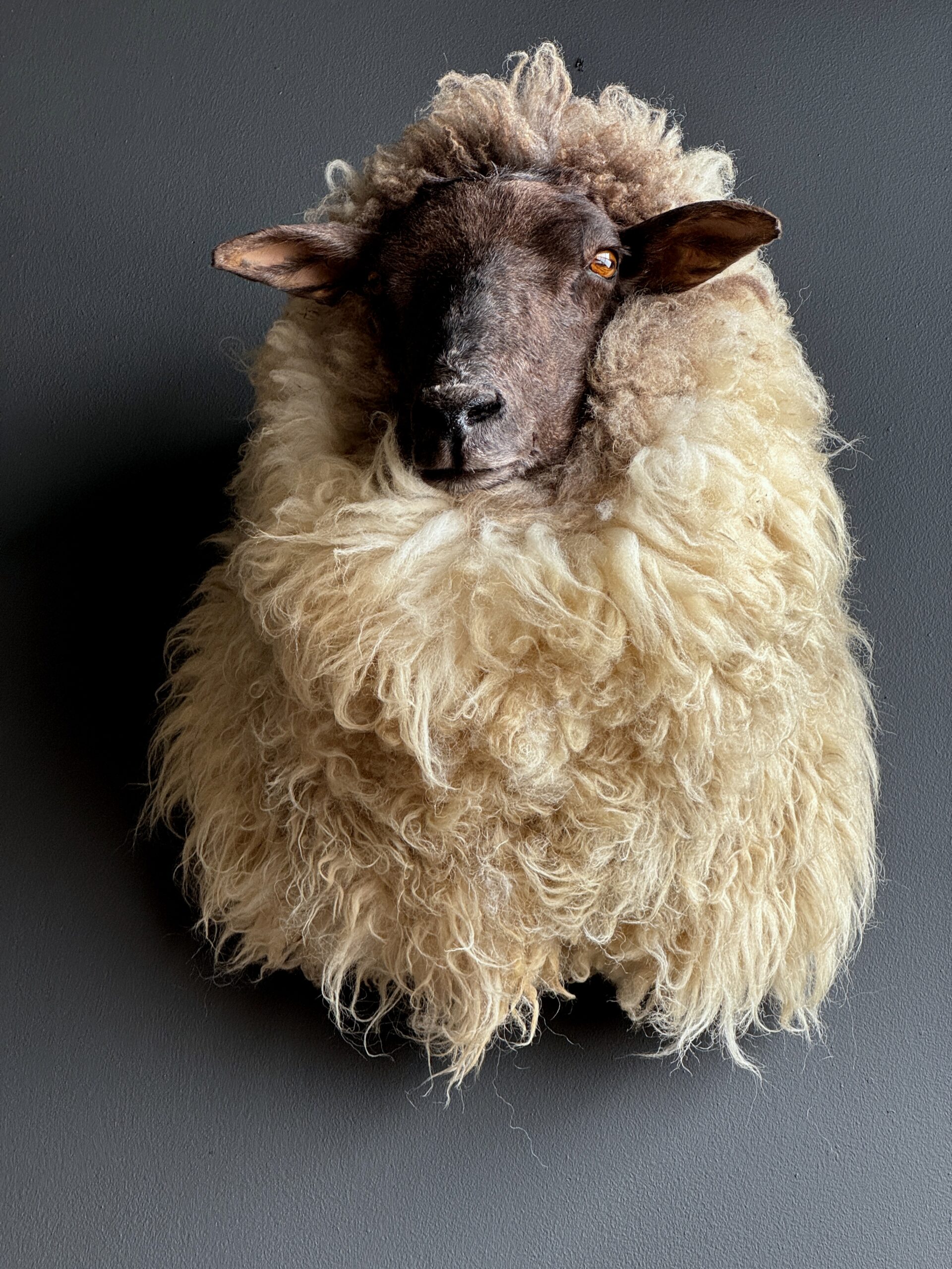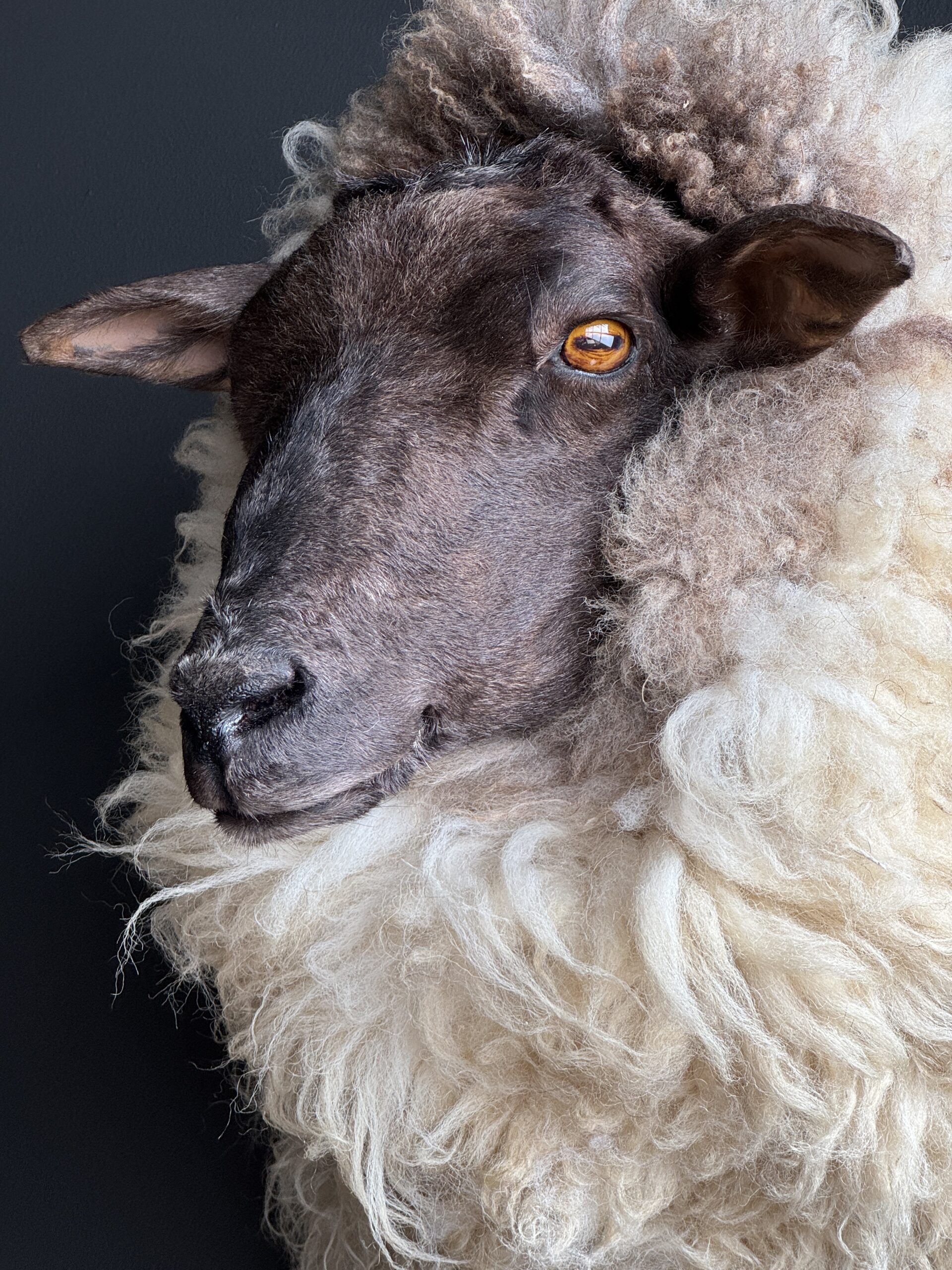 Beautifully true-to-nature stuffed head of a Schoonebeeker sheep. The Schoonebeeker sheep (also known simply as Schoonebeeker) is a breed of sheep whose name refers to the town of Schoonebeek where it was reared.