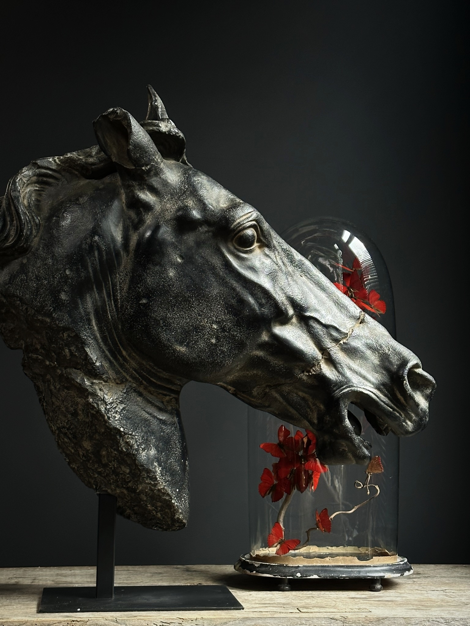 Selene Horse Head. This horse head is originally from a fresco decorating the pediment, taken from the Acropole. The scene depicts the birth of Athena, with the entire army of Zeus rising. All the gods were present, the chariot of the sun, Helios rising from the ocean marking the arrival of daylight, and the chariot of the moon Selena, drawn by horses, diving into the ocean. This head is kept in the London Museum.