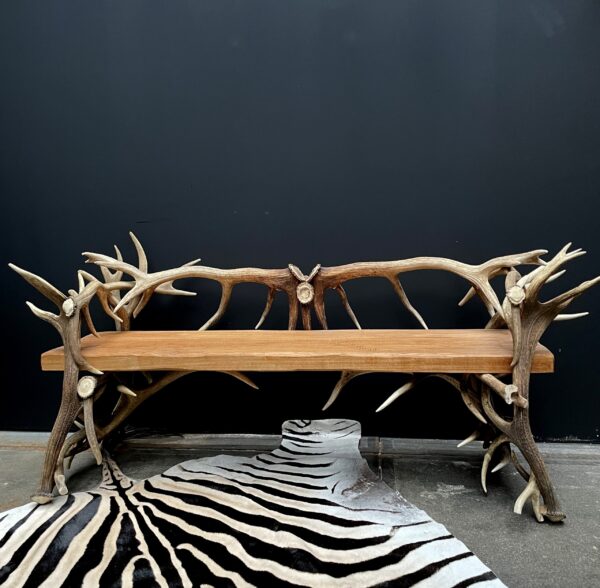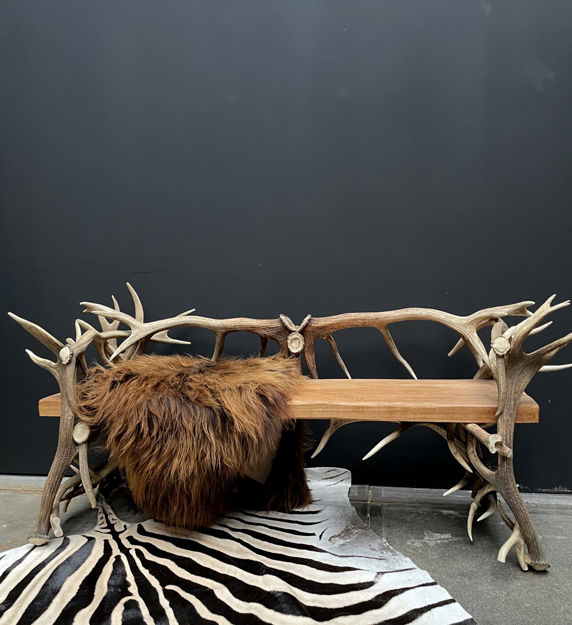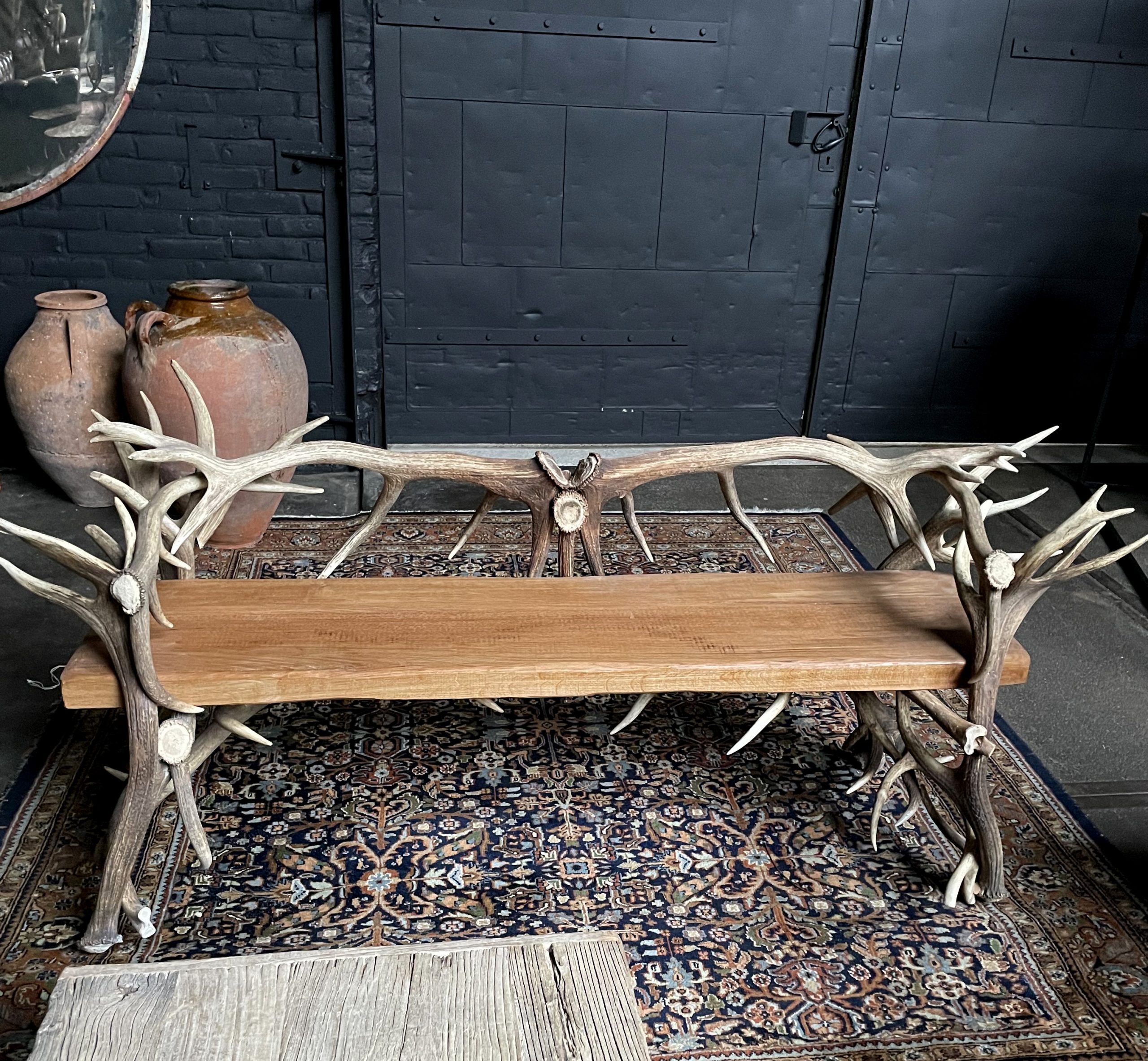 Special robust antler bench made of red deer antlers and oak wood. We can make these antler benches in any size.