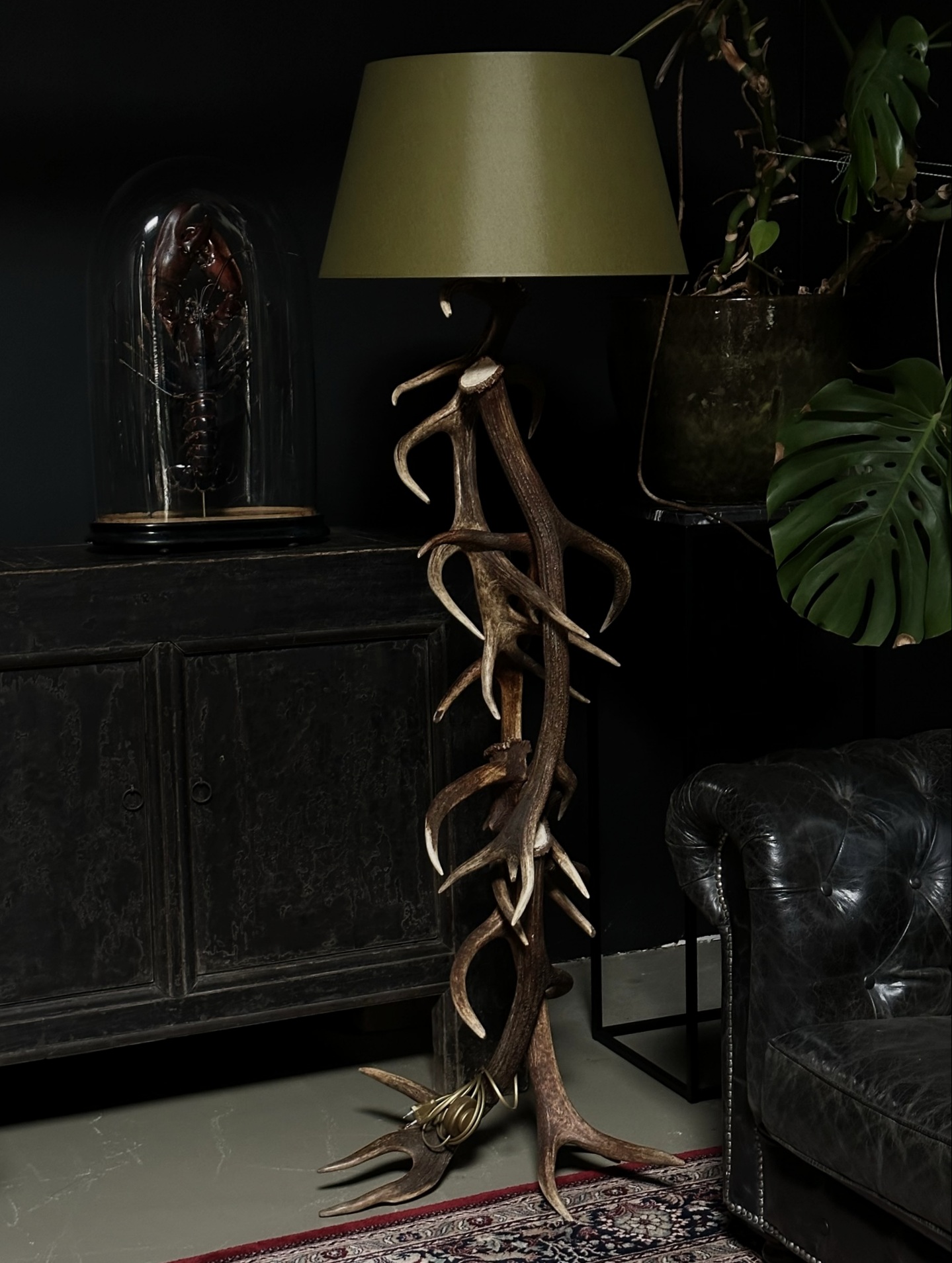 Standing antler lamp made of red deer antlers. The lamp comes without shade.