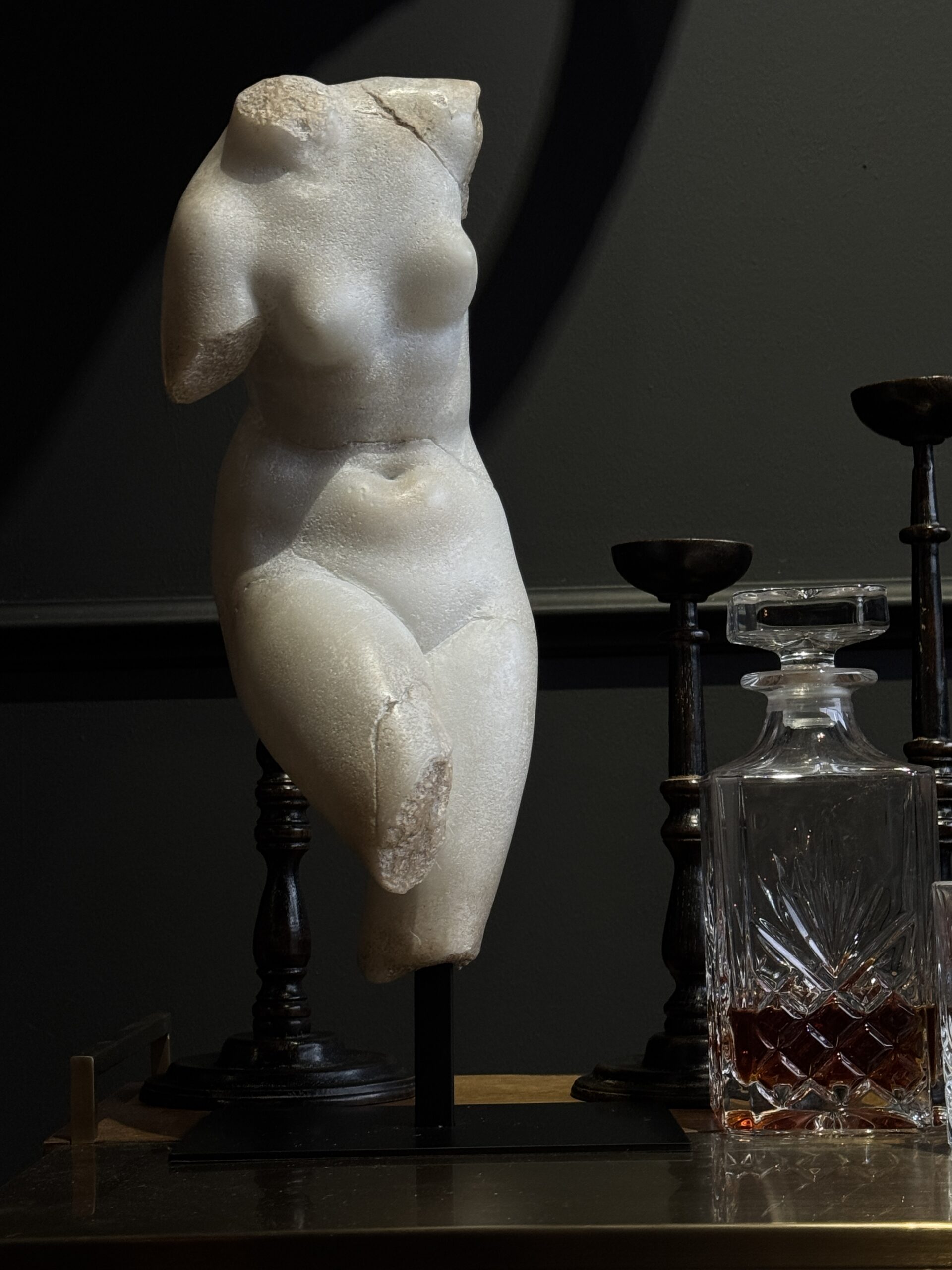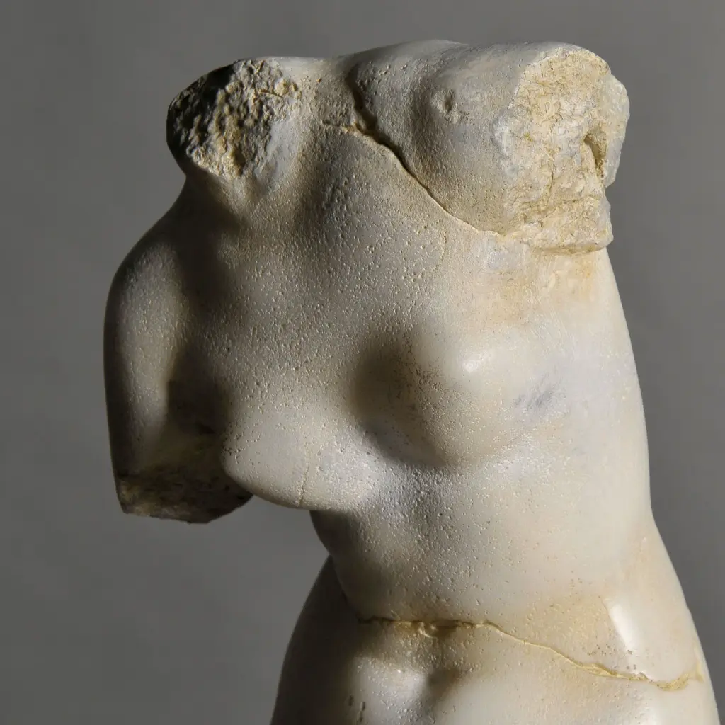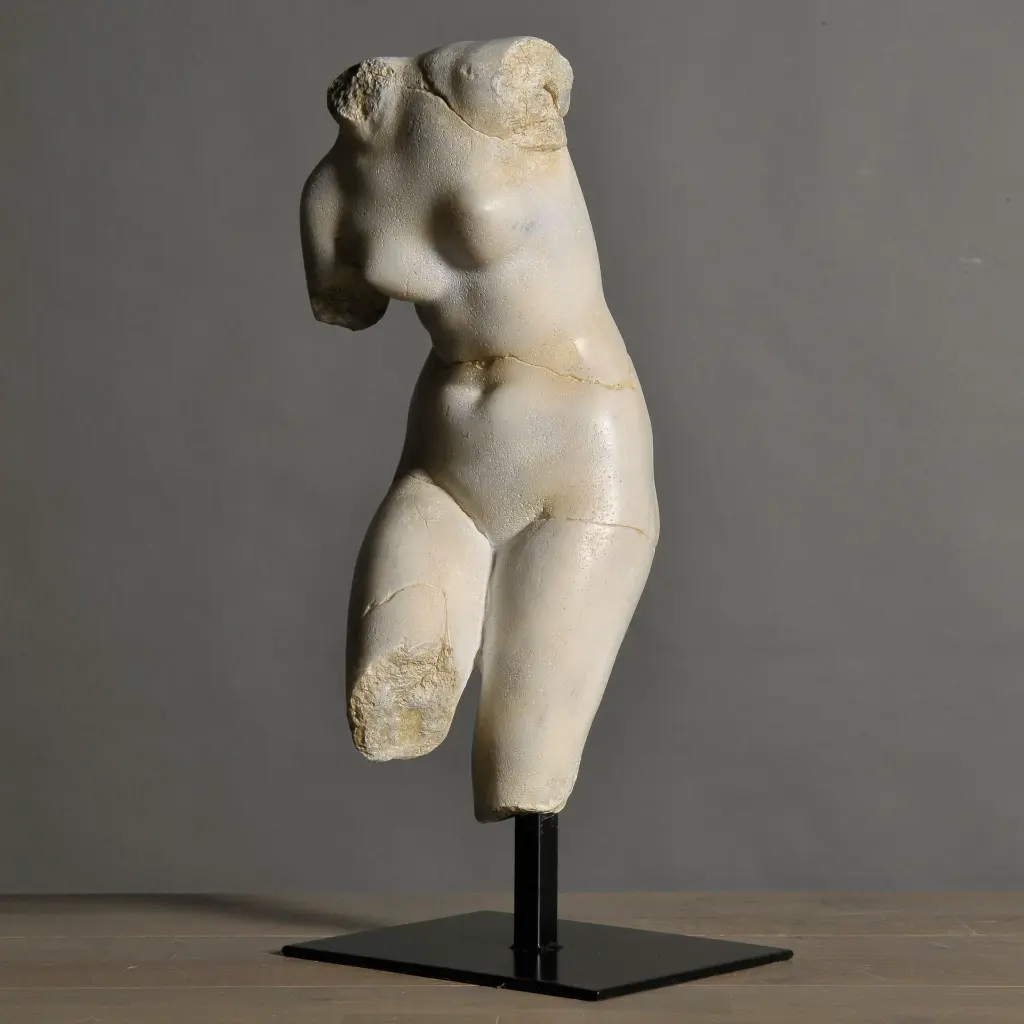 Venus is the Goddess of love, seduction, and beauty in Roman mythology, the equivalent of the Greek goddess Aphrodite. The classical etymology of her name is the Latin verb "vincire" (tie, enchain), because she unites fire (masculine principle) with water (feminine principle), which brings about life. This vestige of a Roman statue perfectly illustrates the beauty canons of the time. Material: Marble composite