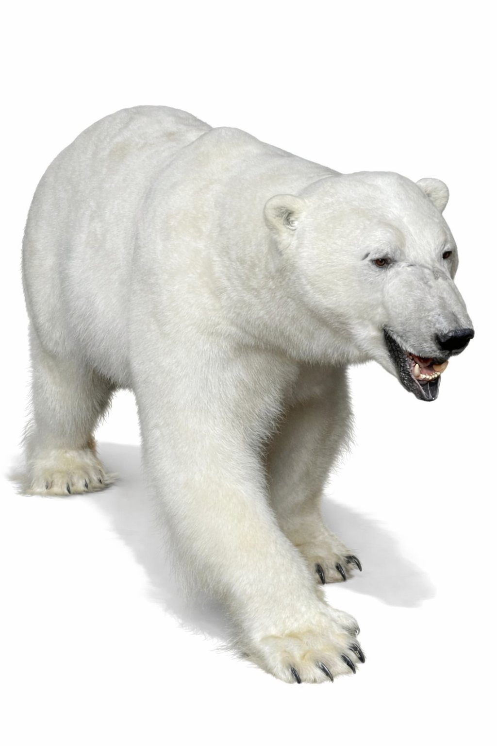 Recently stuffed very large polar bear in running pose. It is a beautiful specimen and prepared with great attention to detail which makes it lifelike.