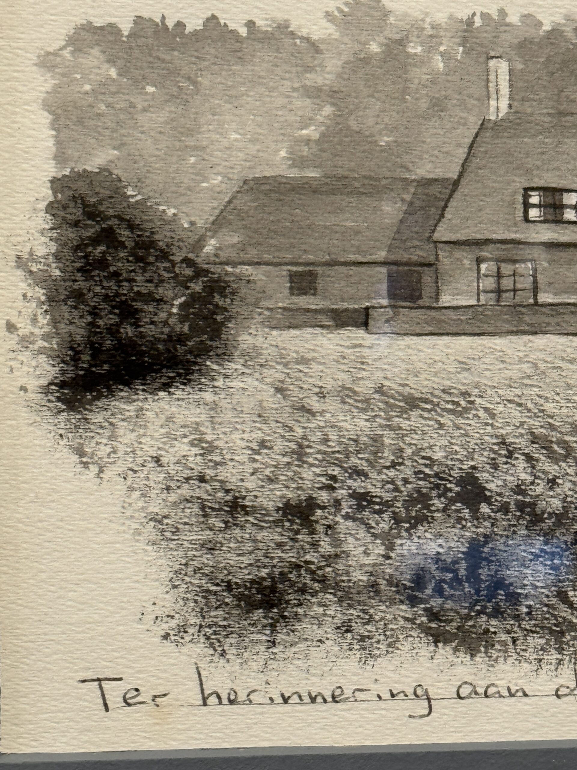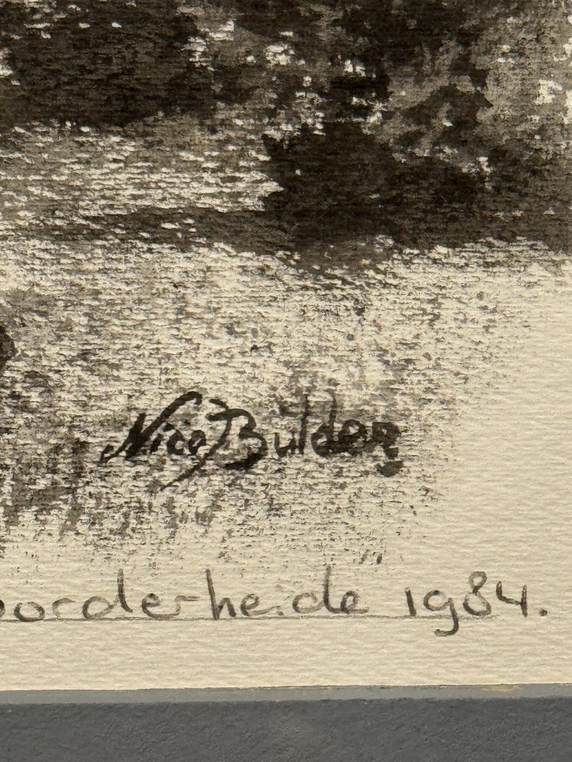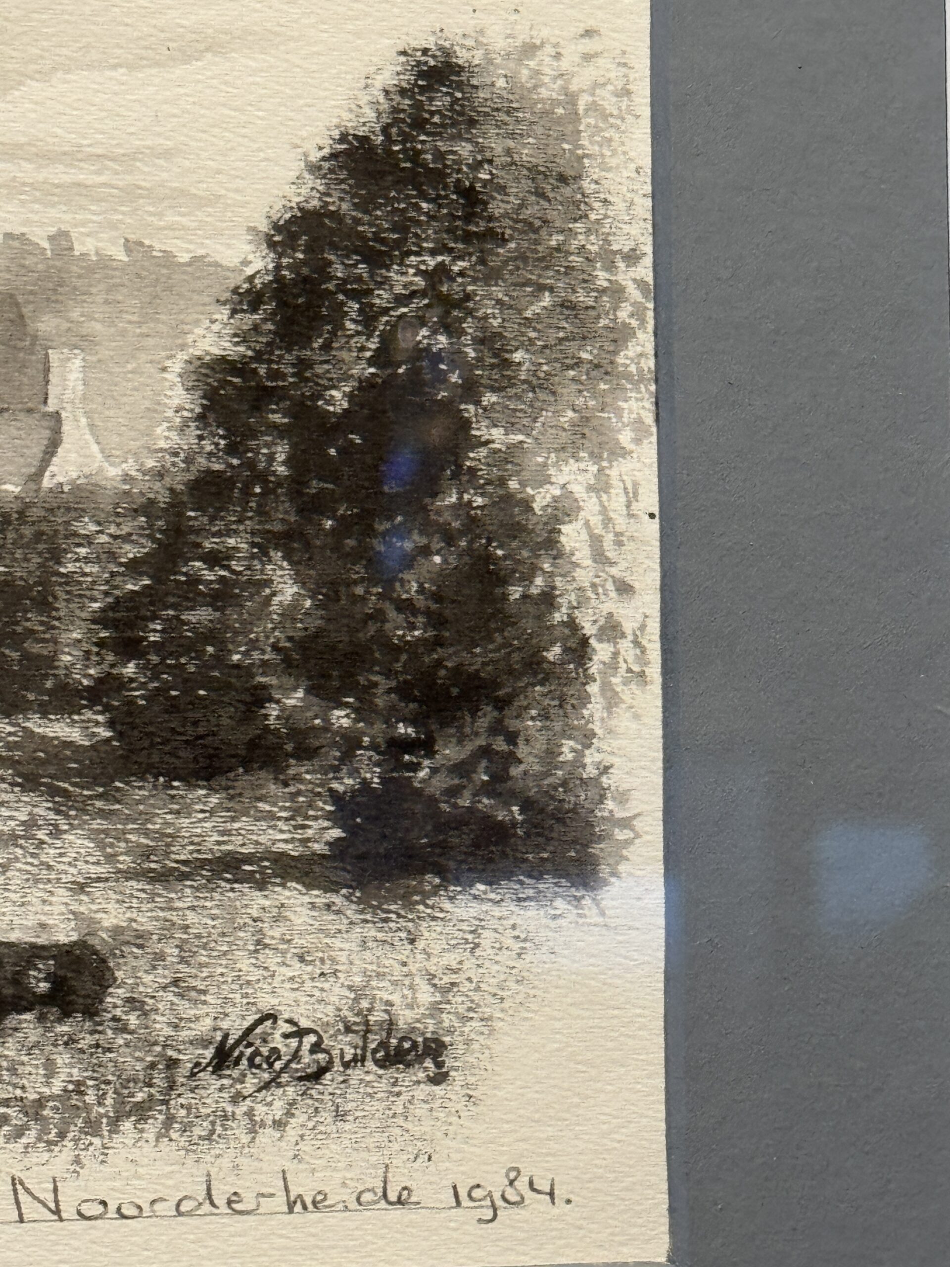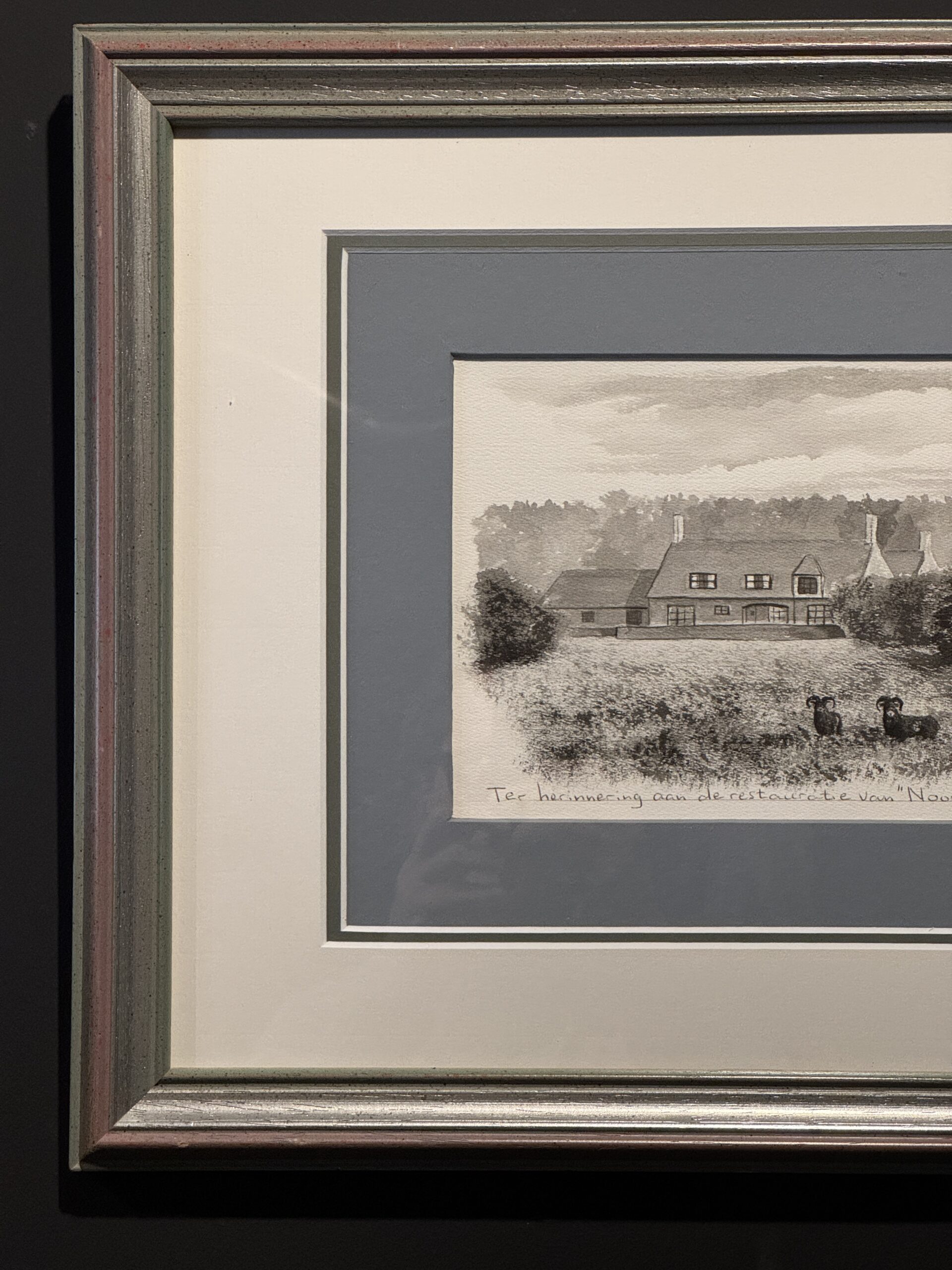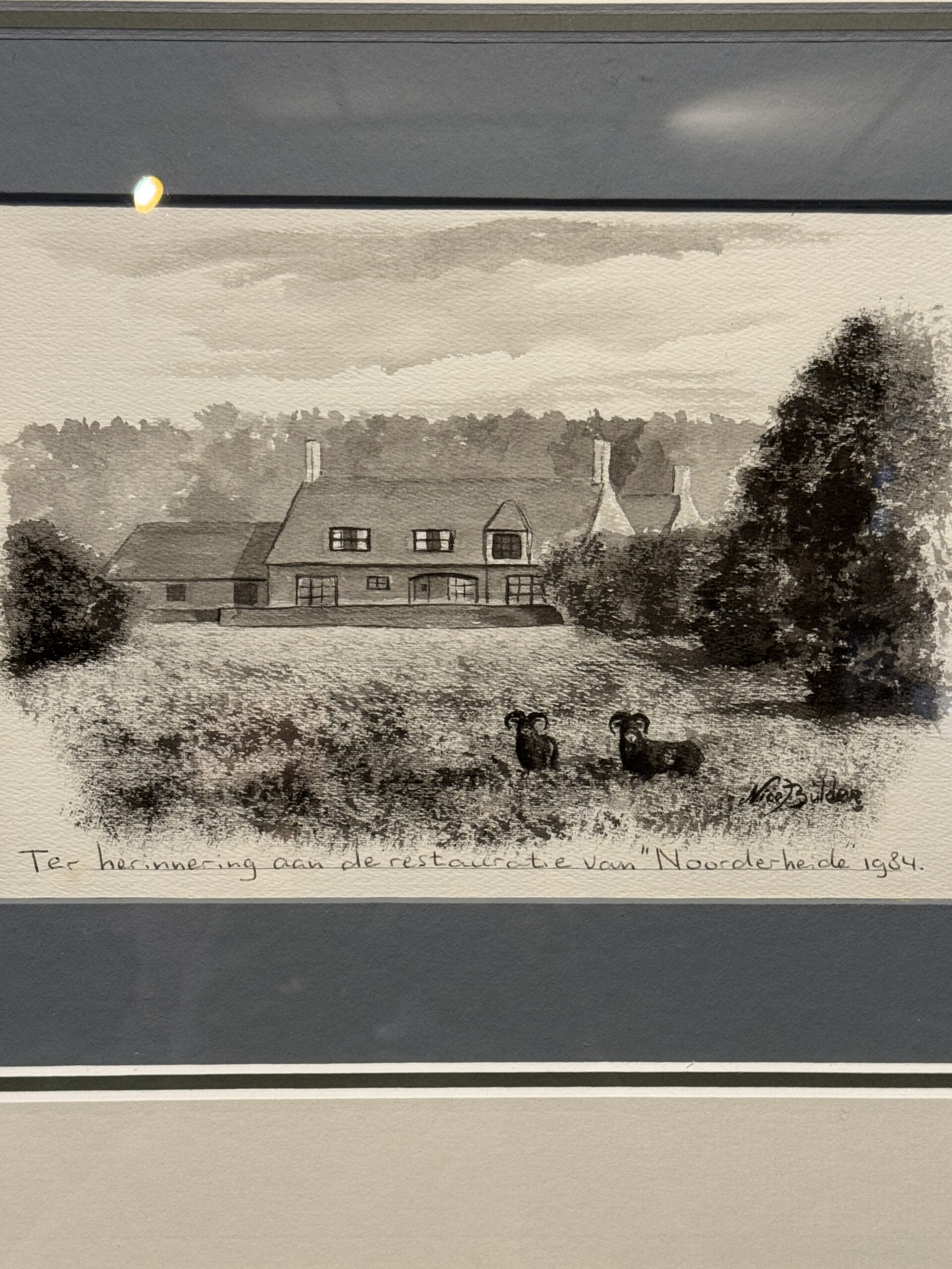 The drawing bears the inscription 'In memory of the restoration of "Noorderheide" 1984'.
