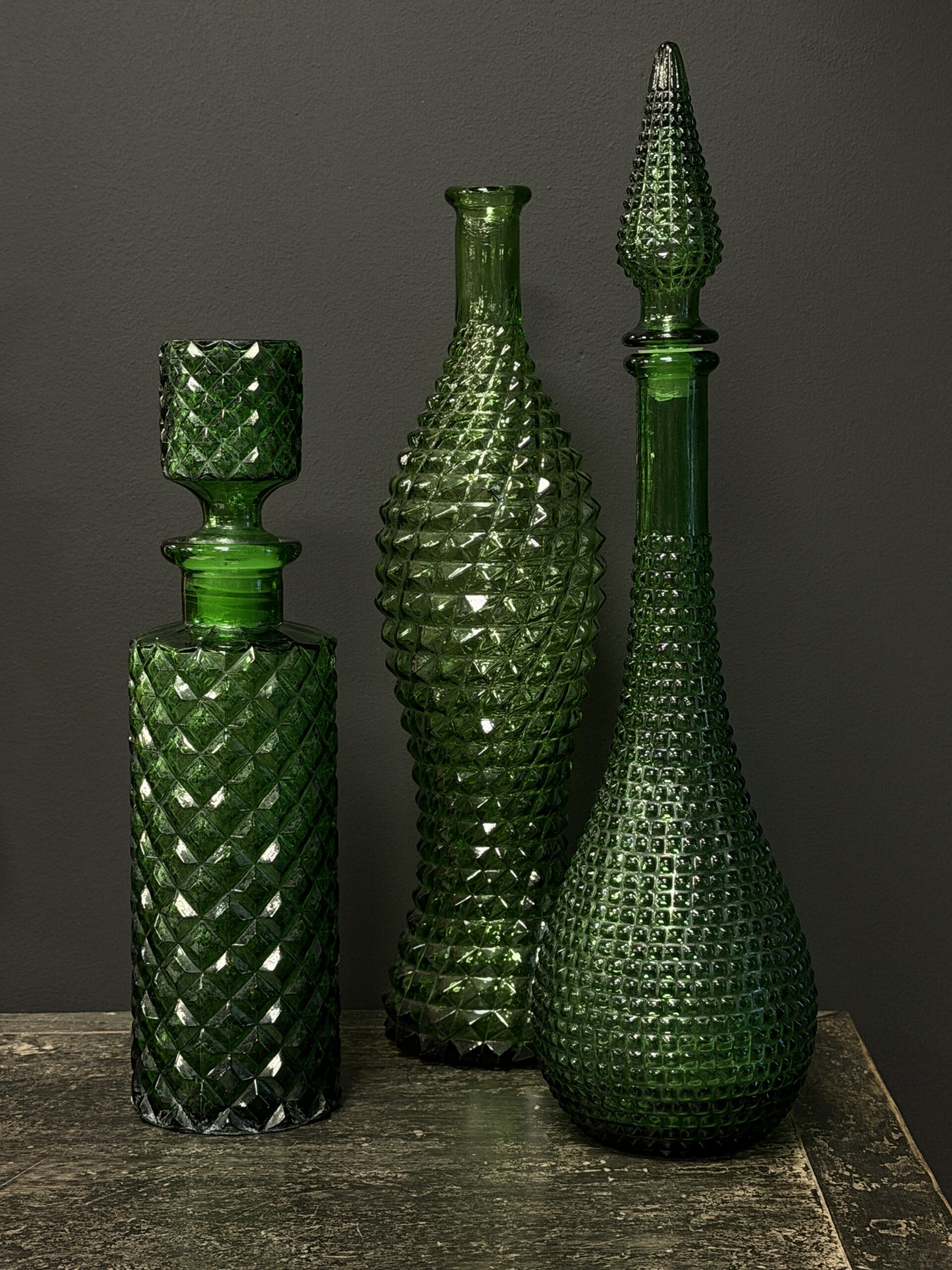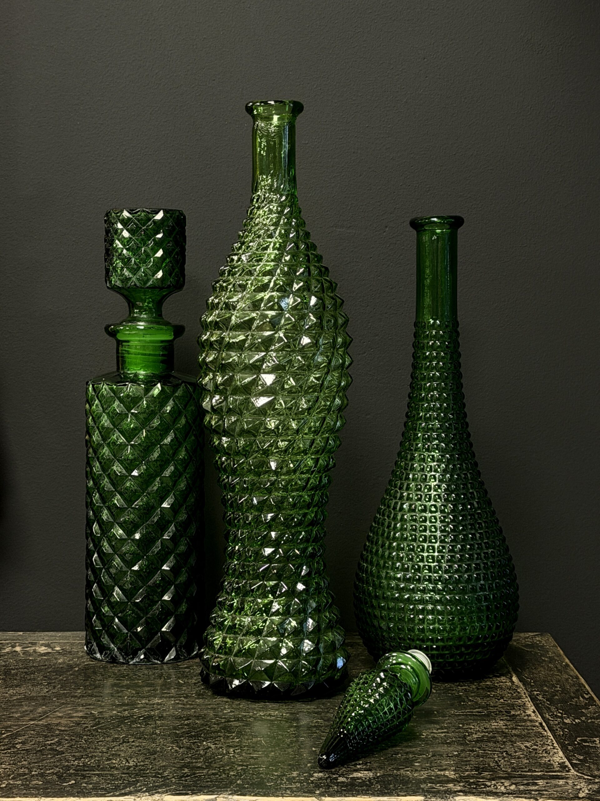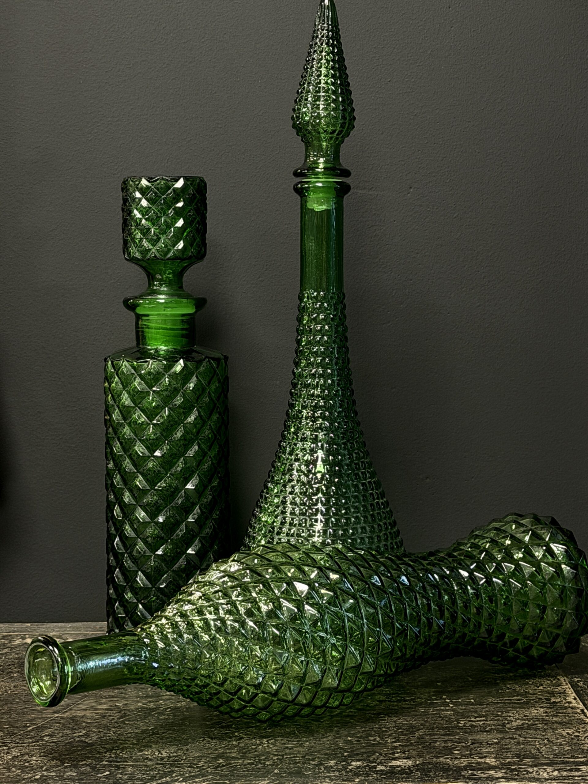 Prachtige set van 3 oude Empoli karaffen.