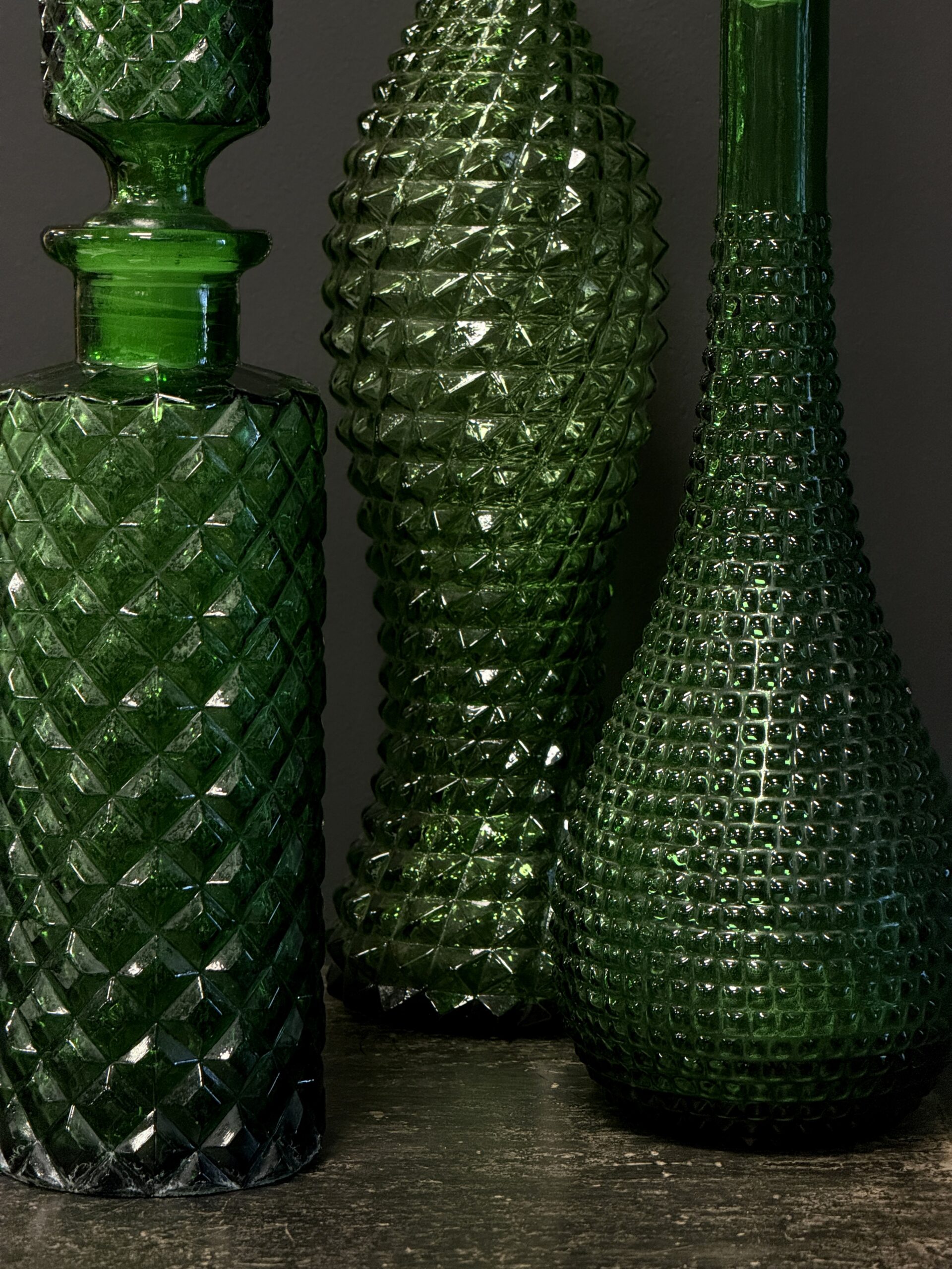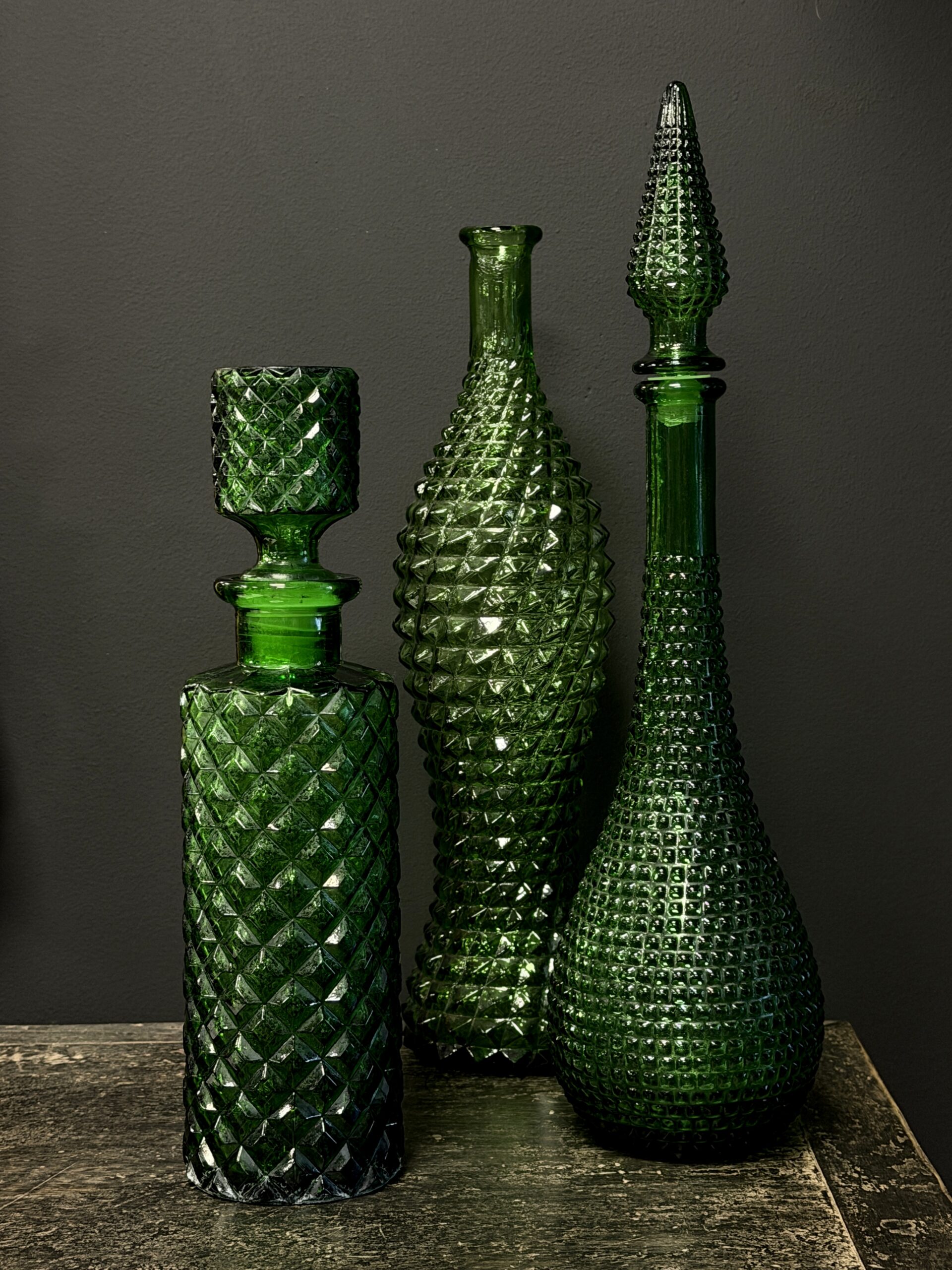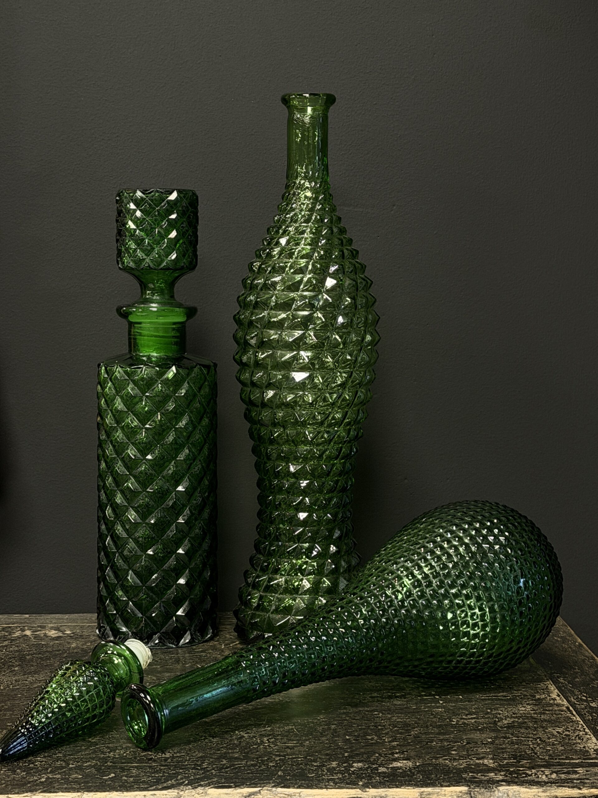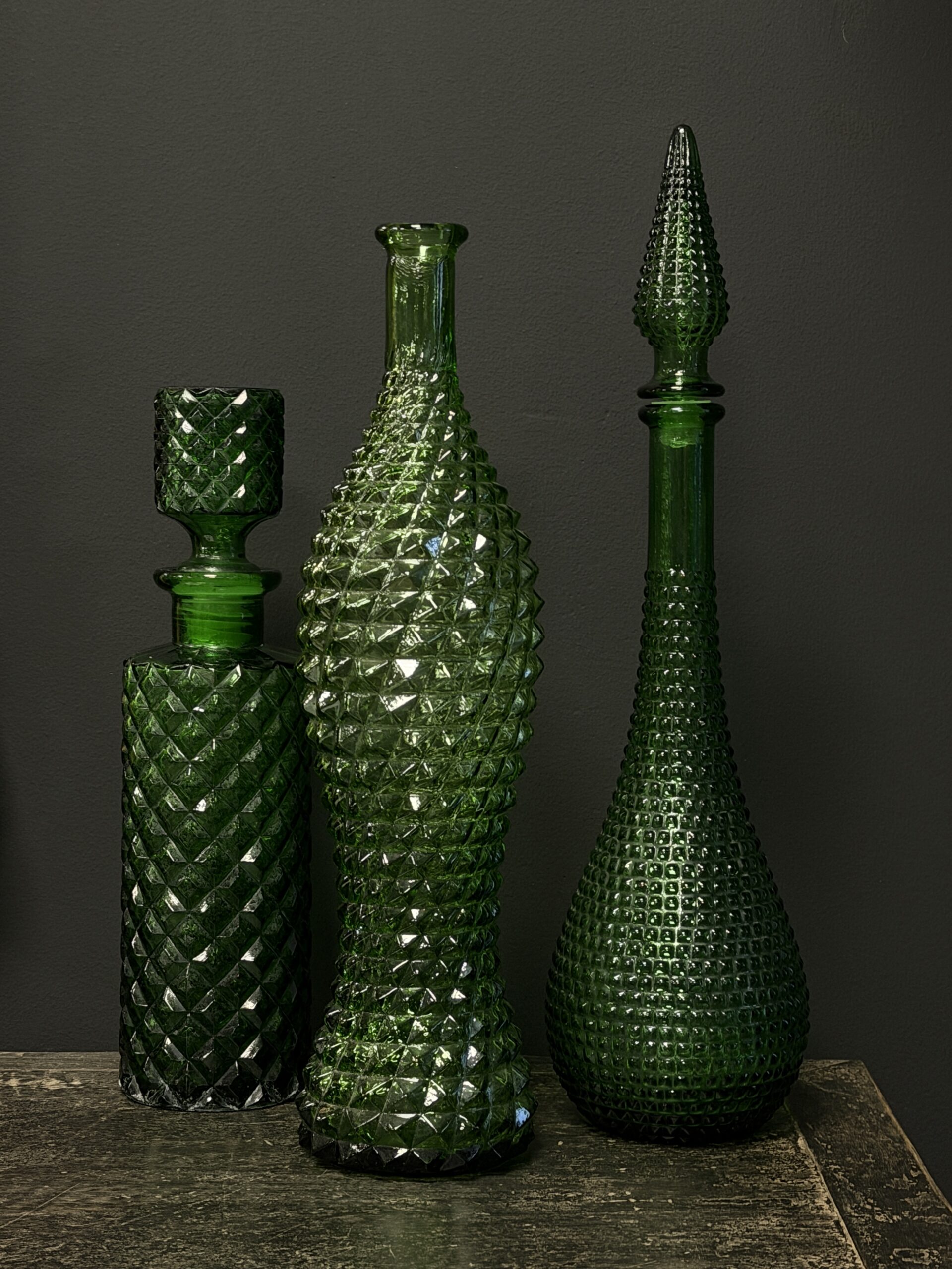 Prachtige set van 3 oude Empoli karaffen.