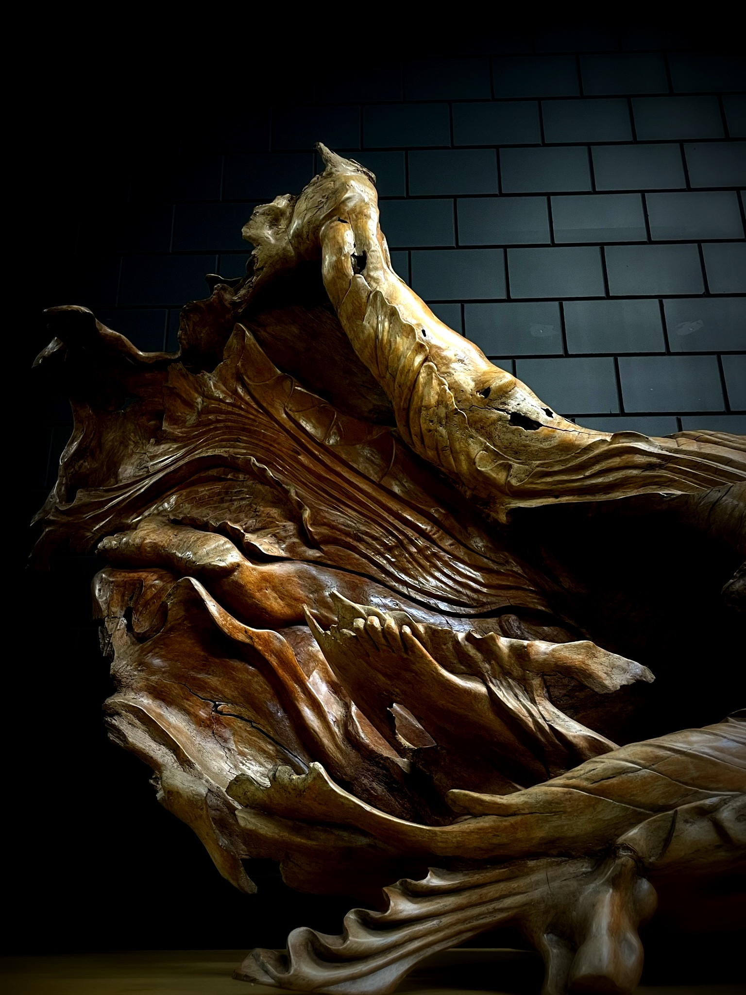 Dit beeld is gemaakt in Indonesië in de eerste periode van 1900. Het is gemaakt uit een stuk drijfhout uit de mangrove van Kubutambahan op Bali. Het beeld is gemonteerd op een zwarte houten console met wieltjes.