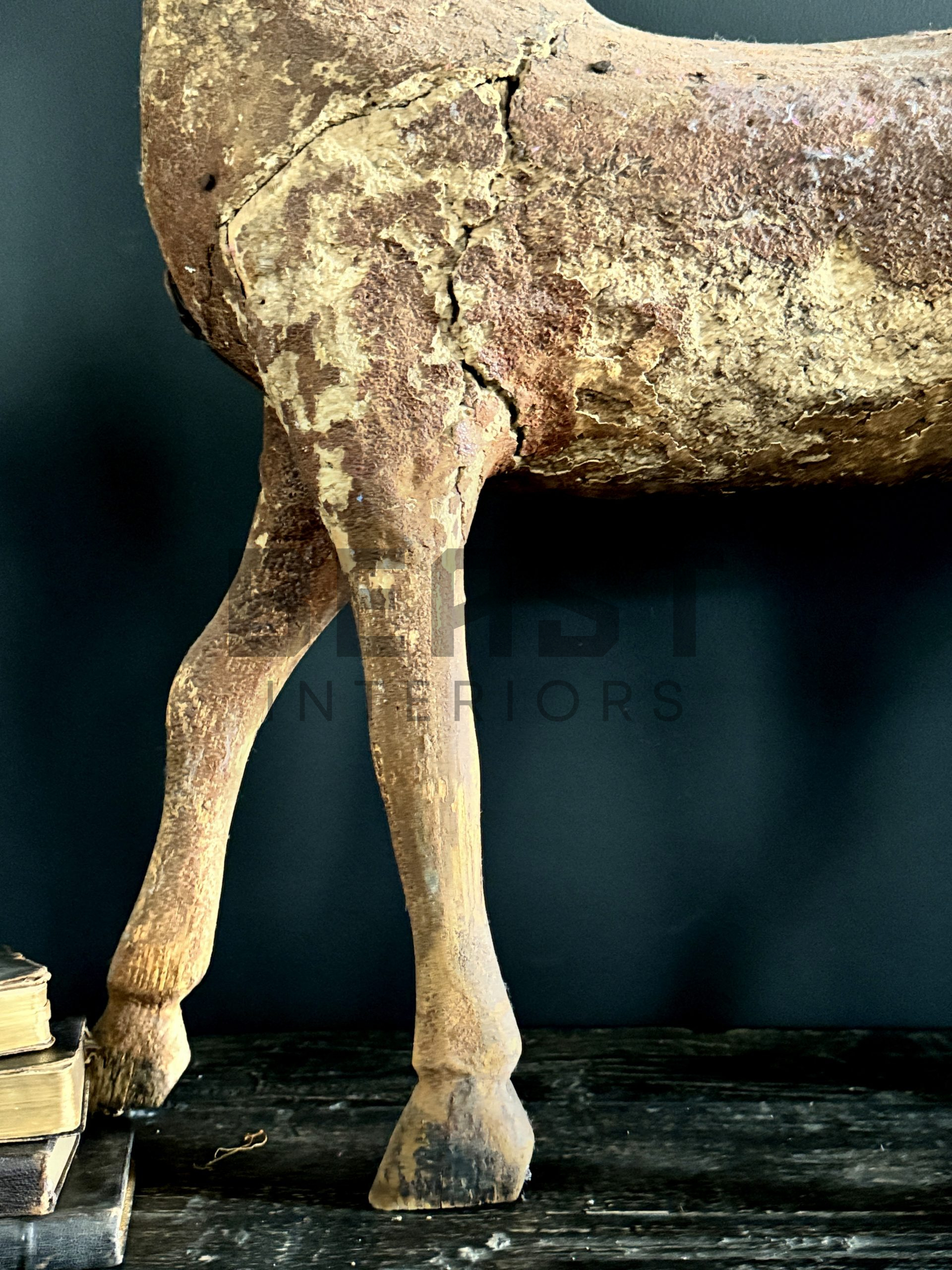 Antiek zeer decoratief speelgoed paard gemaakt van hout en plaster. Het paard heeft een prachtige uitstraling en door zijn geleefd uiterlijk is het een fantastisch mooi object.