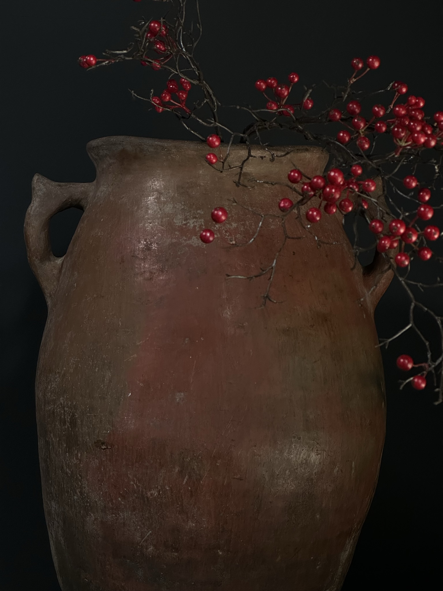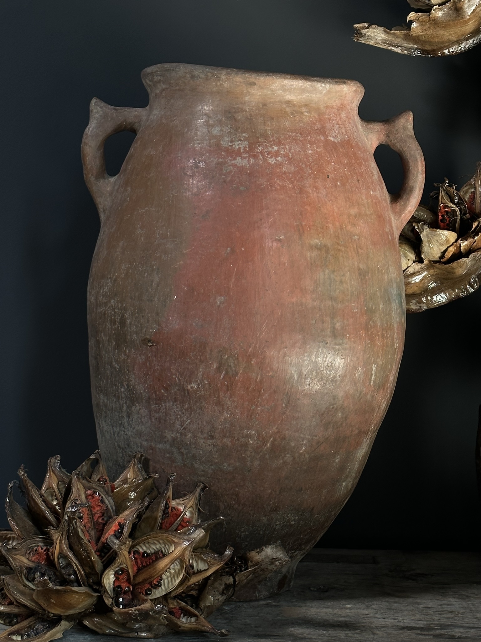 Deze geïmporteerde olijfoliekruiken hebben vele levens geleefd en zullen natuurlijke variaties in kleur, textuur en grootte hebben. Omdat deze handgemaakte kruiken uit het verleden stammen, kun je een uniek en tijdloos stuk verwachten.