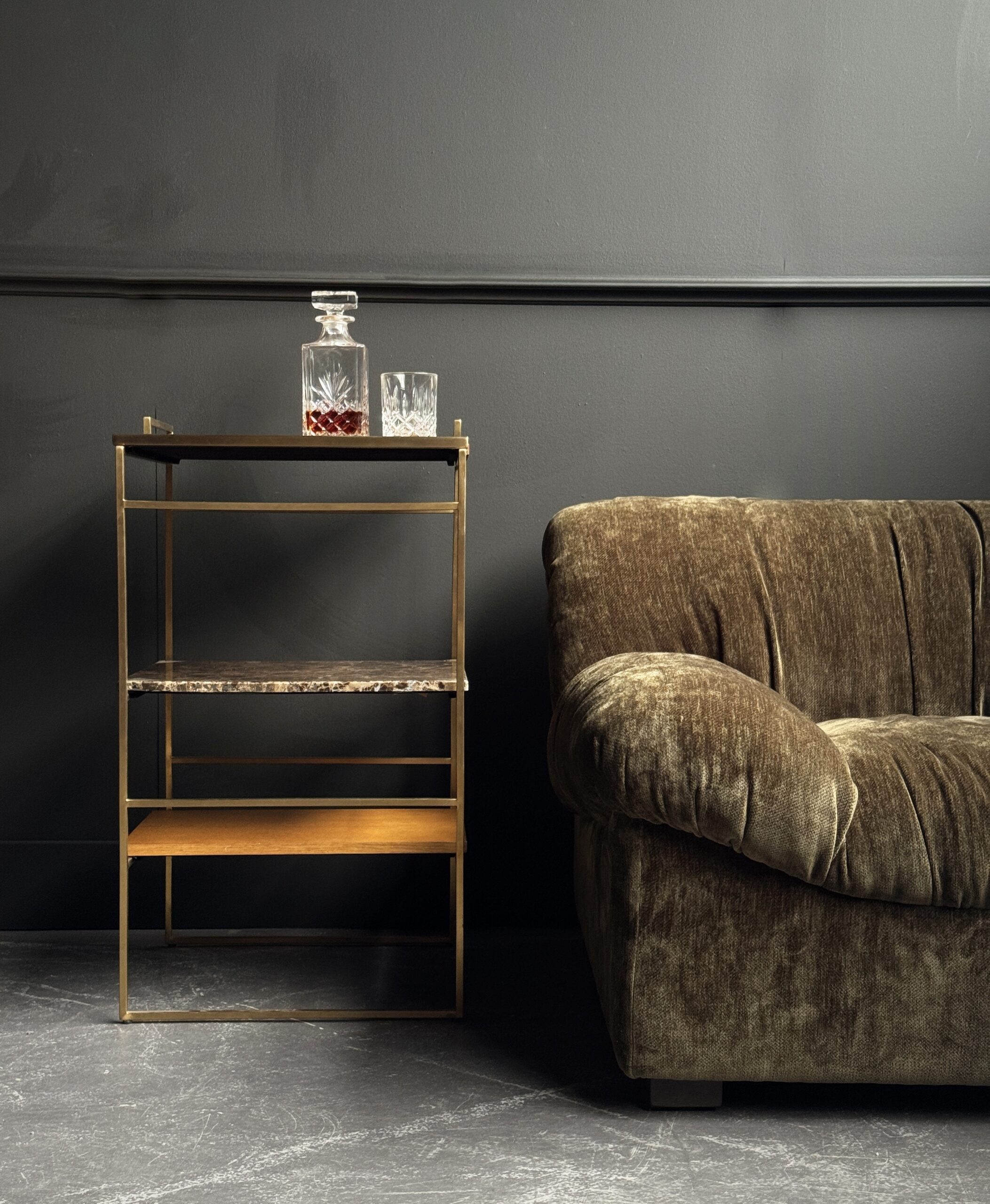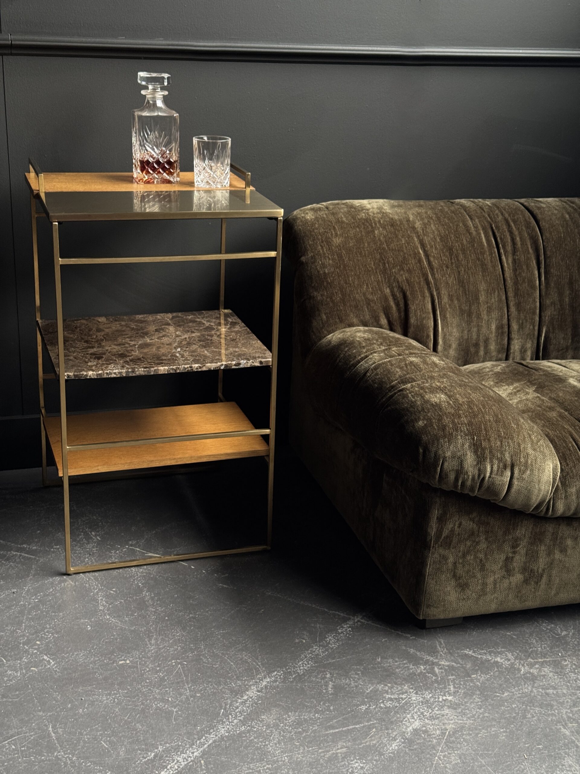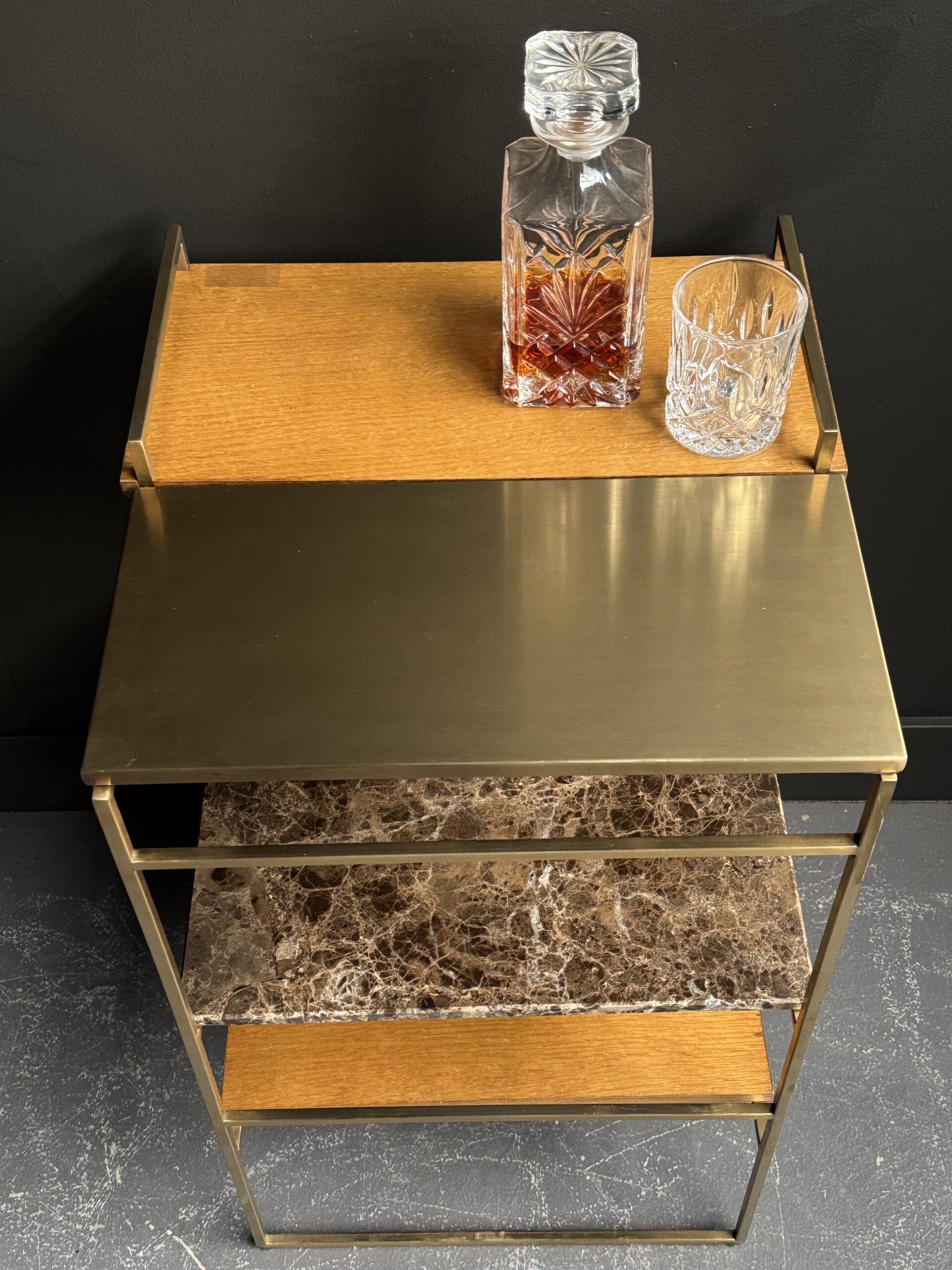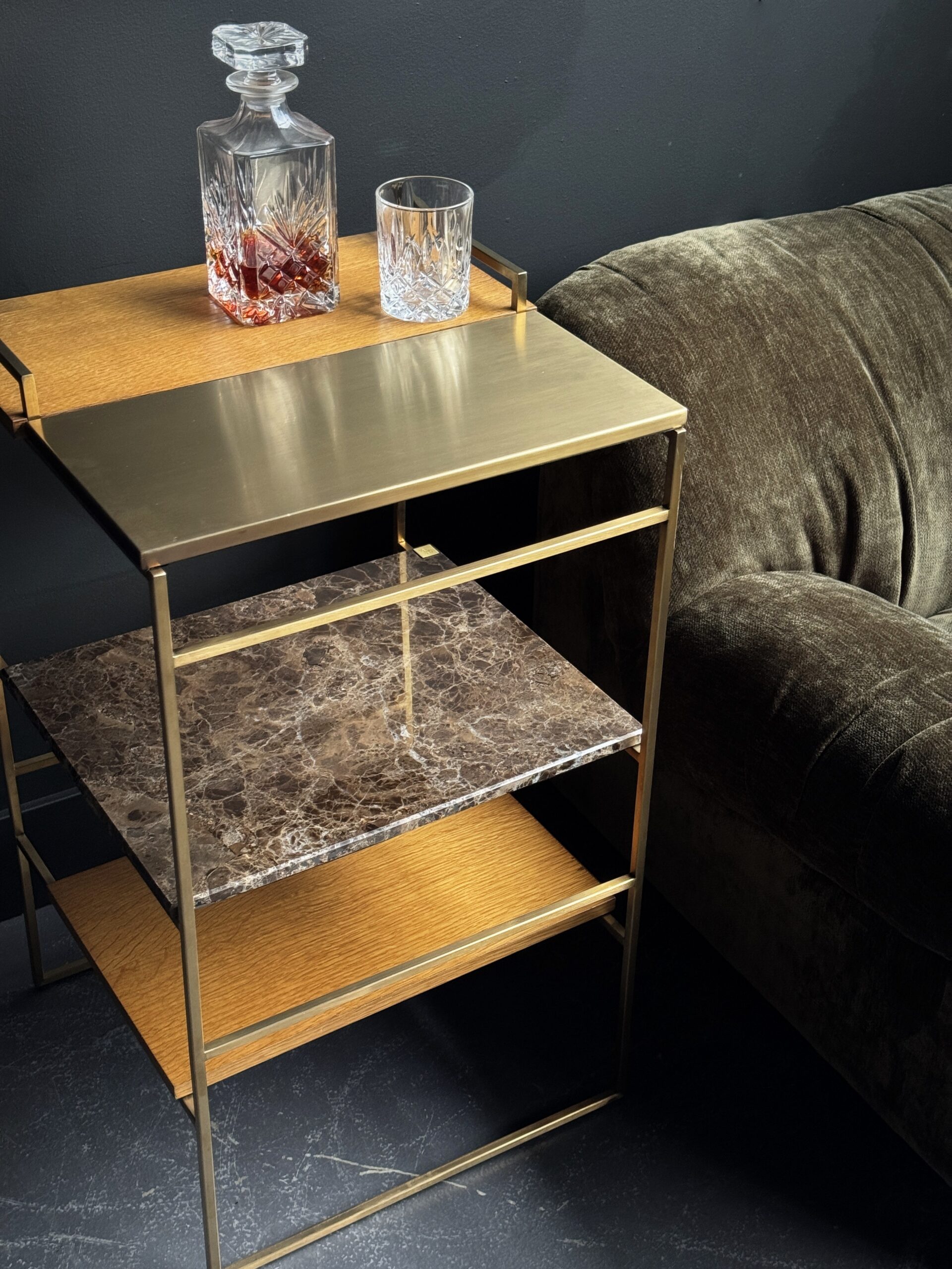 Naast de brushed gold uitvoering is deze tafel ook verkrijgbaar in zwart, waardoor hij eenvoudig te combineren is met verschillende woonstijlen en kleurenpaletten. Ideaal als blikvanger naast een fauteuil of als stijlvolle aanvulling op een zithoek.