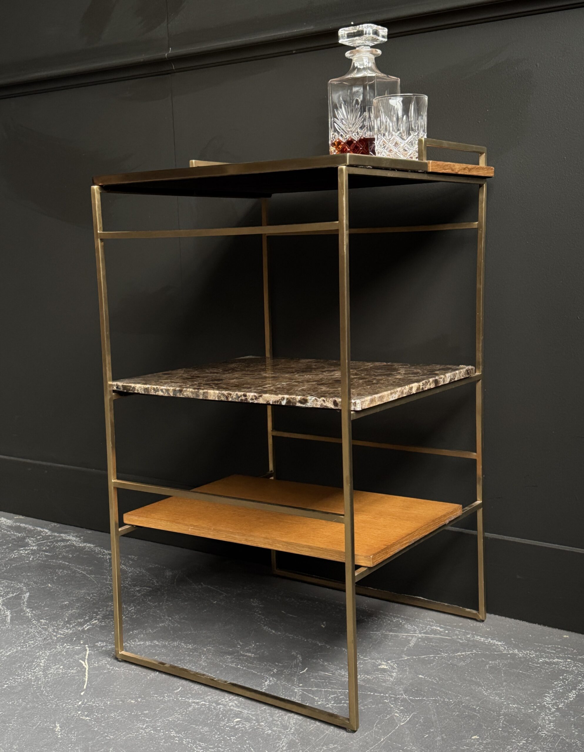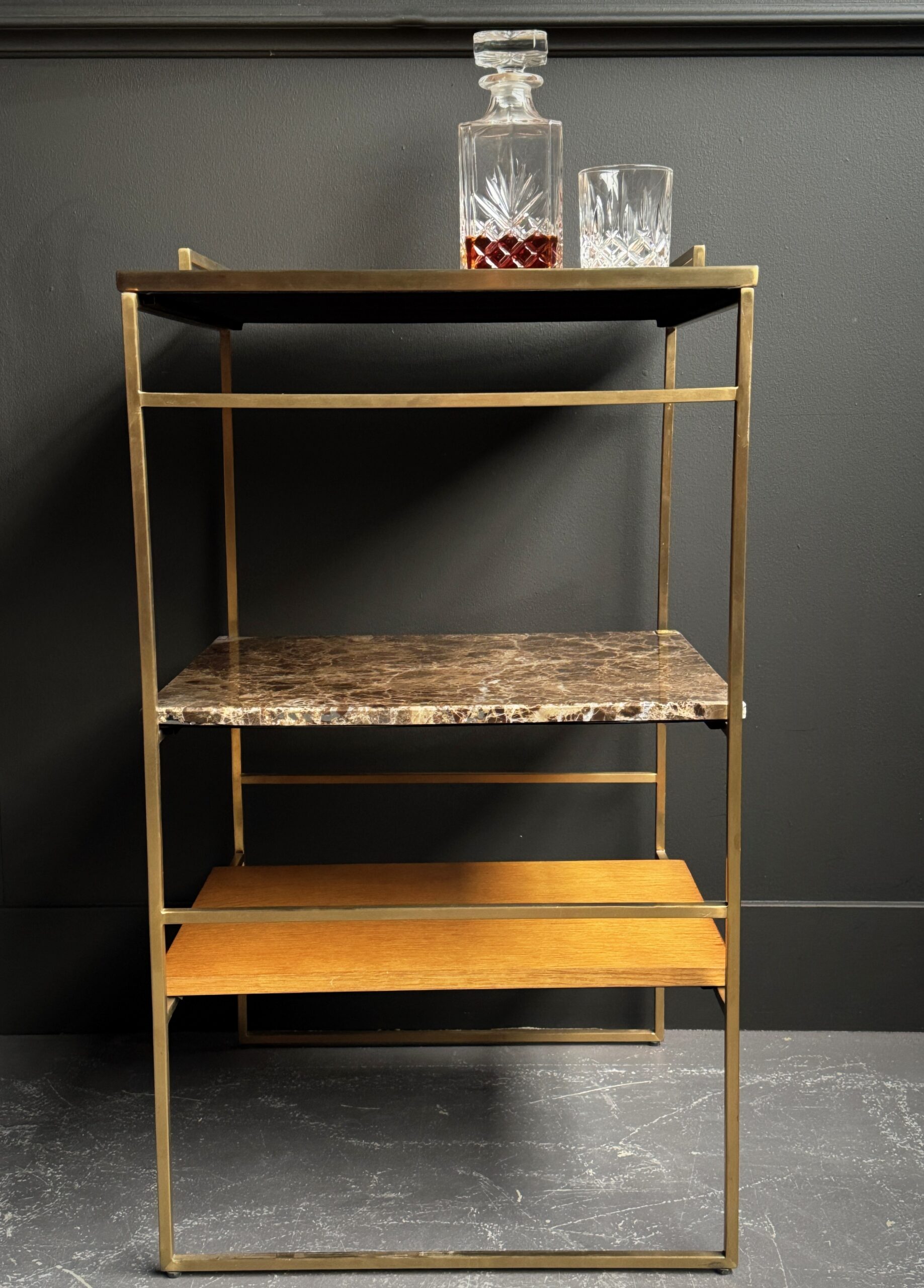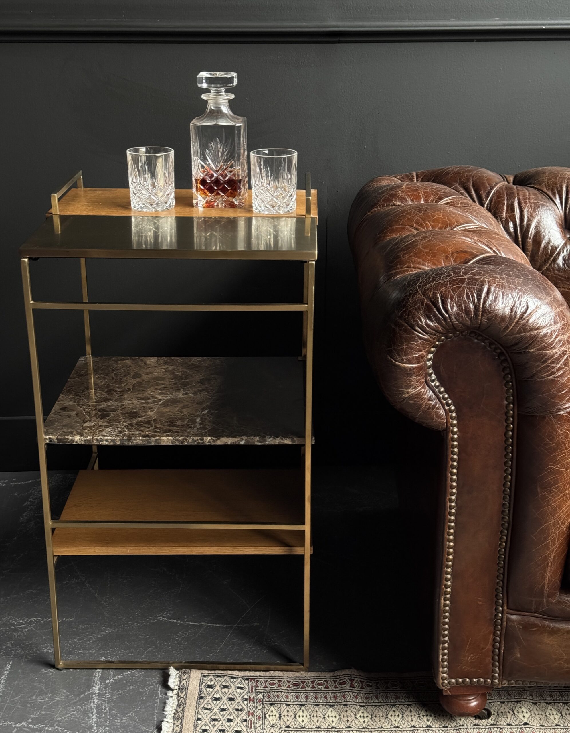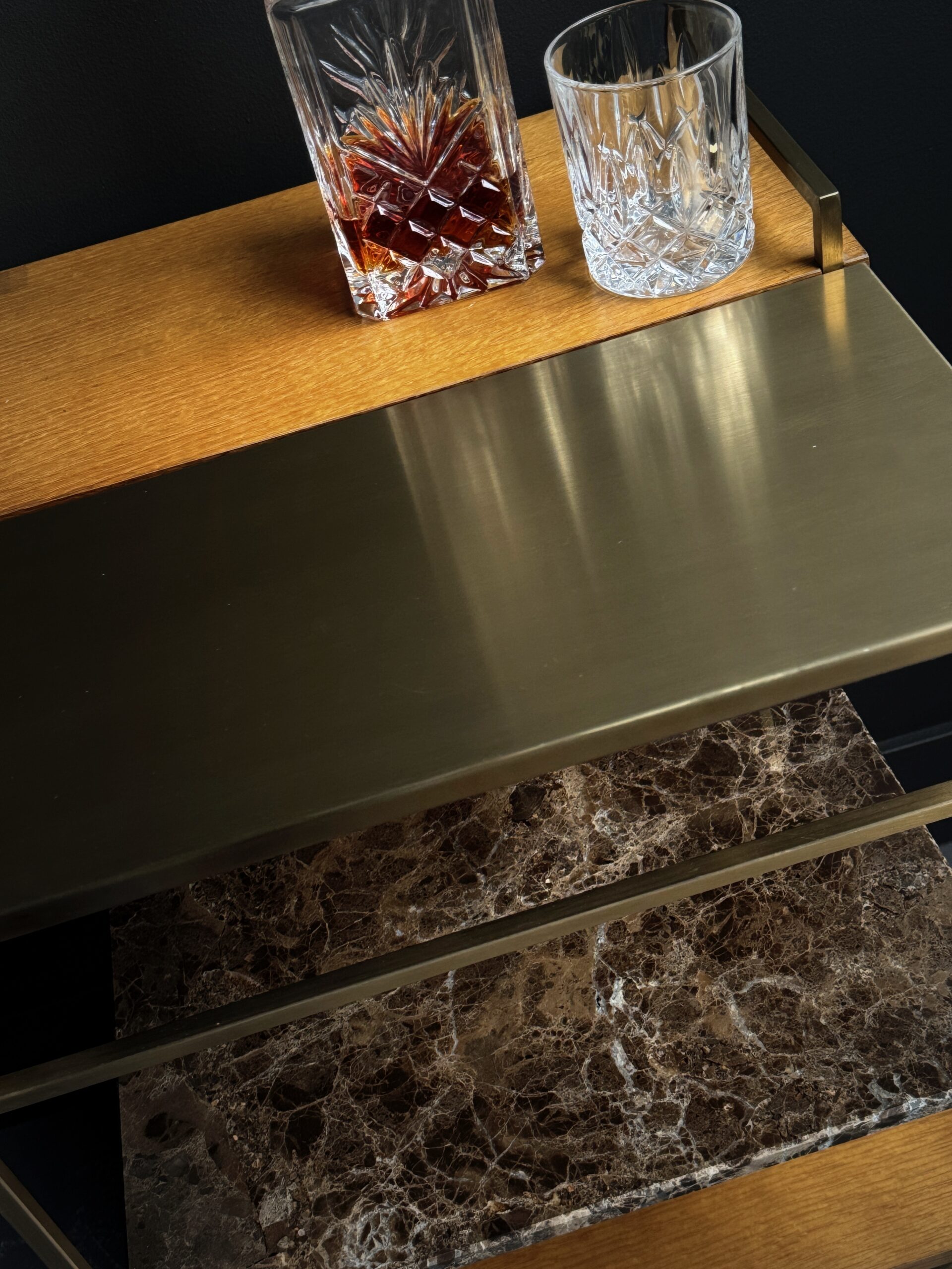 Naast de brushed gold uitvoering is deze tafel ook verkrijgbaar in zwart, waardoor hij eenvoudig te combineren is met verschillende woonstijlen en kleurenpaletten. Ideaal als blikvanger naast een fauteuil of als stijlvolle aanvulling op een zithoek.