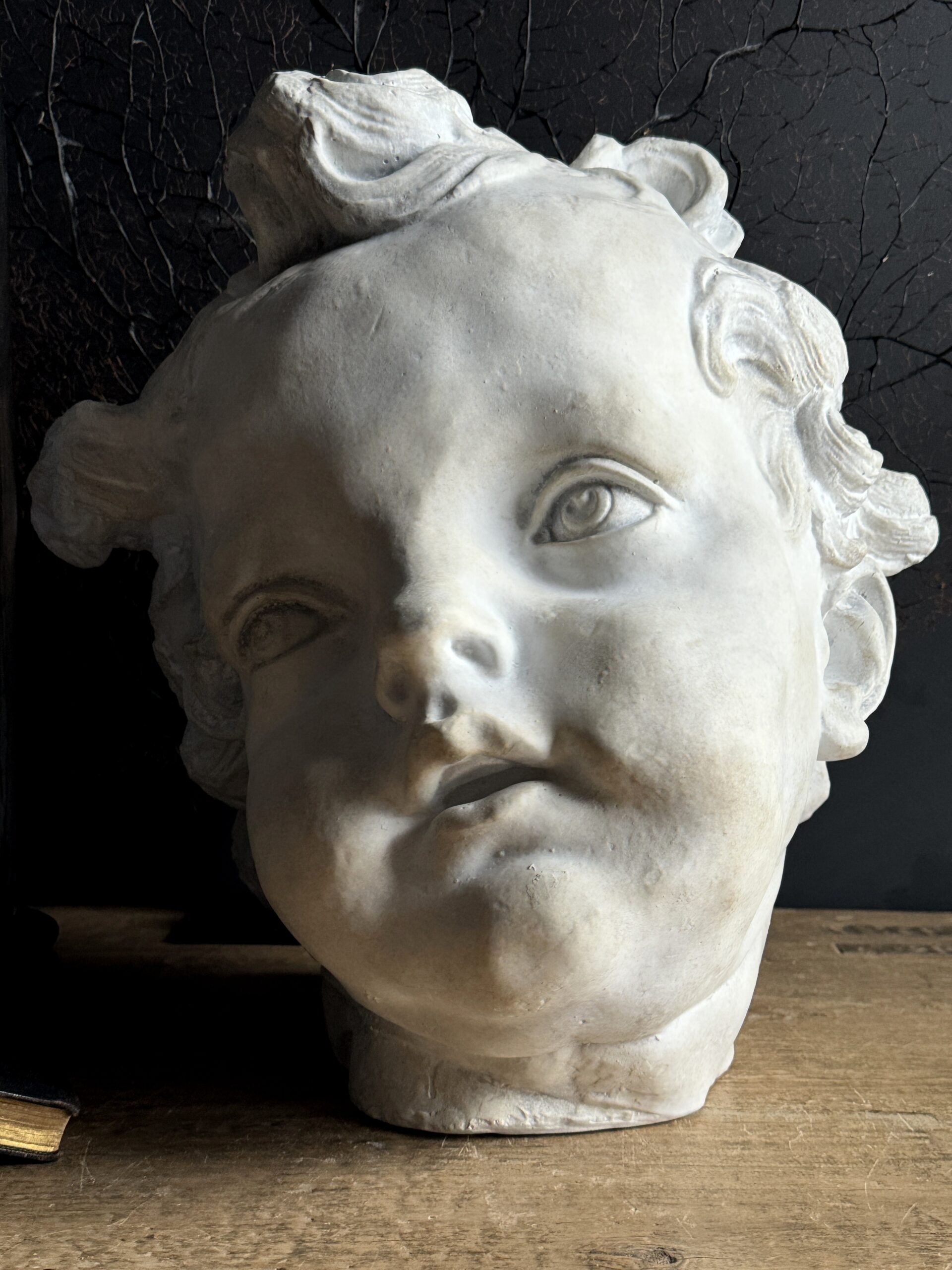 Reproductie van een cherubijnenkopje, ongetwijfeld gesneden door de kunstenaar Bernini. Het kan waarschijnlijk worden gevonden in de Sint-Pietersbasiliek in Rome, het Mekka van de kunst uit de barokperiode.