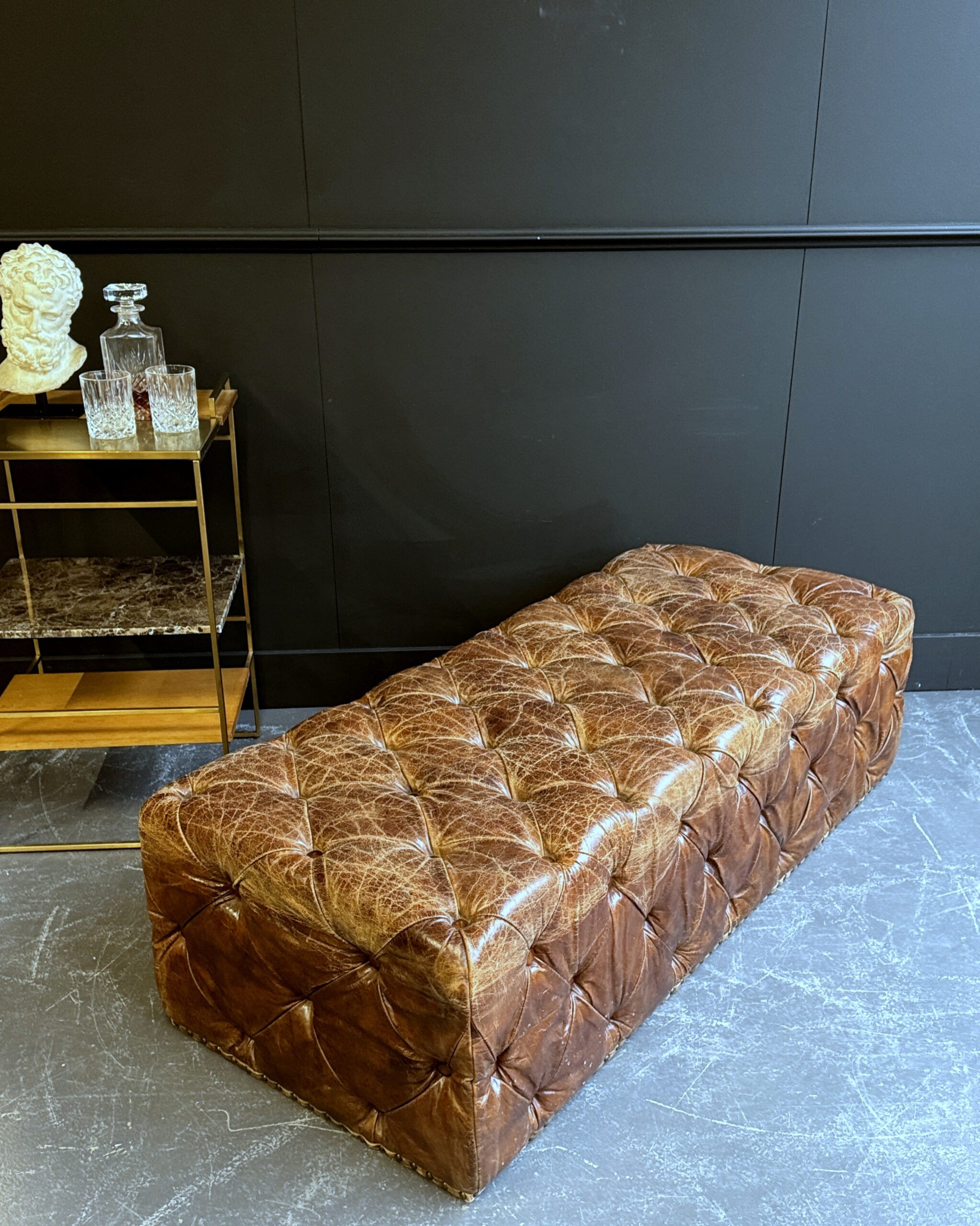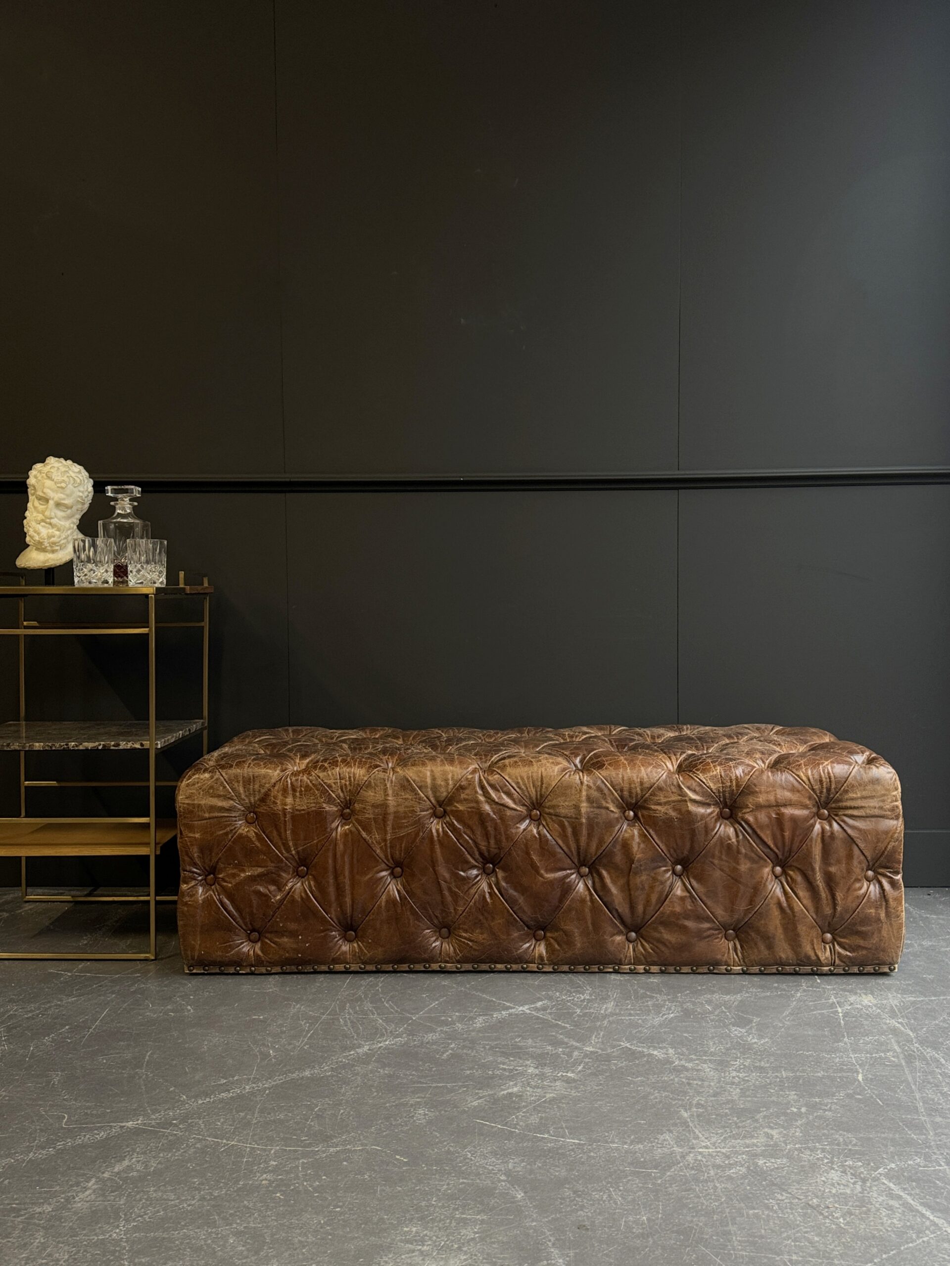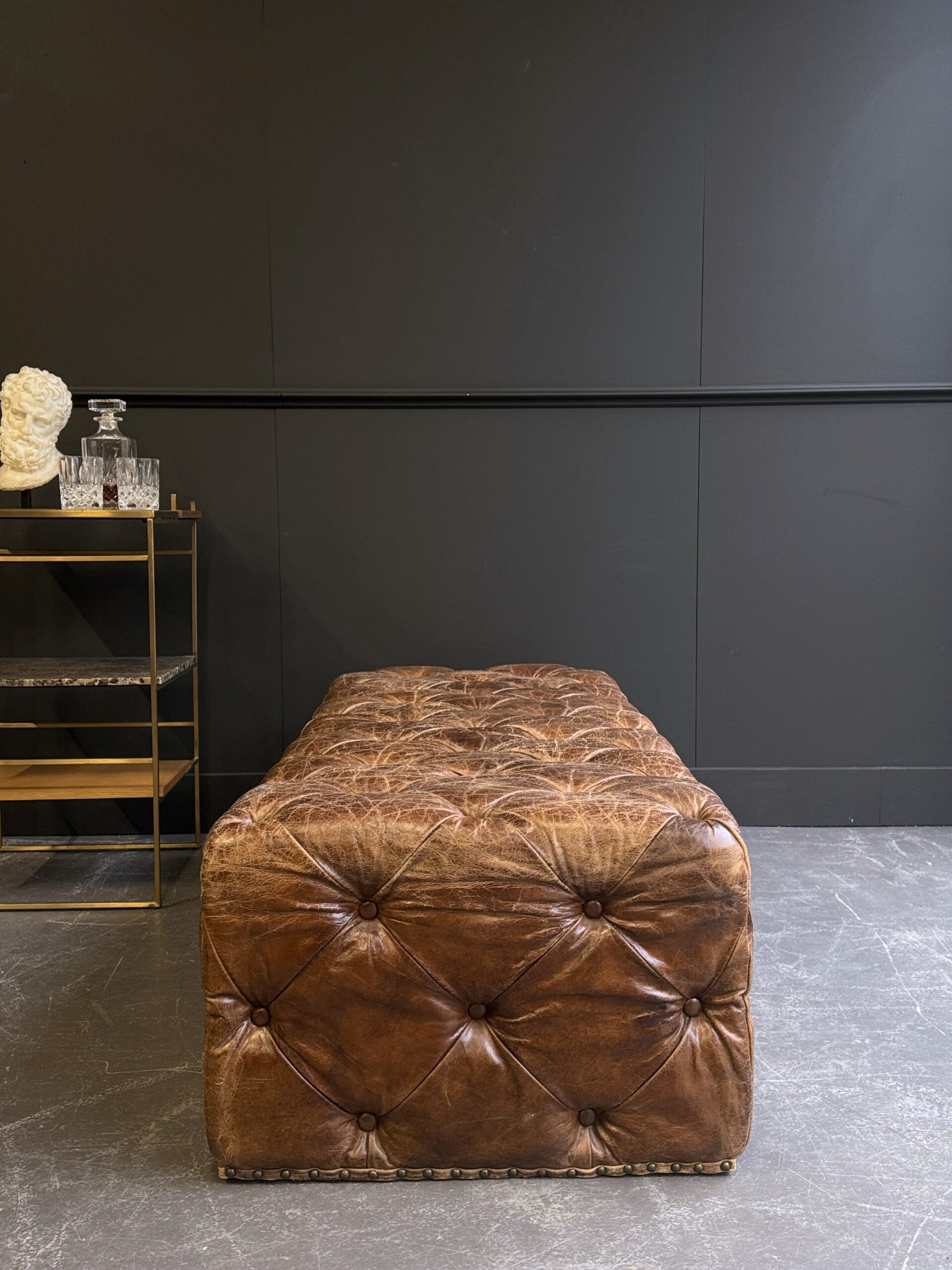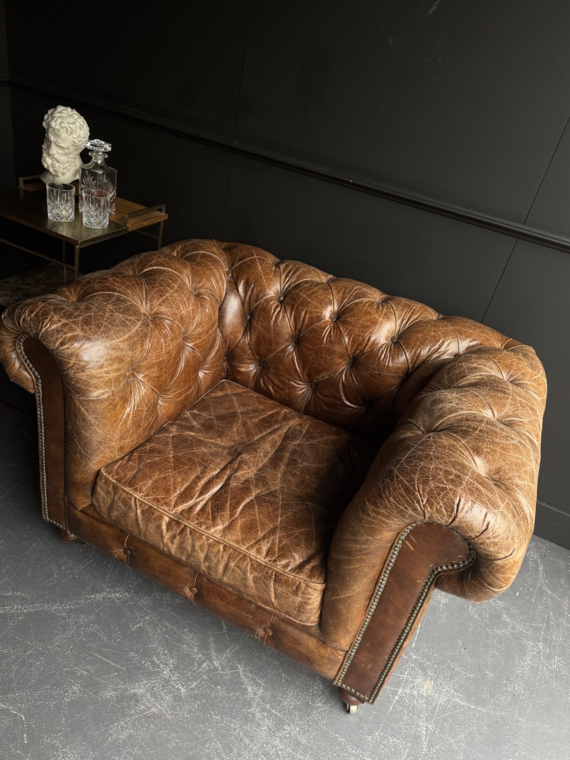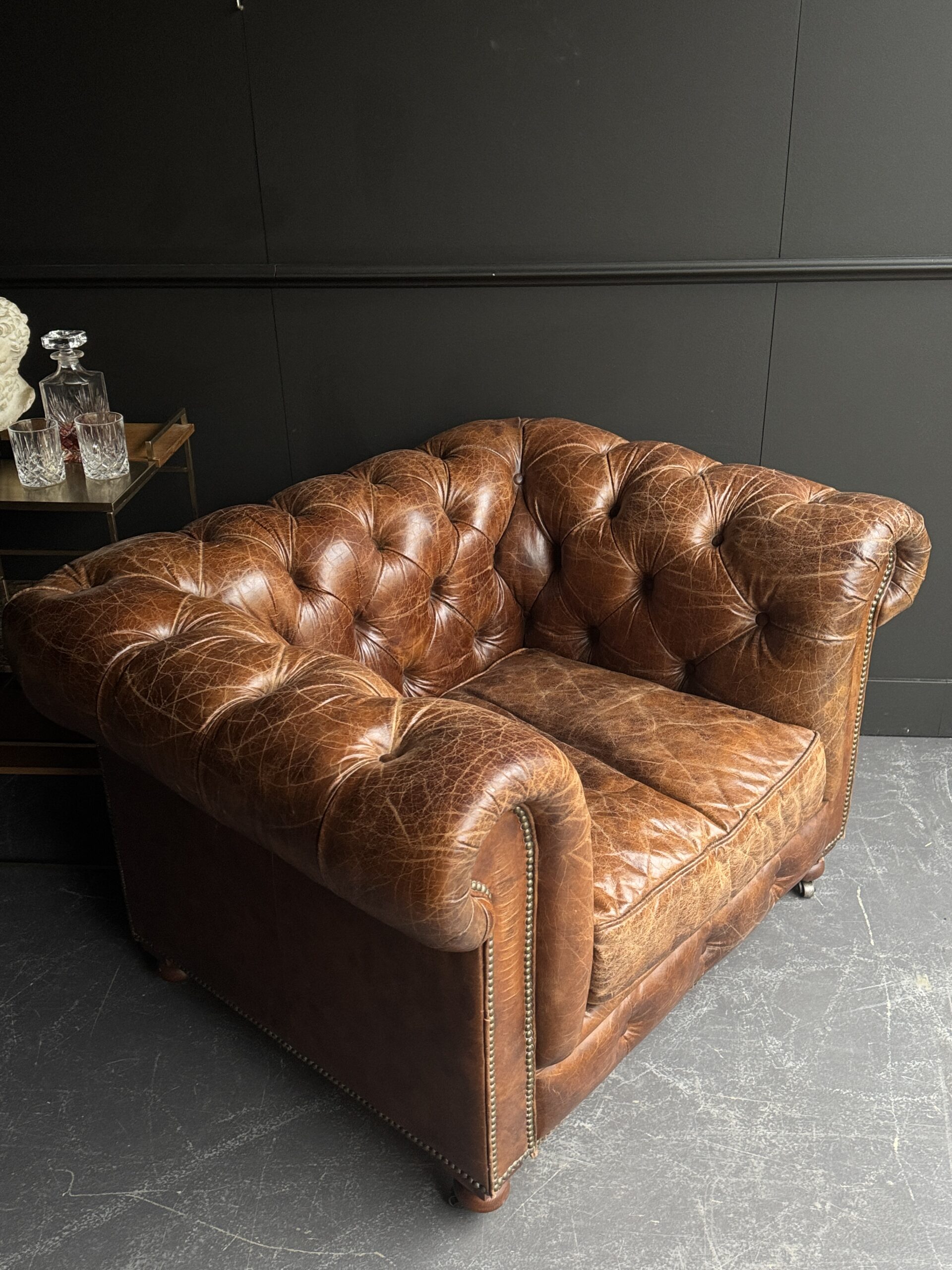 Bijzondere set van 2 Chesterfield fauteuils en bijpassende poef.