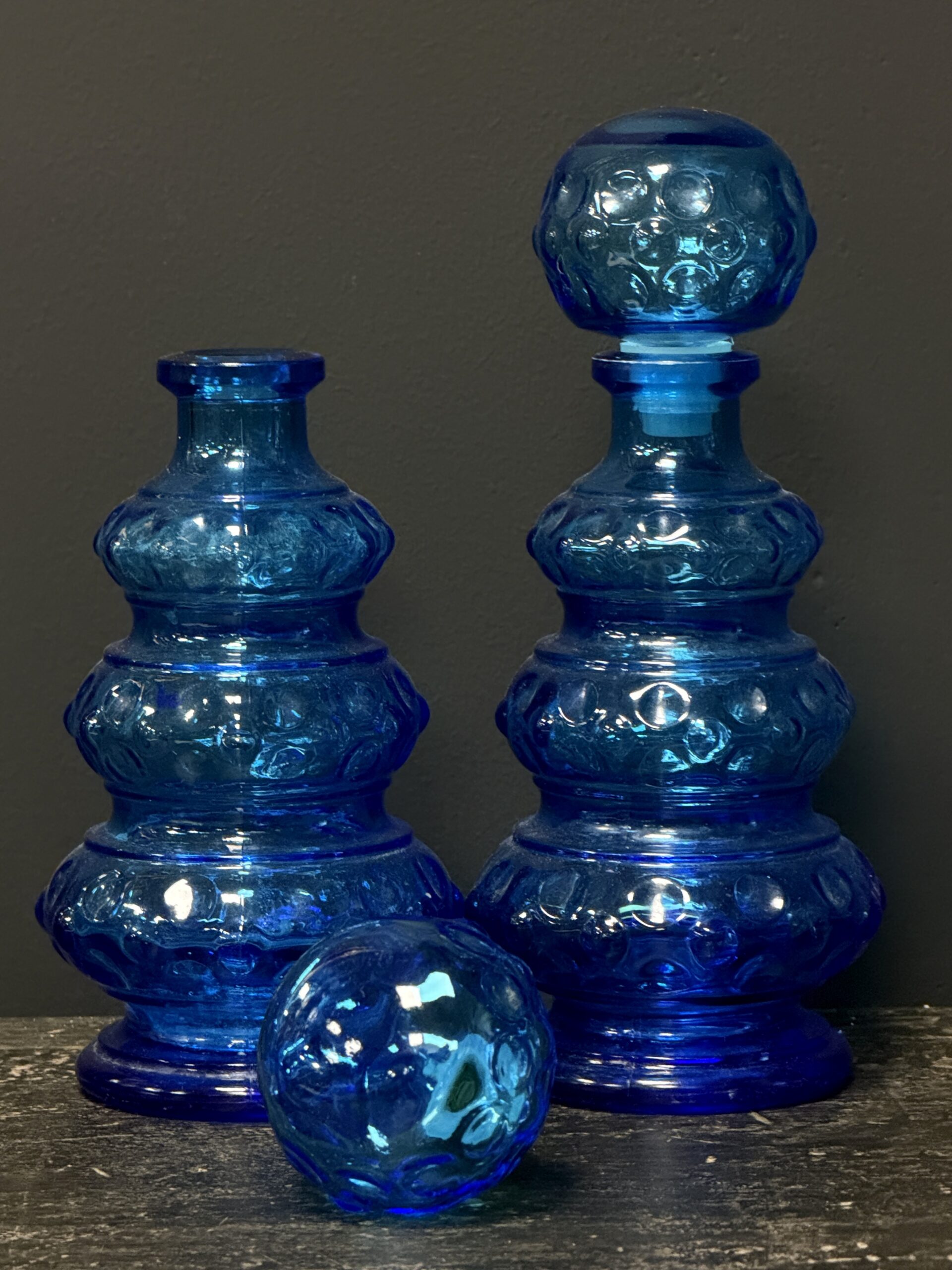 Prachtige set van 2 oude Empoli karaffen.