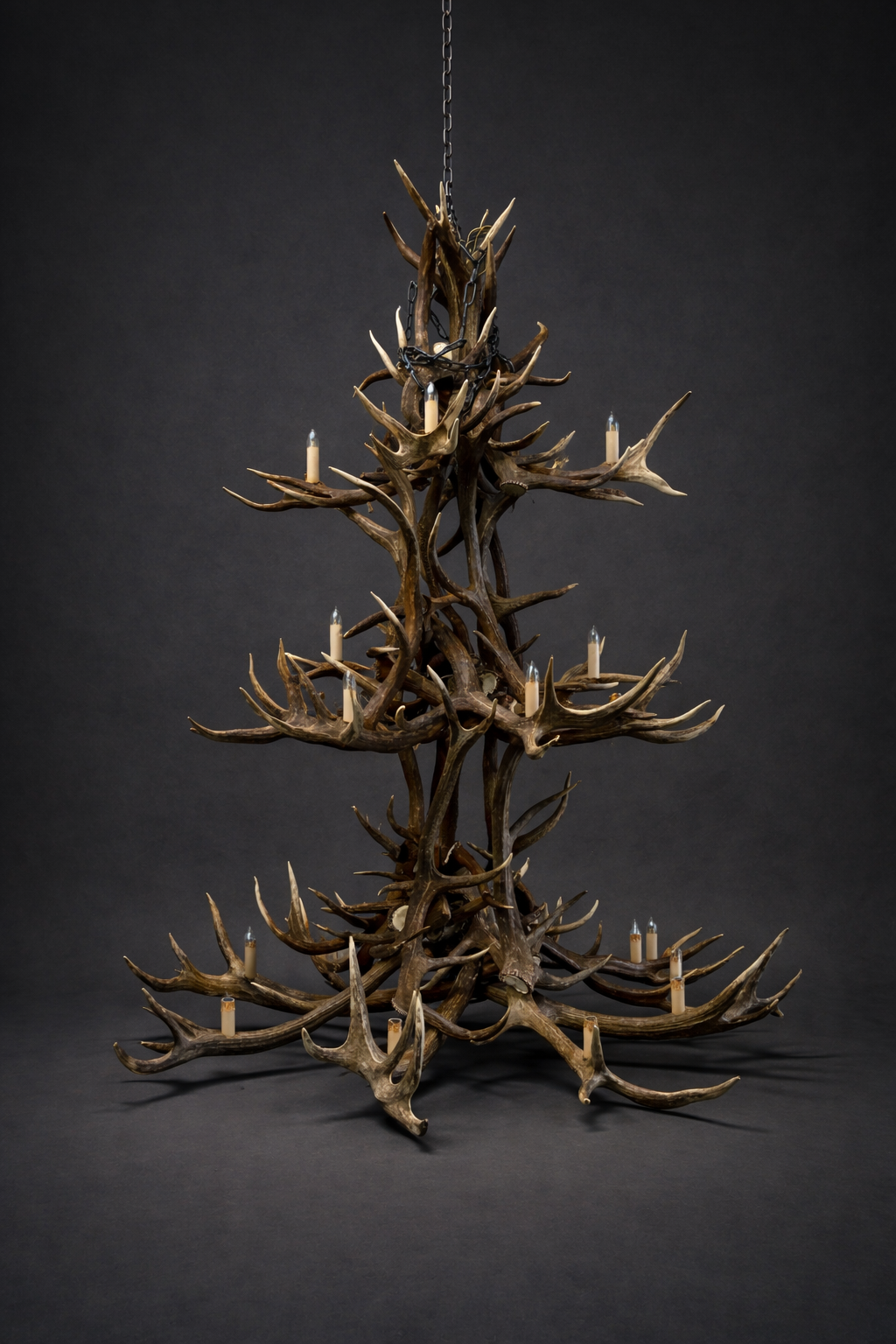Zeer grote 3-laags kroonluchter gemaakt van edelhert gewei