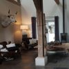 Dit Hongaars steppenrund komt prachtig tot zijn recht in de prachtige grote ruimte. Leuk detail is de passende XXL fotoprint van Hongaarse steppenrunderen.