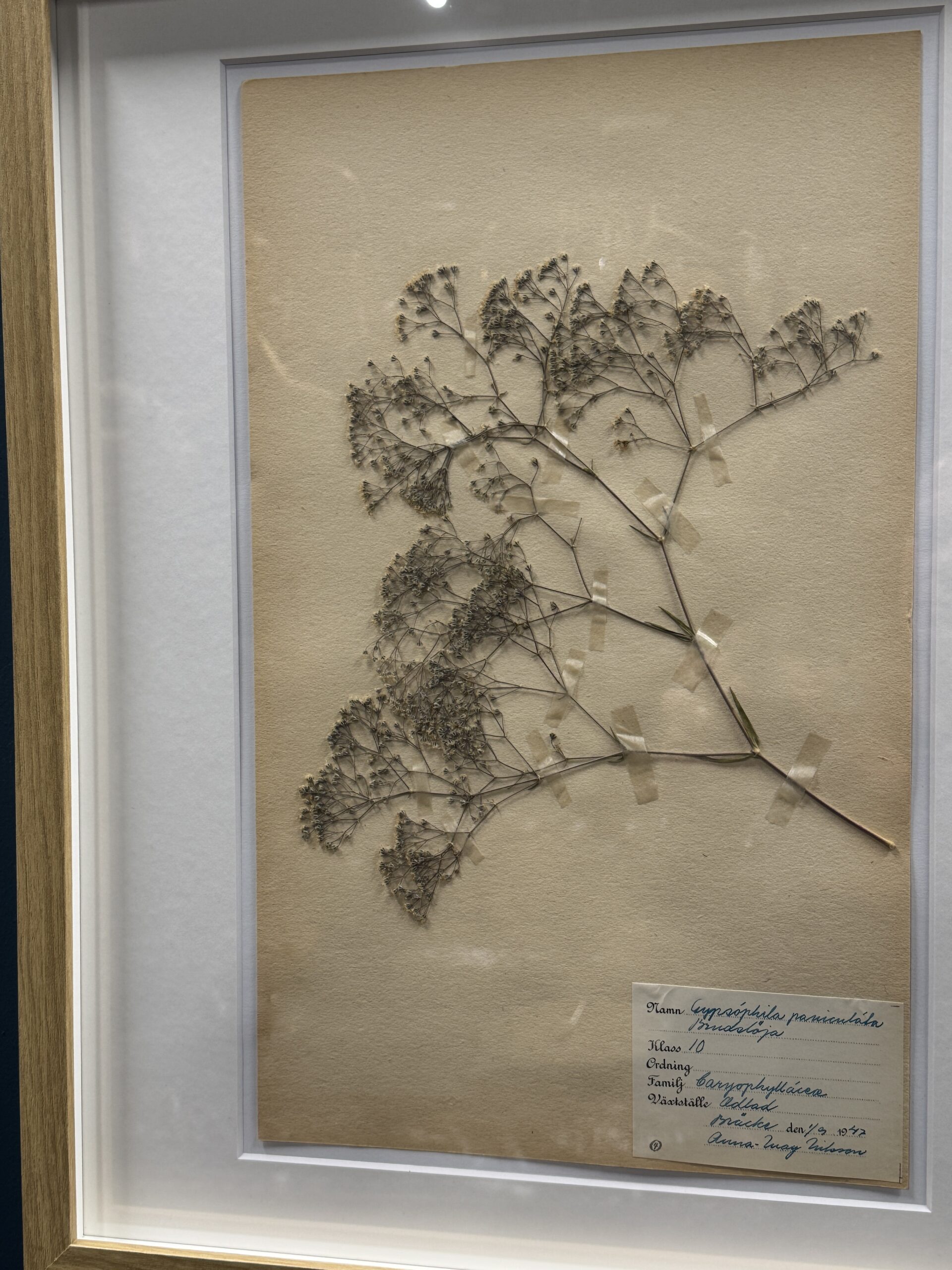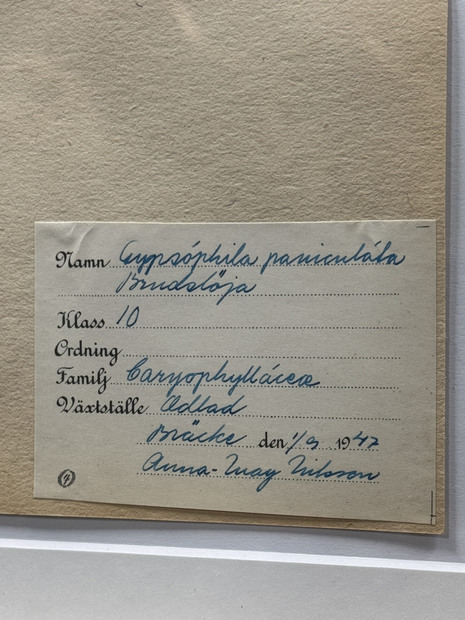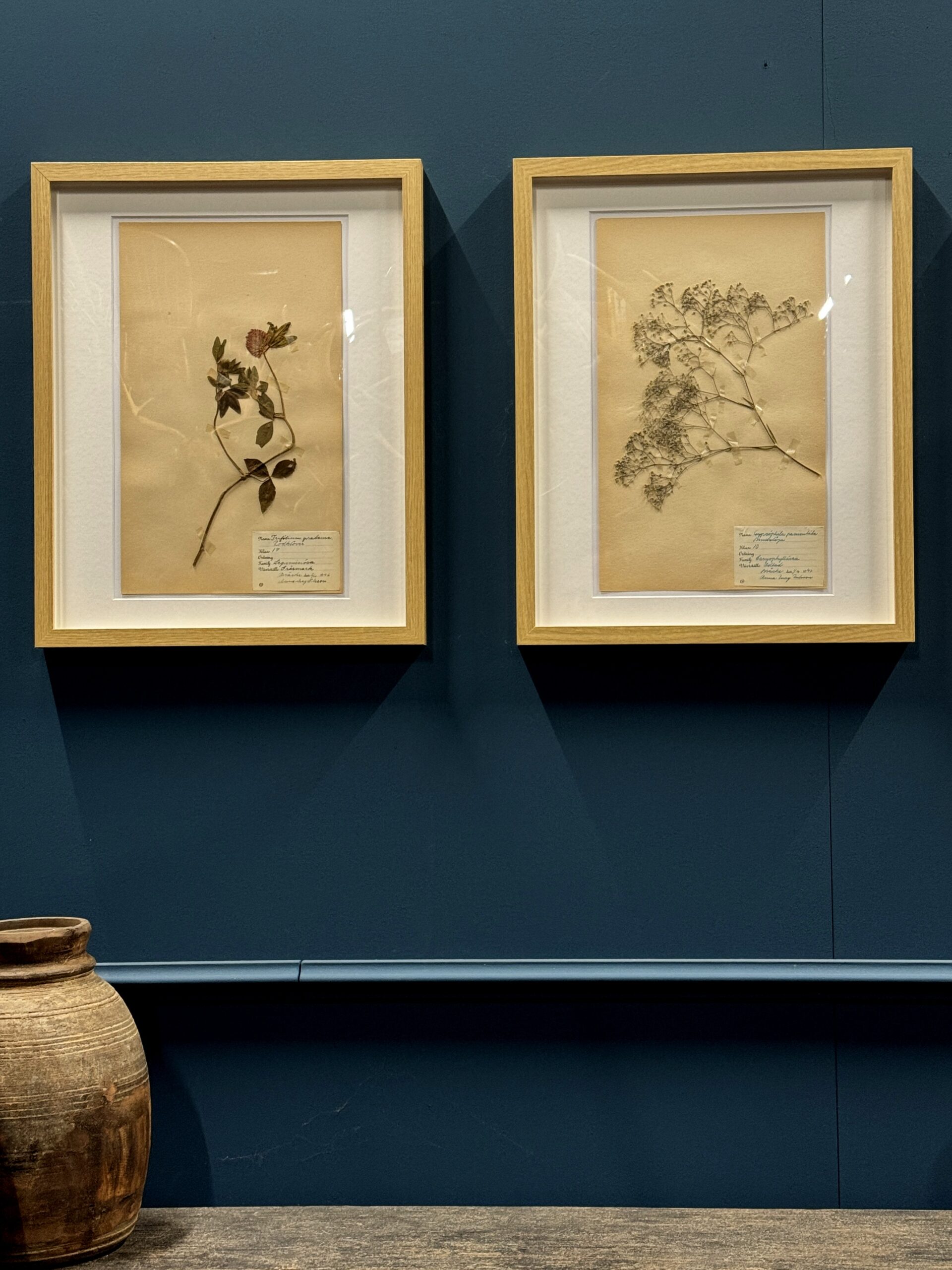 Antieke Zweedse herbarium pagina's (geperste, gedroogde bloemen en planten). De pagina's zijn professioneel en in een hoogwaardige lijst ingelijst met passe-partout.