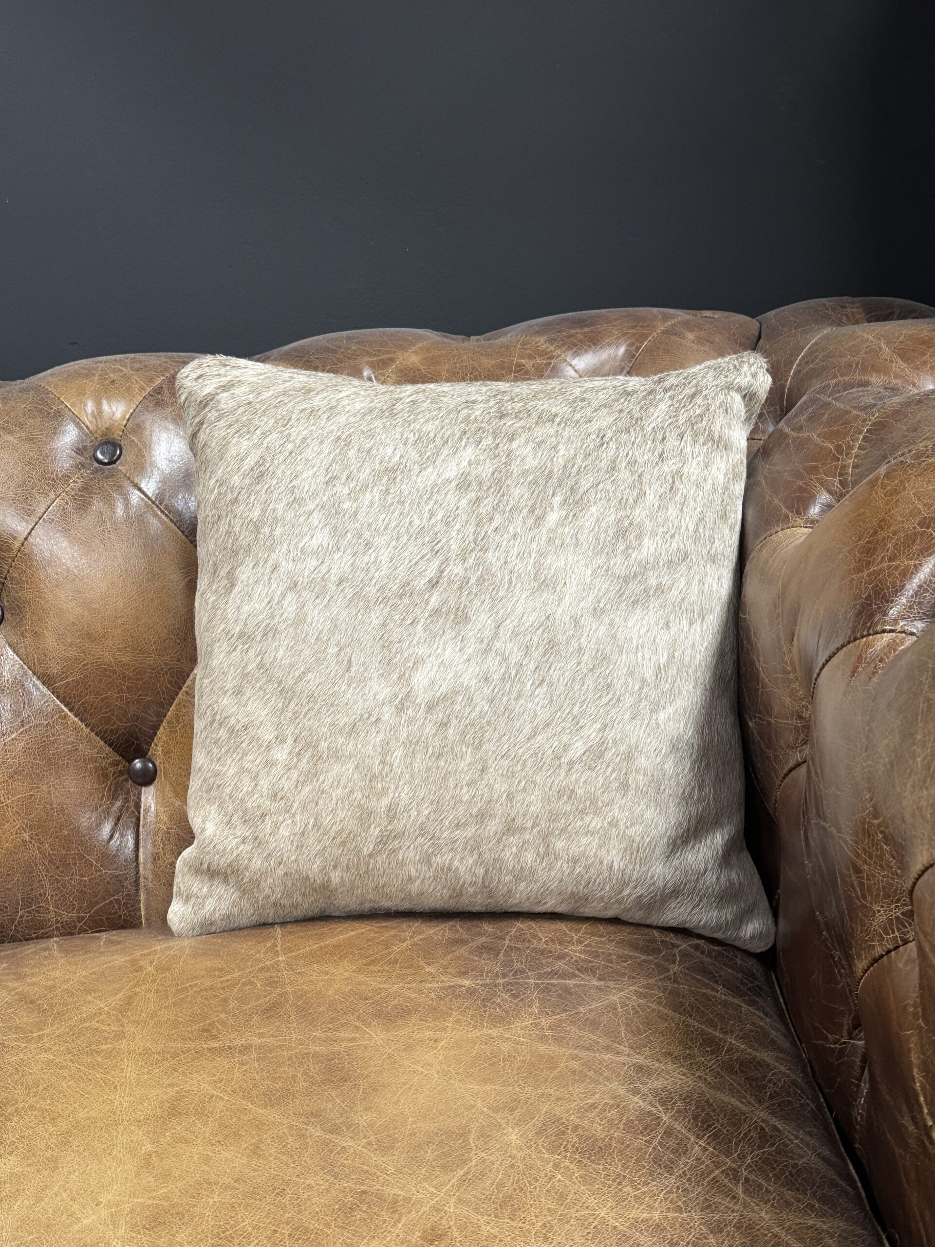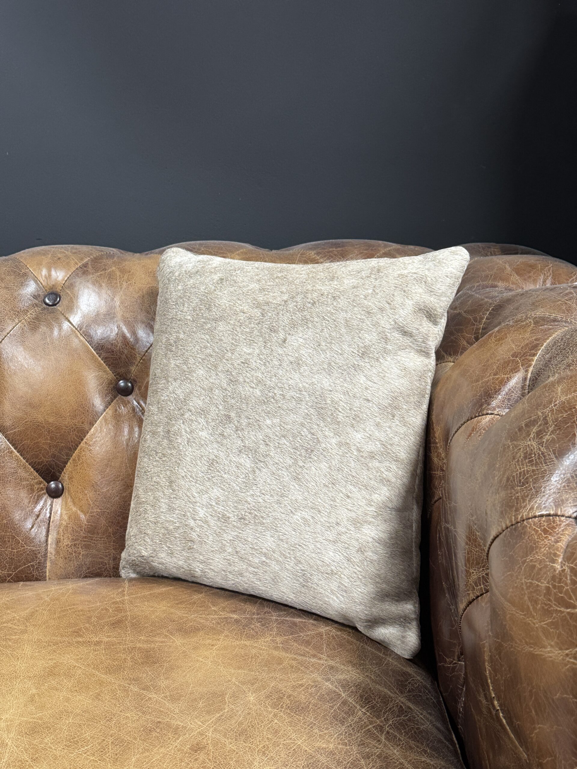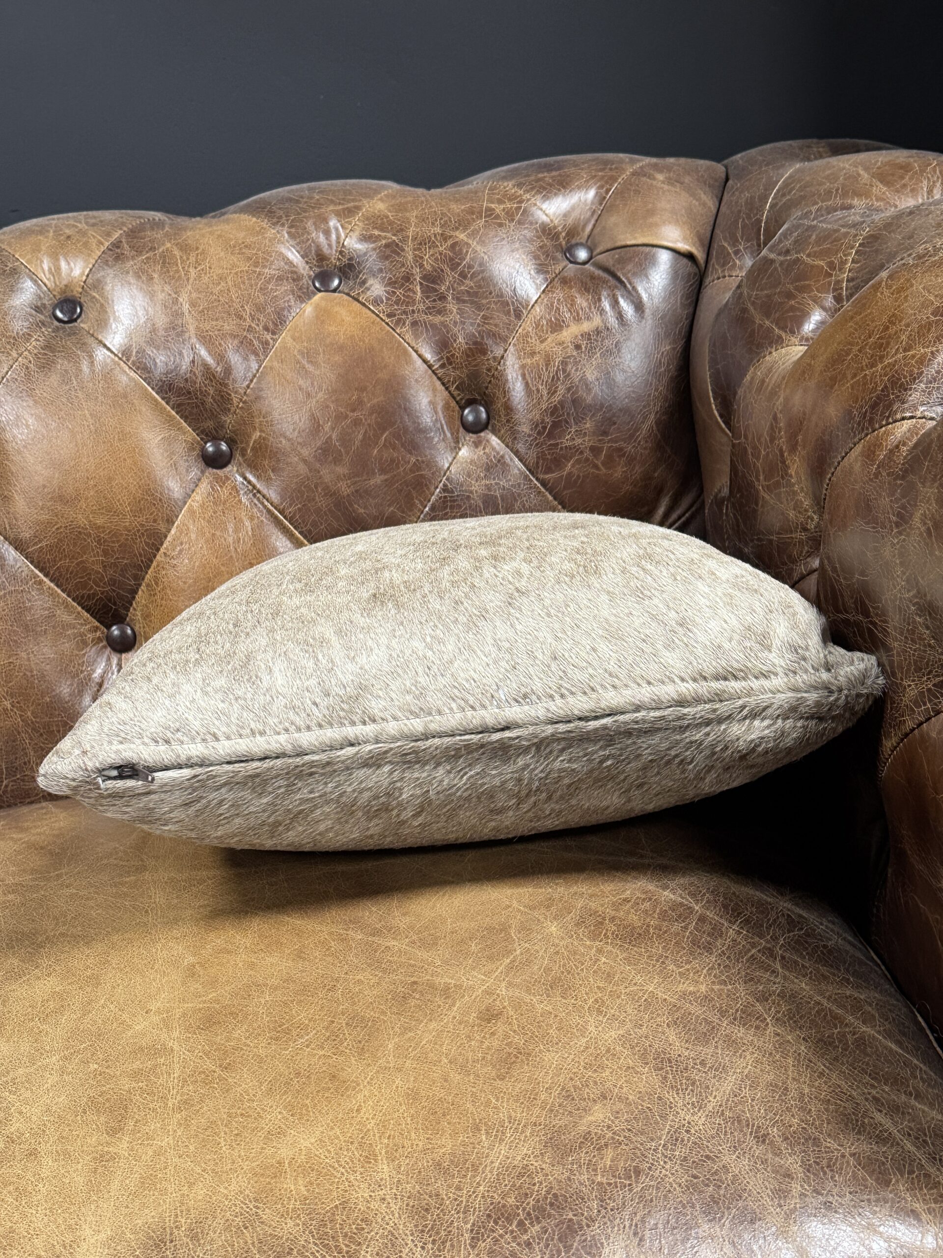 Set handgemaakte kussens van koehuid. Hoogwaardige kussens gemaakt van a-grade koehuiden. De kussens worden geleverd met vulling en hebben een rits aan de achterzijde.
