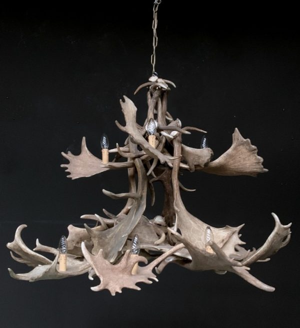 Exclusieve gewei kroonluchter gemaakt van damhertgewei. Bij BEAST interiors bent u aan het juiste adres als u op zoek bent naar een hoogwaardige geweilamp. De geweilampen die we in ons assortiment hebben zijn van ze hoogwaardige kwaliteit. De bedrading van de geweilampen is niet zichtbaar en in de geweien weg gewerkt. Ook worden de hulzen van de geweilampen mooi verzonken in de geweien gemaakt. Voor de hulzen heeft u keuze uit vele soorten. Denk aan klassiek of rechte hulzen. deze kunnen roestkleurig, zwart, wit of in een kleur naar wens gemaakt worden. De geweilampen die BEAST interiors levert zijn van de hoogst verkrijgbare kwaliteit. Mocht u een speciale wens hebben of informatie nodig hebben over de vele mogelijkheden betreffende geweilampen neem dan contact met ons op.
