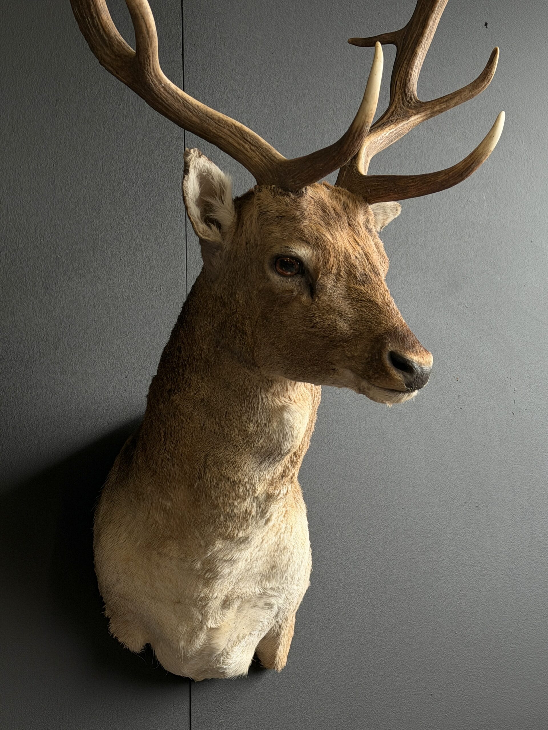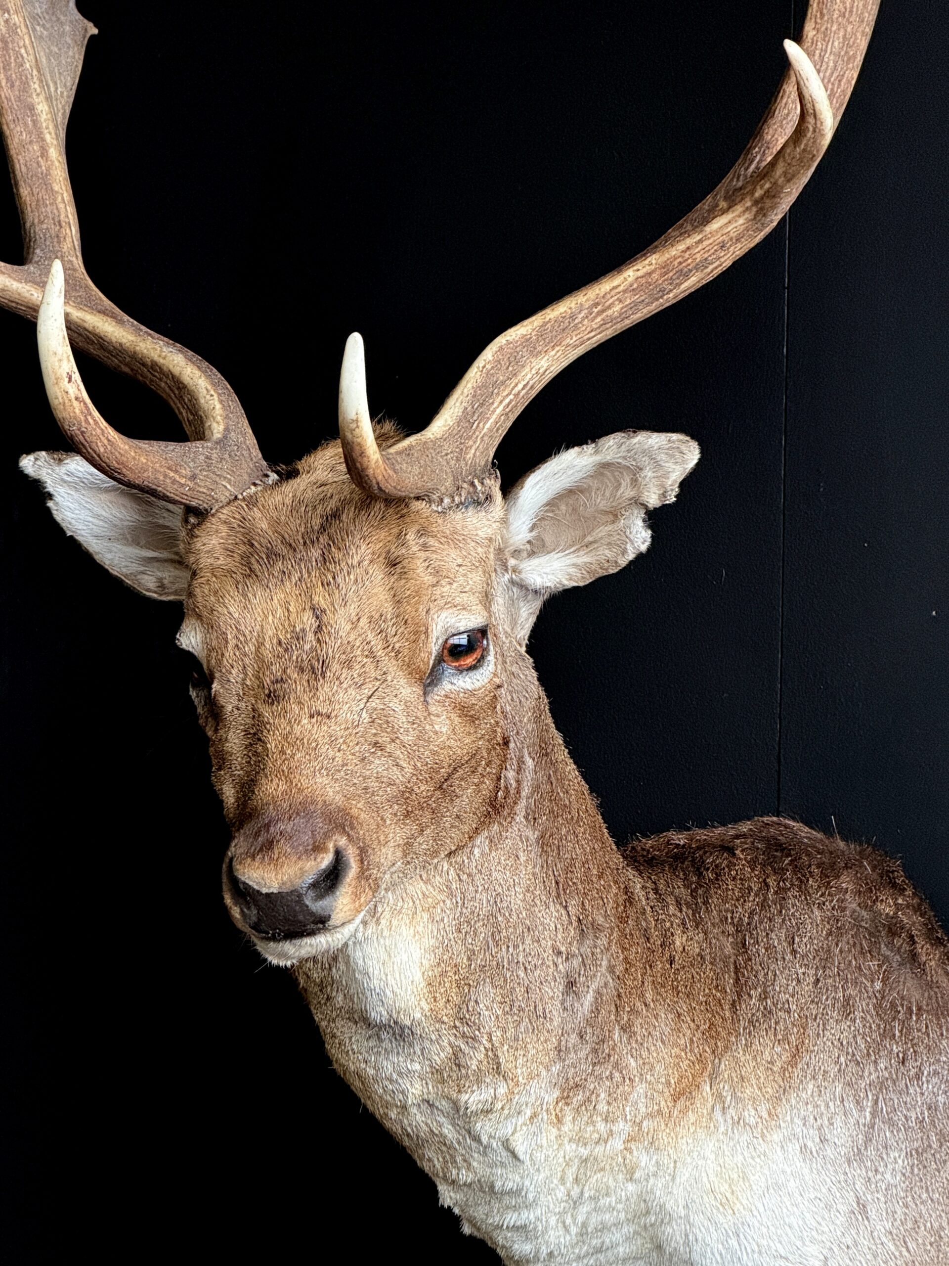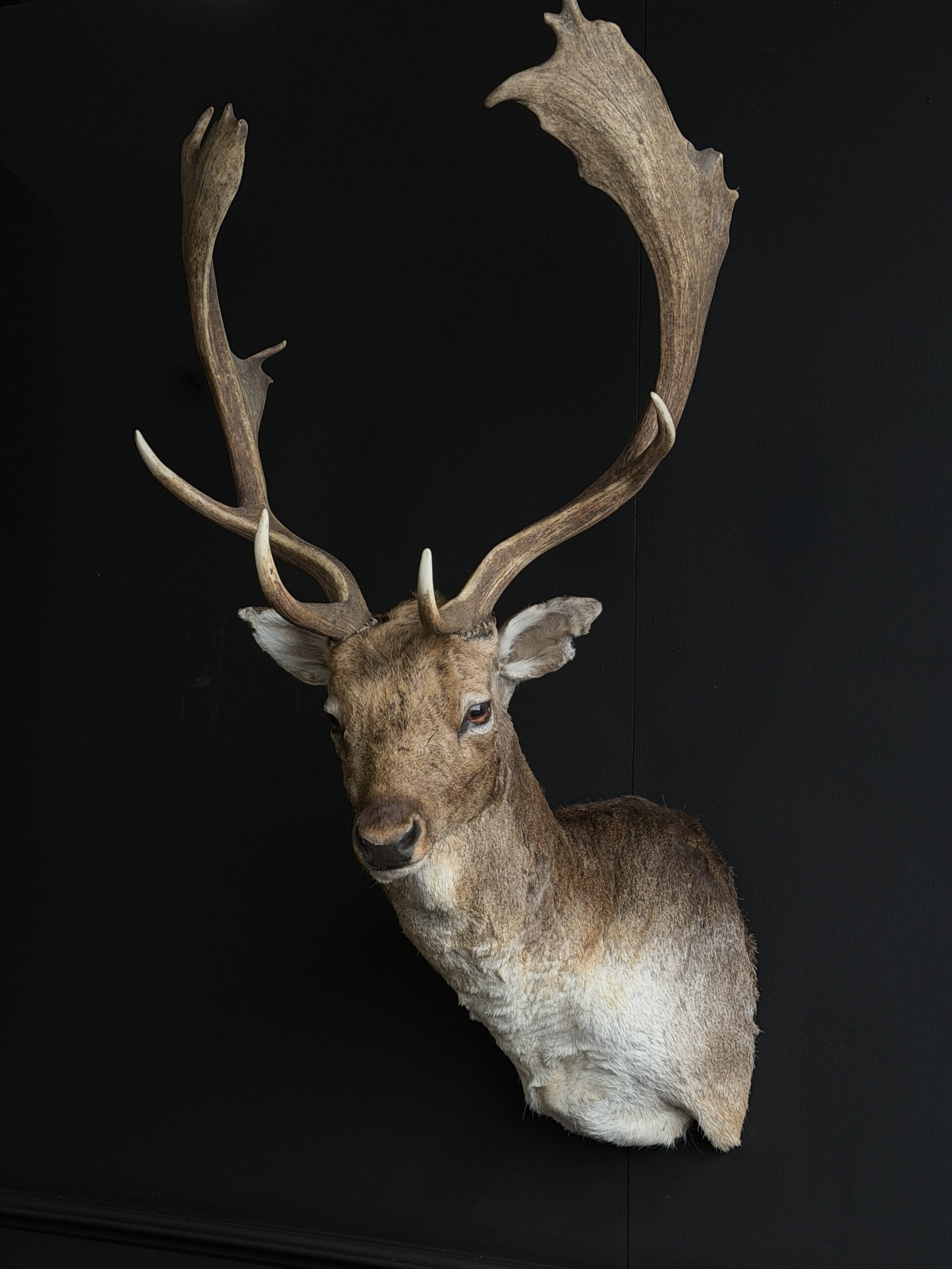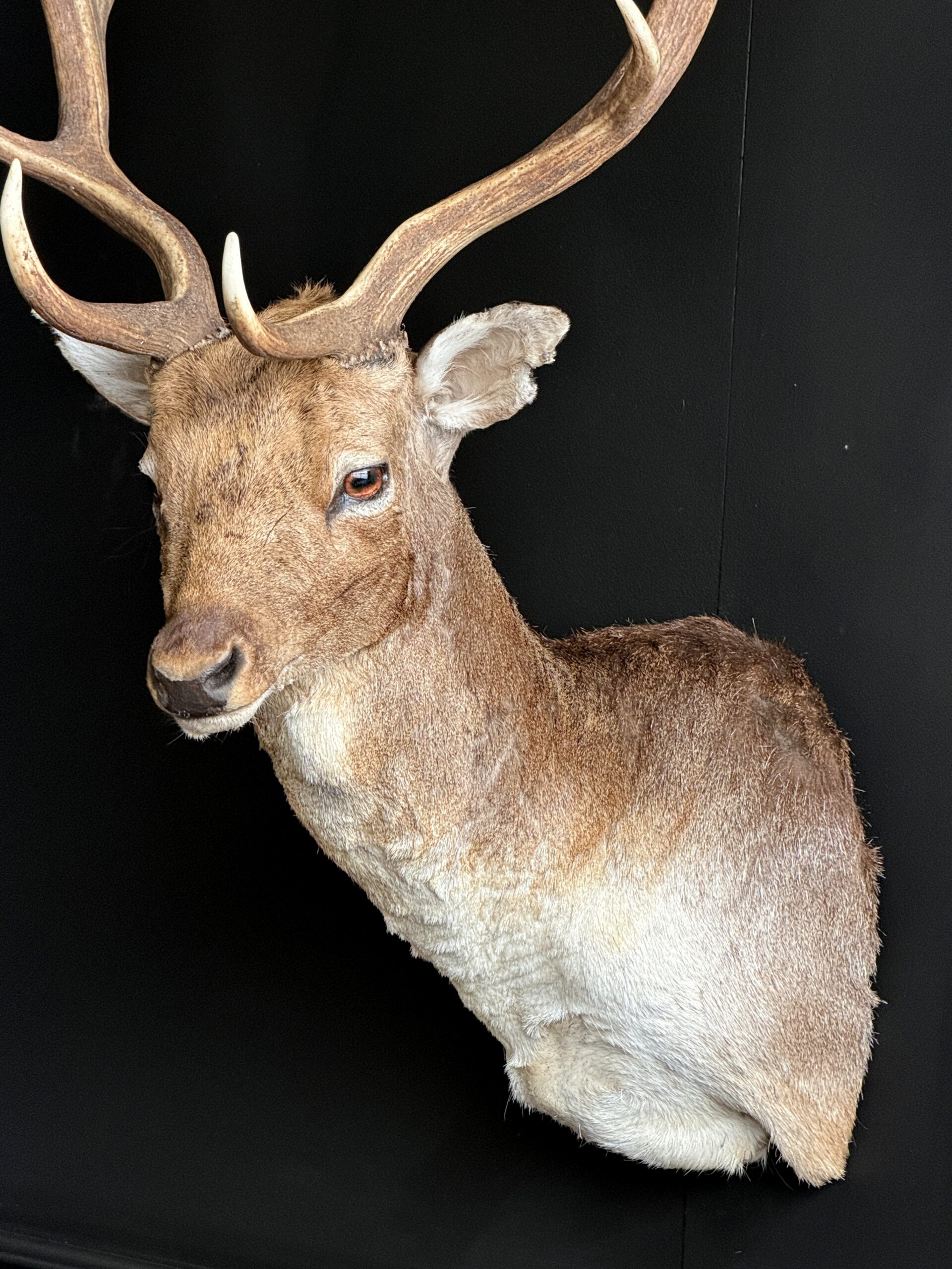 Nieuwe opgezette kop van een damhert. Dit prachtige damhert is opgezet in gedraaide pose waarbij het gewei mooi zichtbaar is. Het hert is opgezet met zeer veel oog voor detail wat het een prachtig stuk maakt.