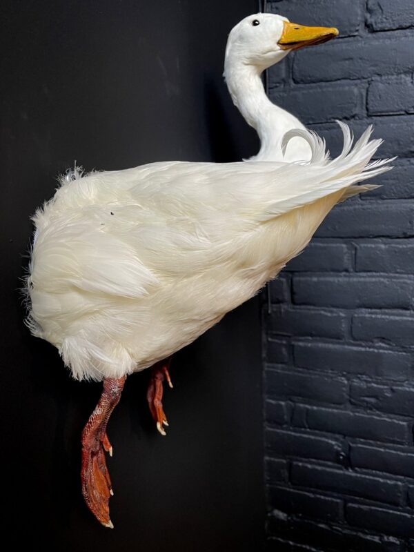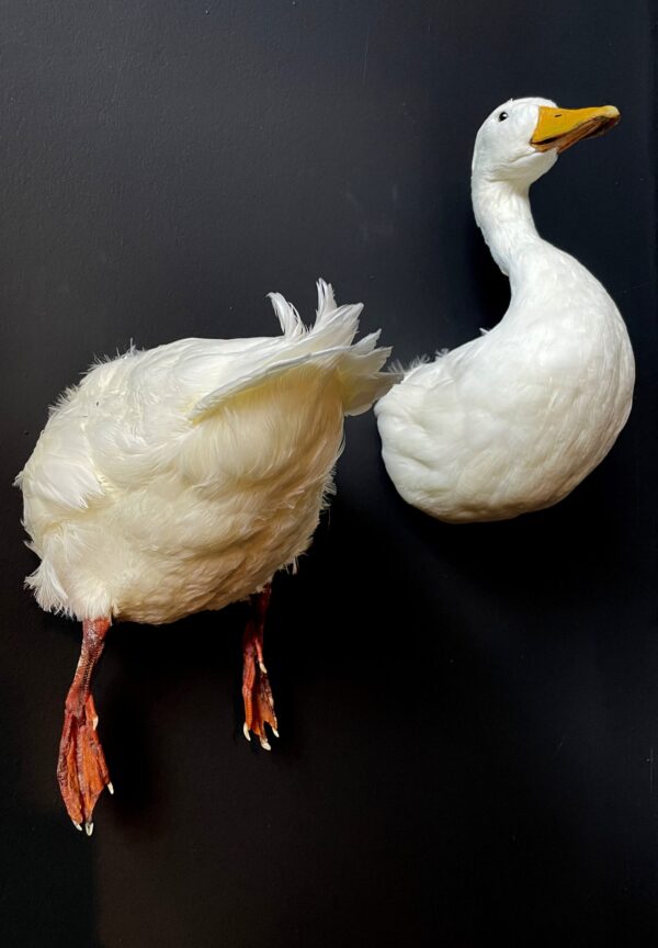 Opgezette achterkant van een witte eend. We kunnen achterkanten van diverse vogels leveren. Informeer naar de mogelijkheden