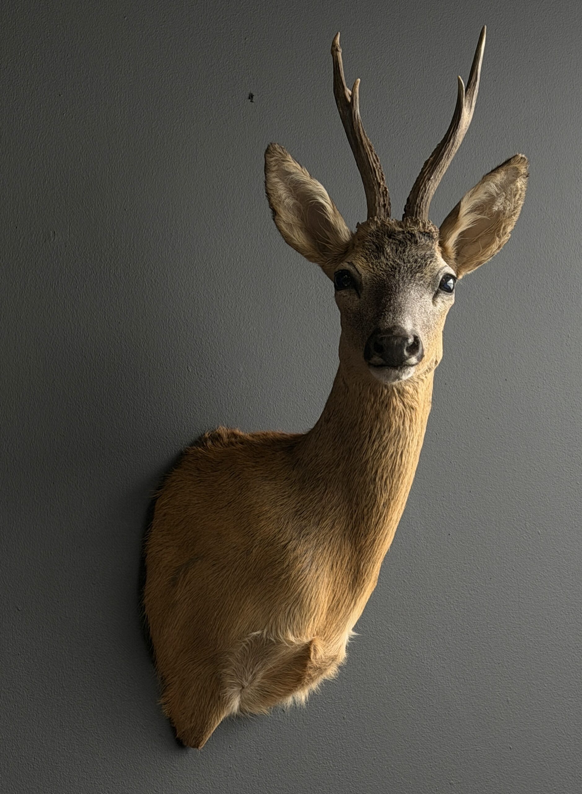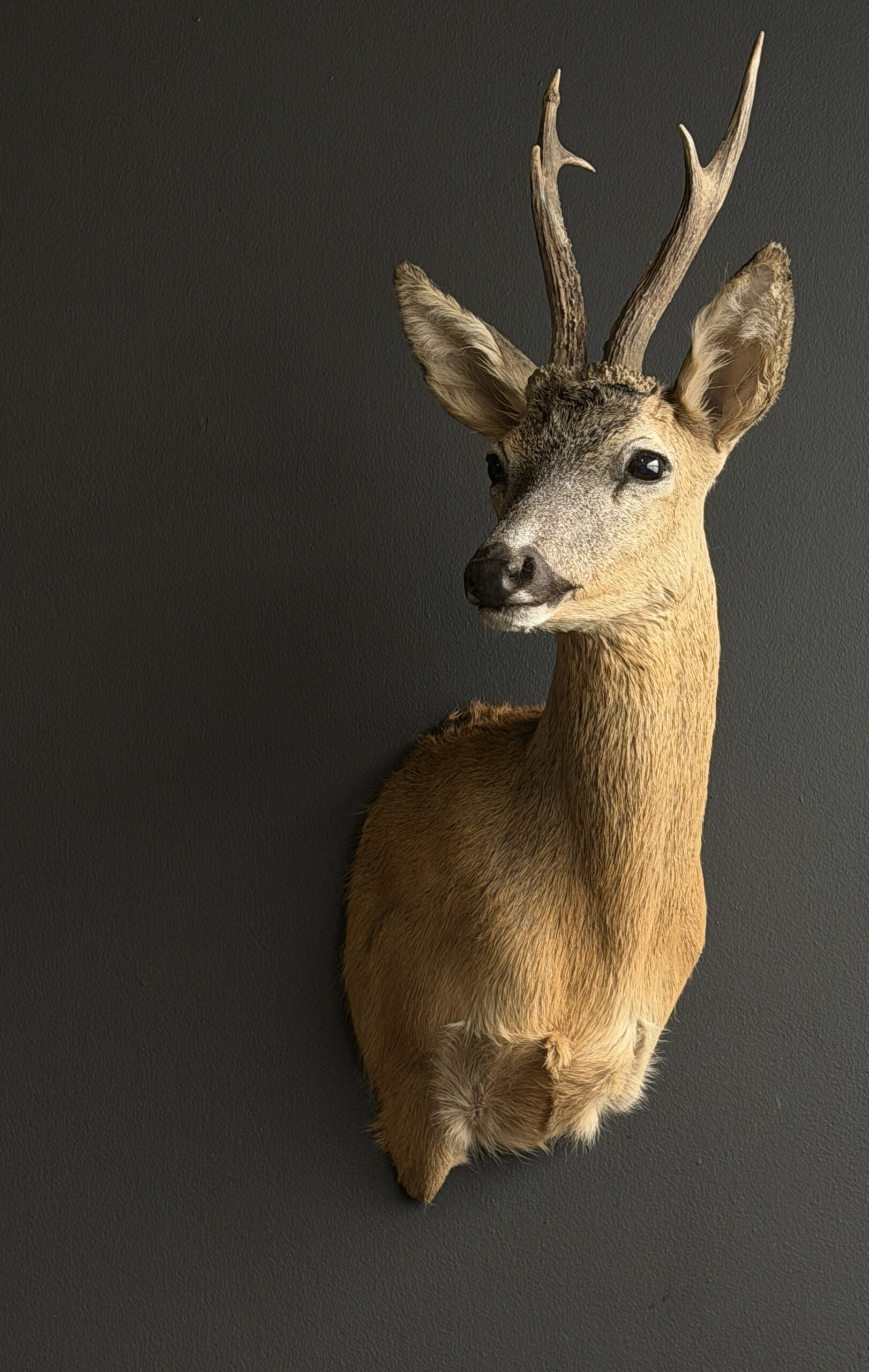 Opgezette kop van een prachtige reebok in zomerkleed. Het betreft een sterke reebok met een groot gewei. Deze vorm heeft veel borstpartij waardoor het een imposant stuk is. We hebben diverse reebokken en herten op voorraad welke allemaal op onze website staan.