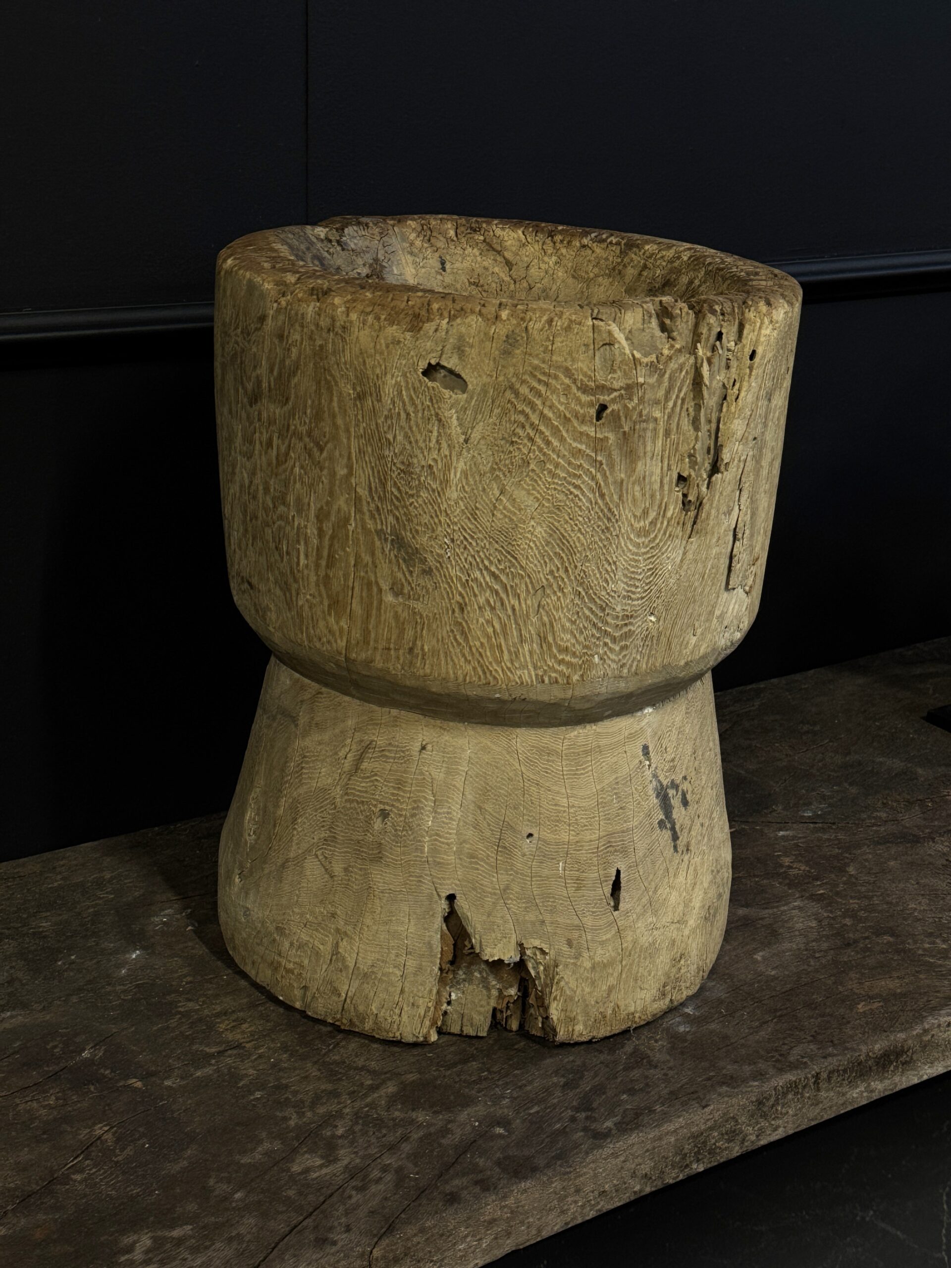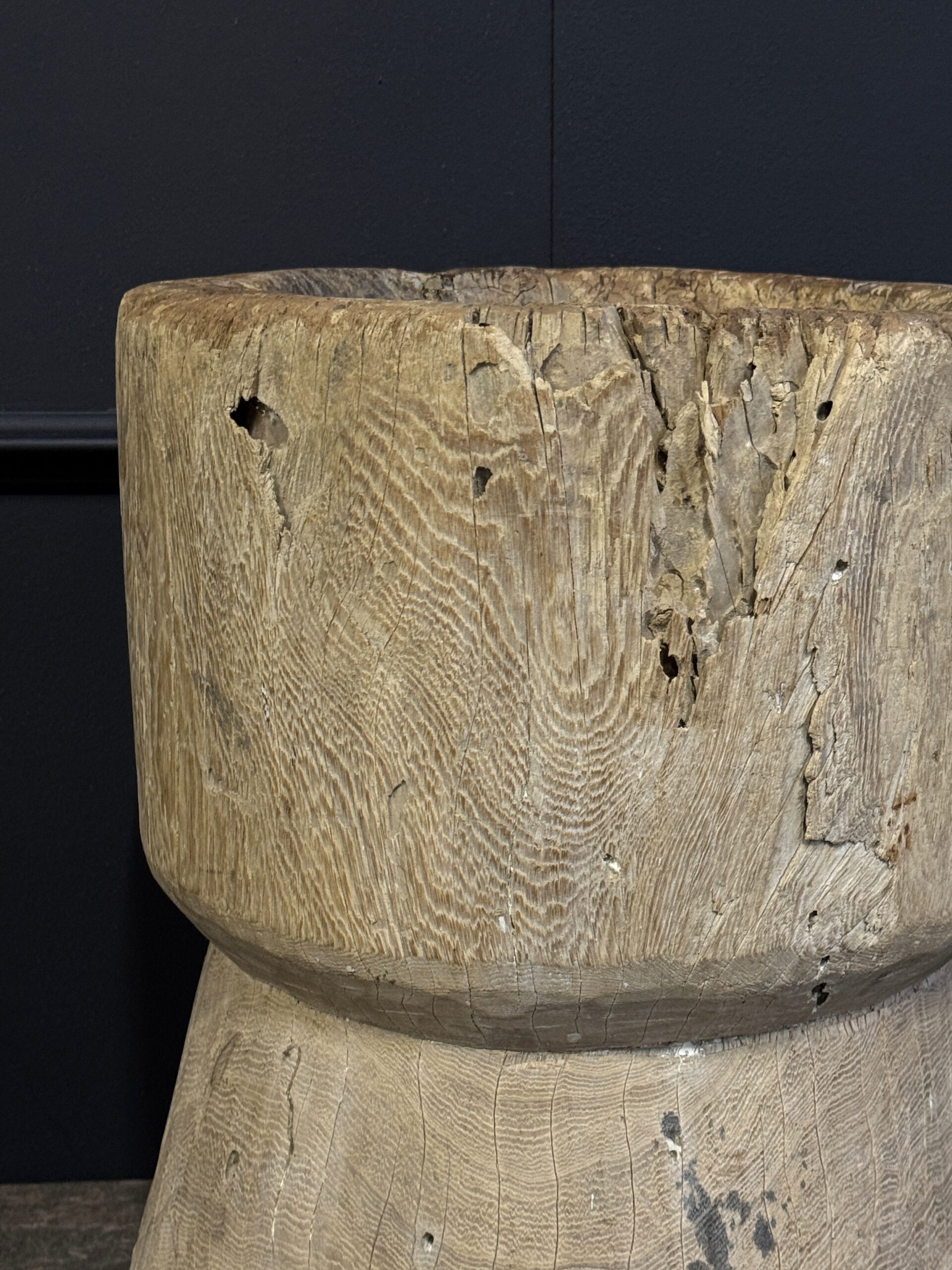 Decoratieve oude Japanse vijzel. De zware vijzel kan dienst doen als kruk of als decoratief object in uw interieur.