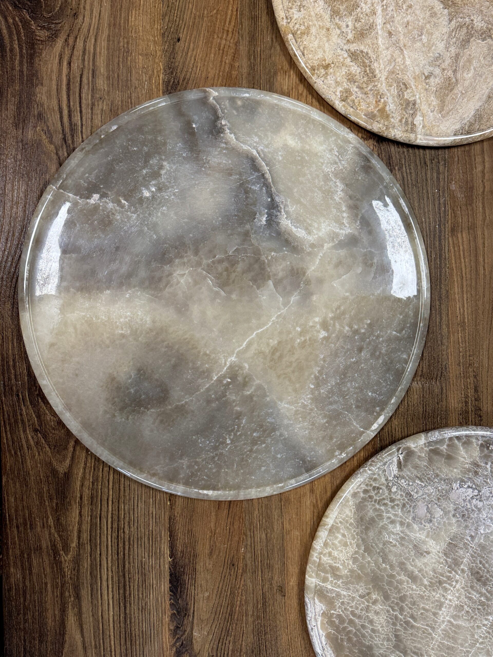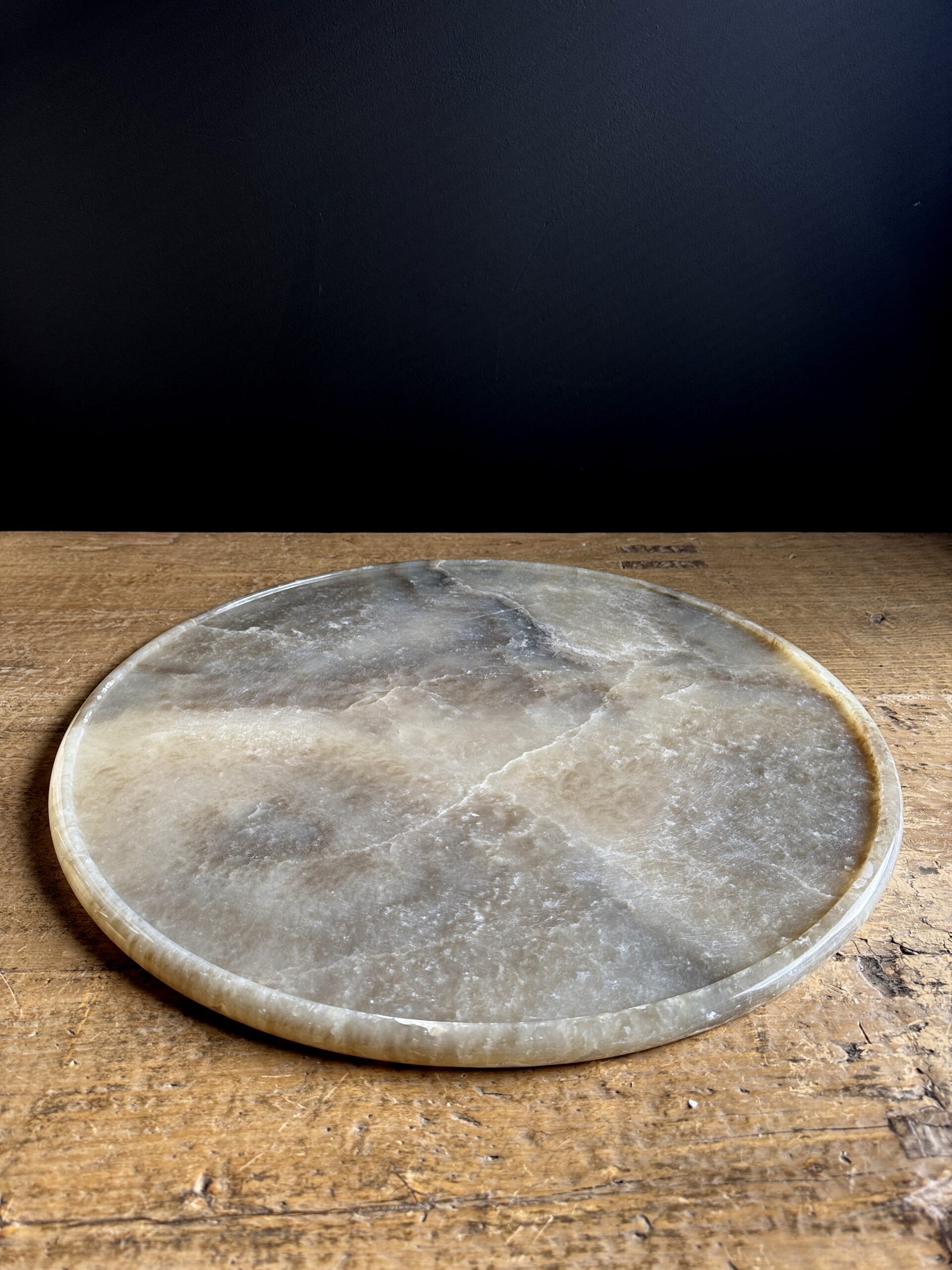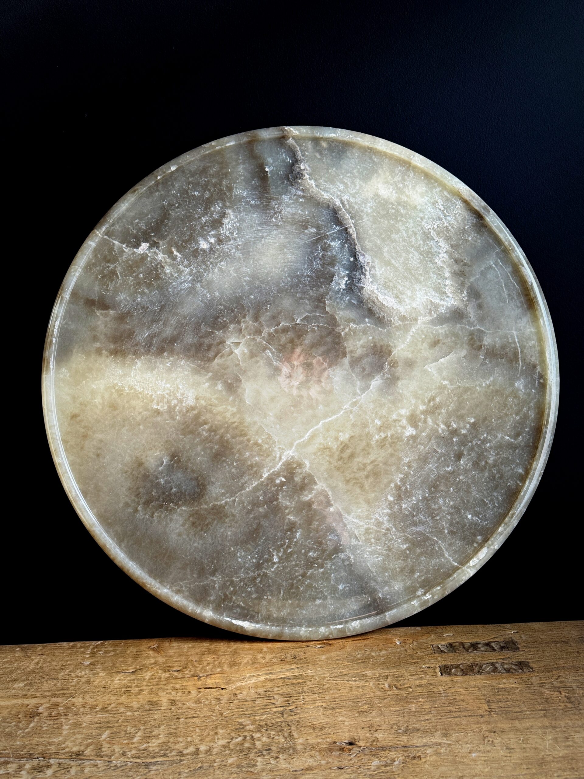 Ons assortiment is uitgebreid met een fraai rond dienblad van onyx, een natuursteen die bekendstaat om zijn luxe uitstraling en unieke kleurschakeringen. Elk exemplaar heeft een eigen karakter dankzij de natuurlijke adering en subtiele nuances in het materiaal. Het dienblad is niet alleen een stijlvolle toevoeging aan ieder interieur, maar ook praktisch in gebruik voor het serveren van drankjes of het presenteren van decoratieve items. Met zijn tijdloze ontwerp en hoogwaardige afwerking vormt dit onyx dienblad een elegante blikvanger in elke ruimte.