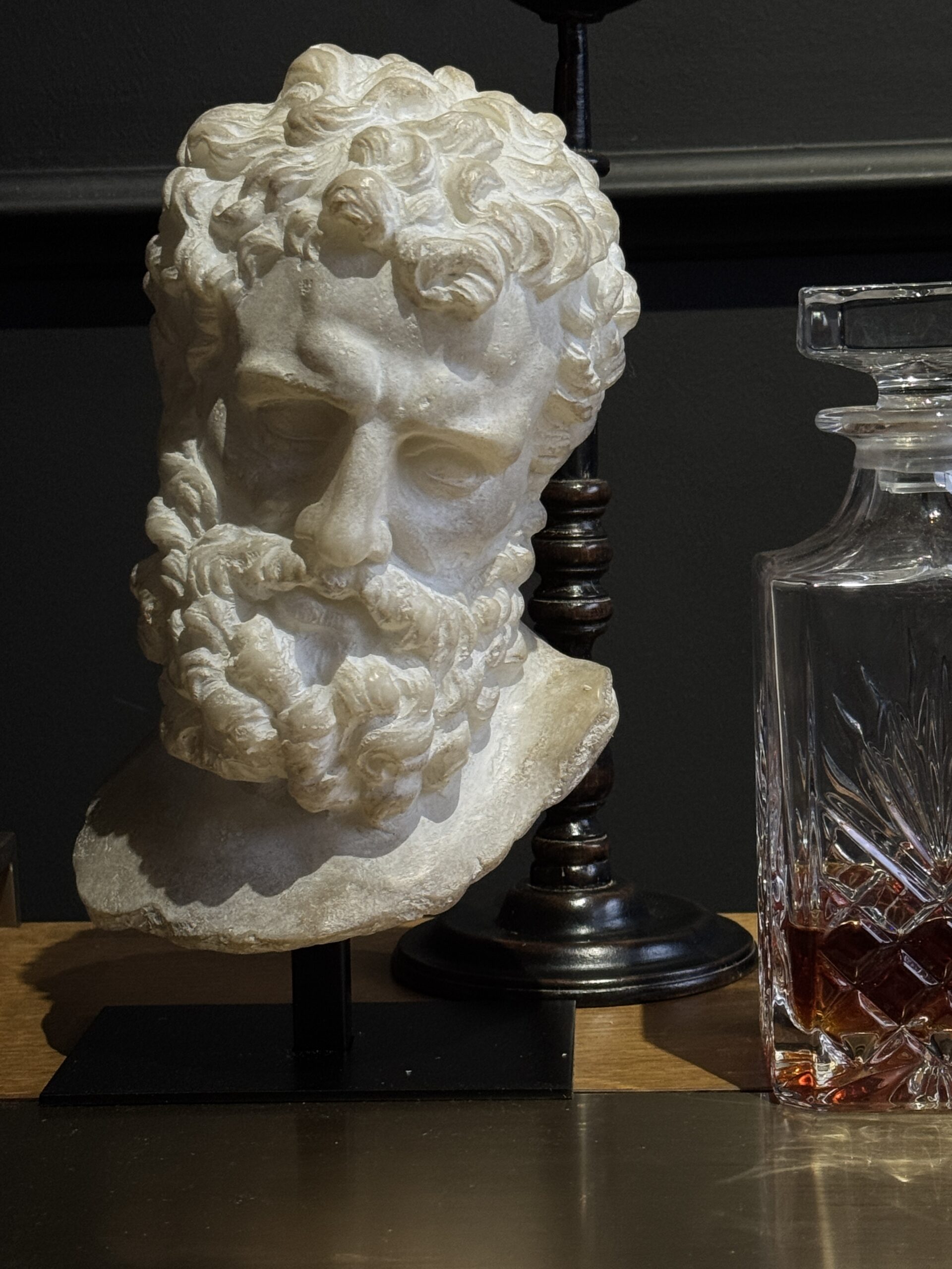 Herakles, of Hercules voor de Romeinen, zoon van Zeus en Alcides, was een van de meest gewaardeerde helden van het oude Griekenland. In de Griekse mythologie beleeft hij talloze avonturen waarbij hij de wereld rondreist, in het hele Middellandse Zeegebied, tot aan de hel. Zijn beroemdste wapenfeit zijn de twaalf werken. Hij wordt al sinds Homerus vermeld in de Griekse literatuur. Mooi hoofd in zijn fragmentenversie, zoals gevonden tijdens archeologische opgravingen.